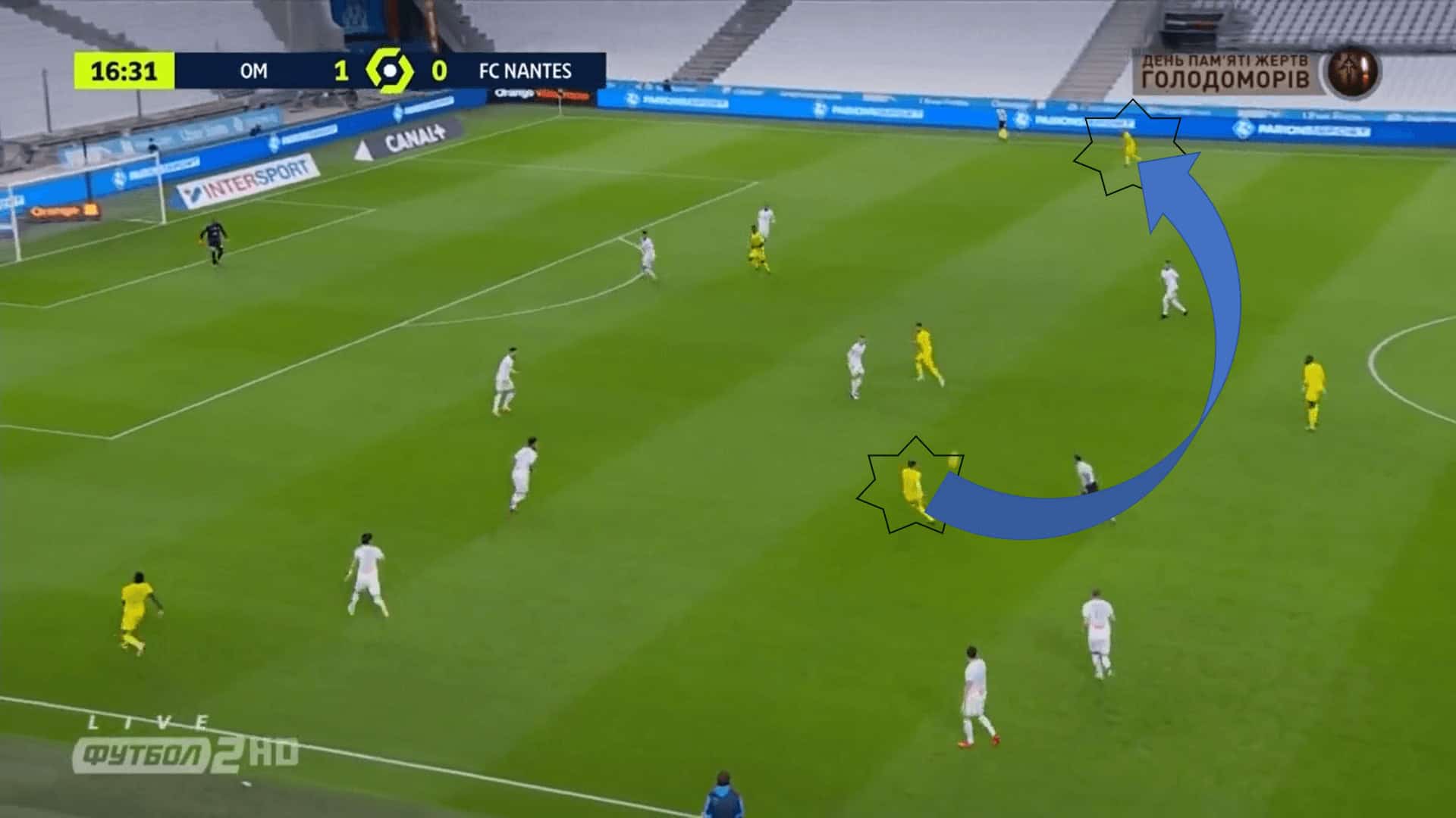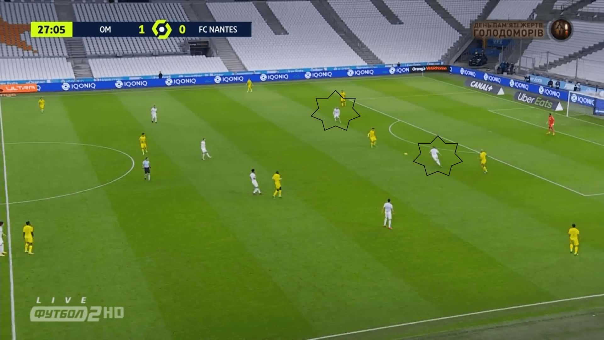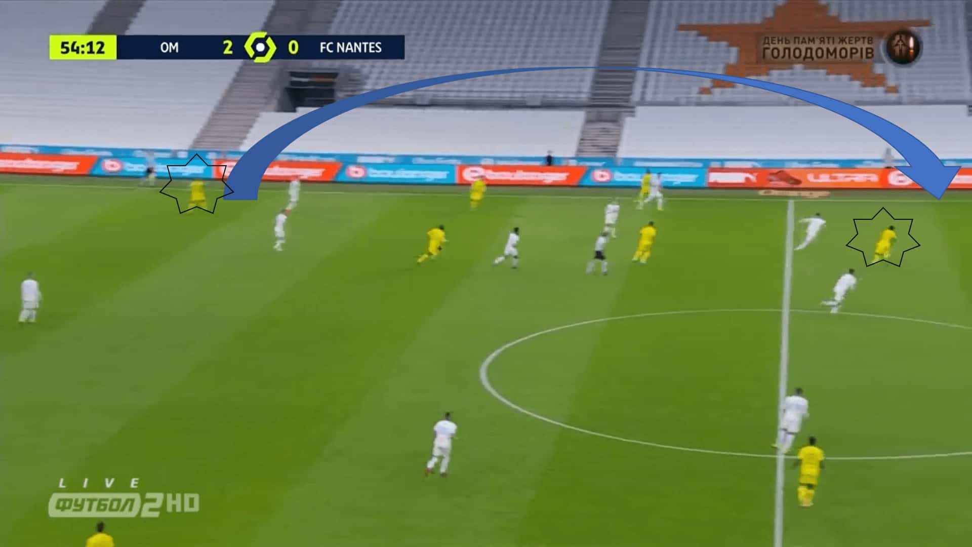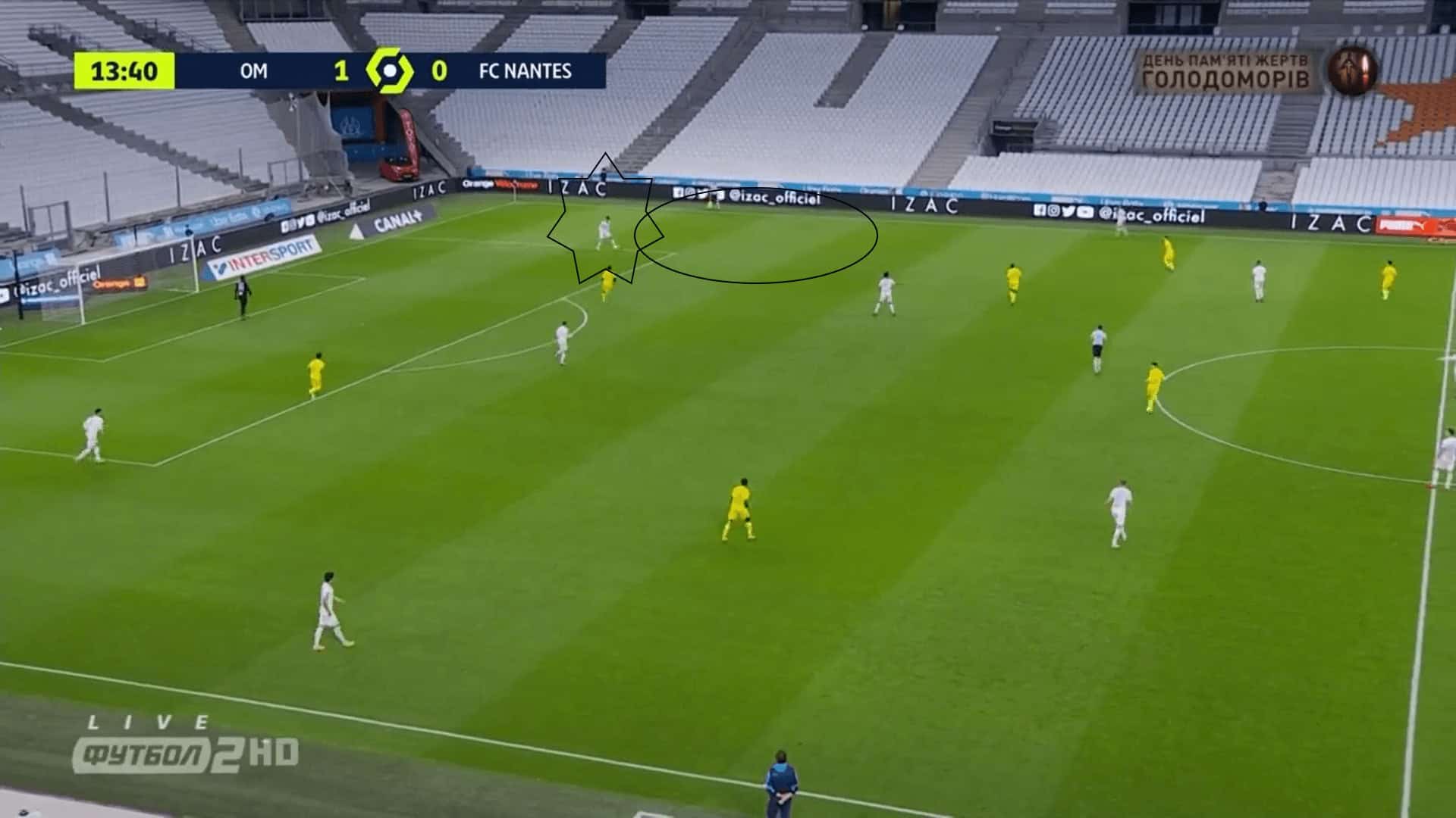 Marseille were the dominant team in the game, especially in the first half. But it is important to mention how Nantes that was inferior, tried to create danger against Marseille. Their attacking play mainly consisted in using the wings.