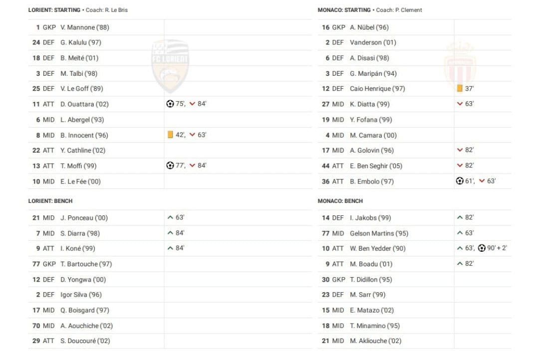 Wednesday night saw Lorient vs Monaco in Ligue 1.
