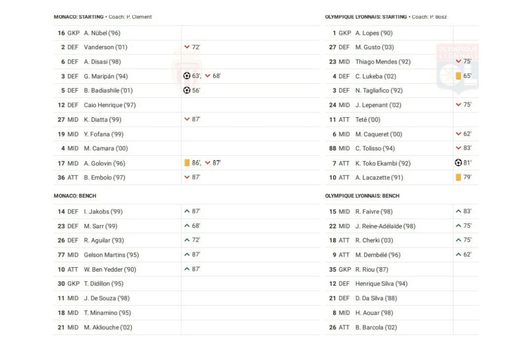 Sunday night saw Monaco vs Lyon in Ligue 1.