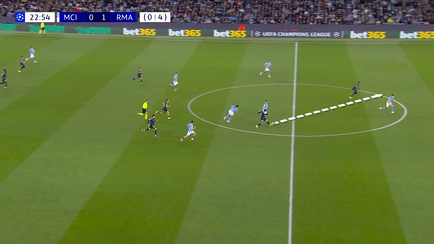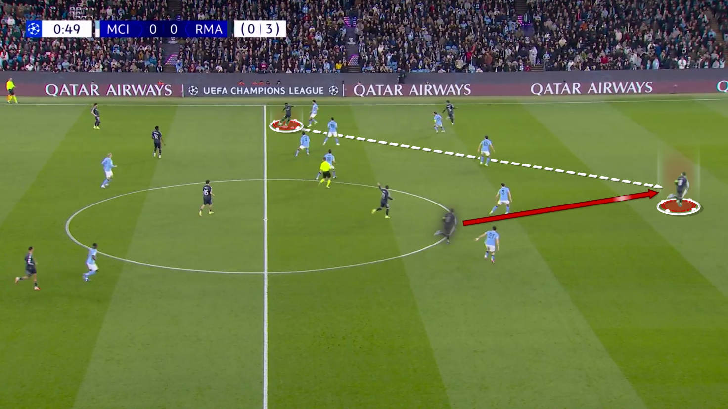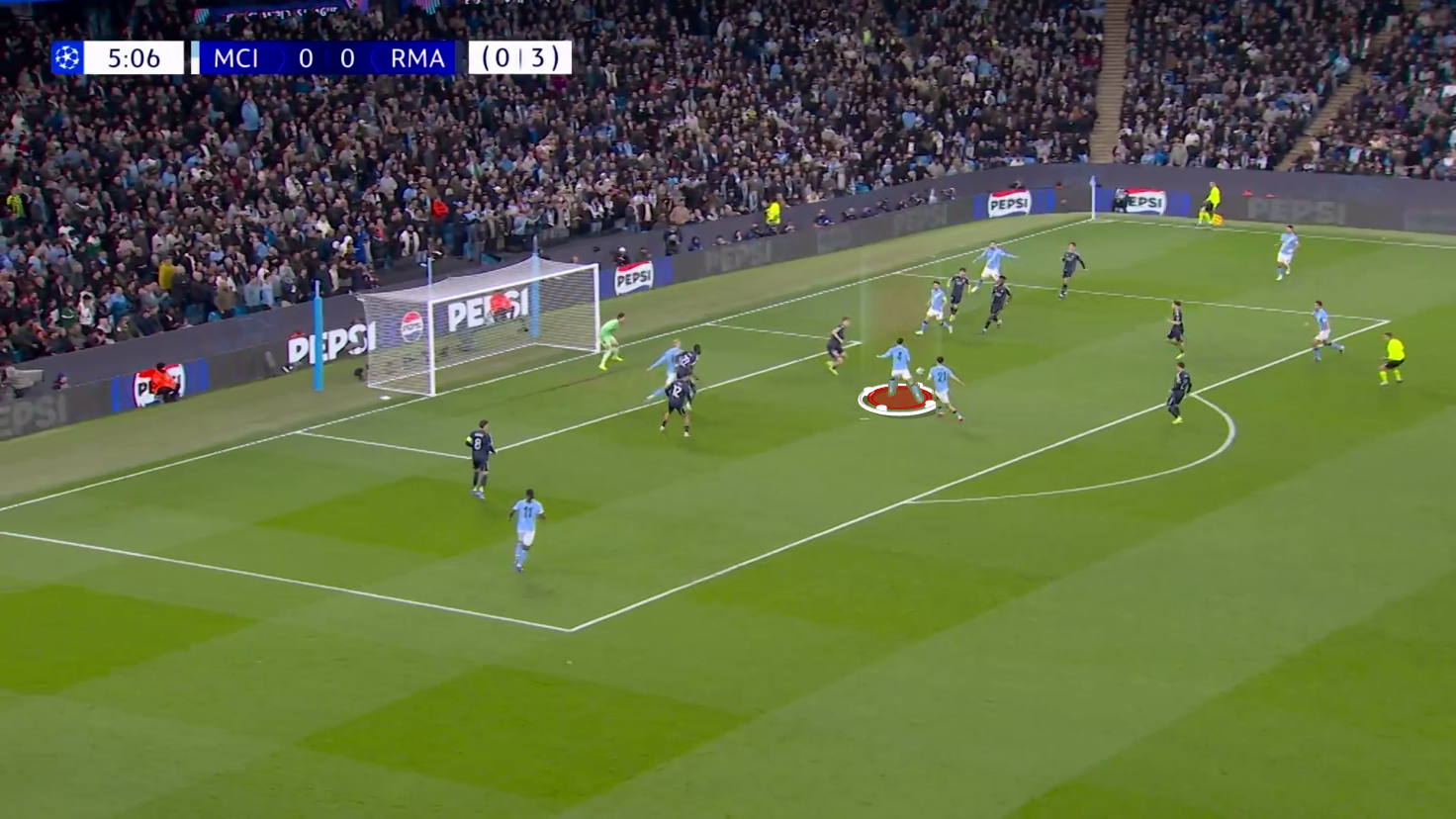 Moreover, the numerical inferiority further complicated Manchester City’s comeback attempts and helped Real Madrid secure their qualification, as they were also able to add a second goal thanks to Vinícius’ striker-like positioning and finishing inside the box following an intelligent first-time cross from Tchouaméni.