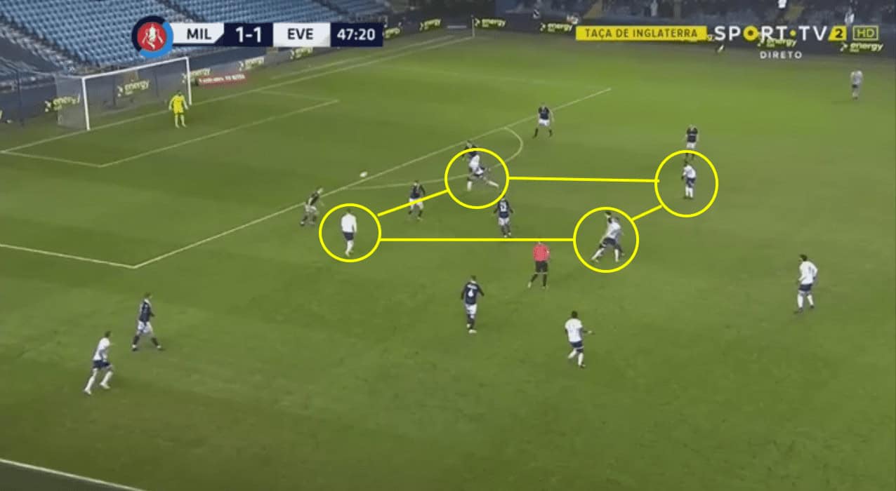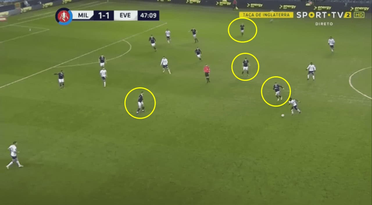 In this tactical analysis, we will look at three tactical trends supported with statistics. We will look at how Millwall set themselves up defensively. Then we will have a look at how Everton tried to attack. Lastly, we will have a look at how Millwall’s passing style was key to their success.