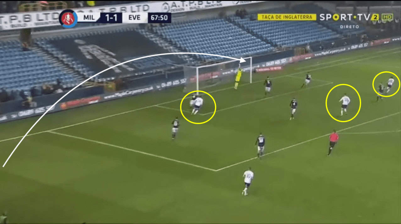 Everton were dominant in this game with 65% ball possession. However, Millwall still managed to score three goals against the Premier League side. All of them were produced through set pieces, but Millwall’s passing style was what made their attack dangerous in front of the Everton defence.