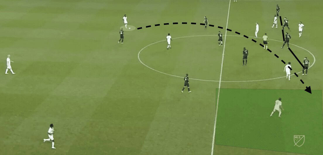 Shockingly, this was never addressed by Henry, who seemed to be comfortable with Philly controlling these areas of the pitch. The Philadelphia Union launched 31 attacks from wide areas. To no surprise, each of their four goals originated from wide areas. There were two common sequences when the wide areas were utilised effectively by the Union. The first was creating strong combination play to switch the point of attack while in the final third and the second was long balls from the centre-backs to the wingers.