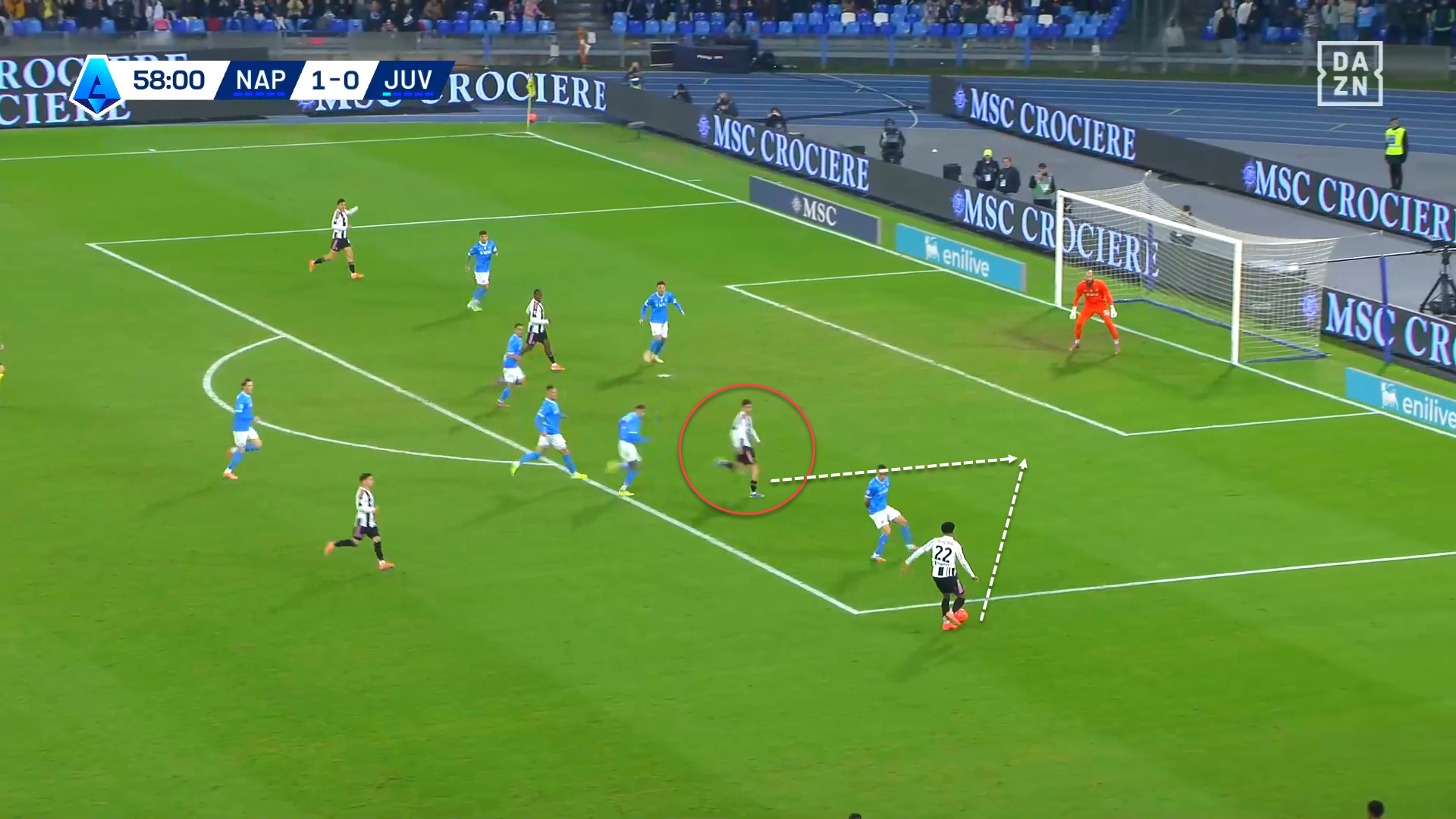 Instead of waiting for Di Lorenzo, Neres could have surprised Juventus’ defence with a through pass to Højlund, who would have made the movement of anticipating his direct marker and shoot on target.