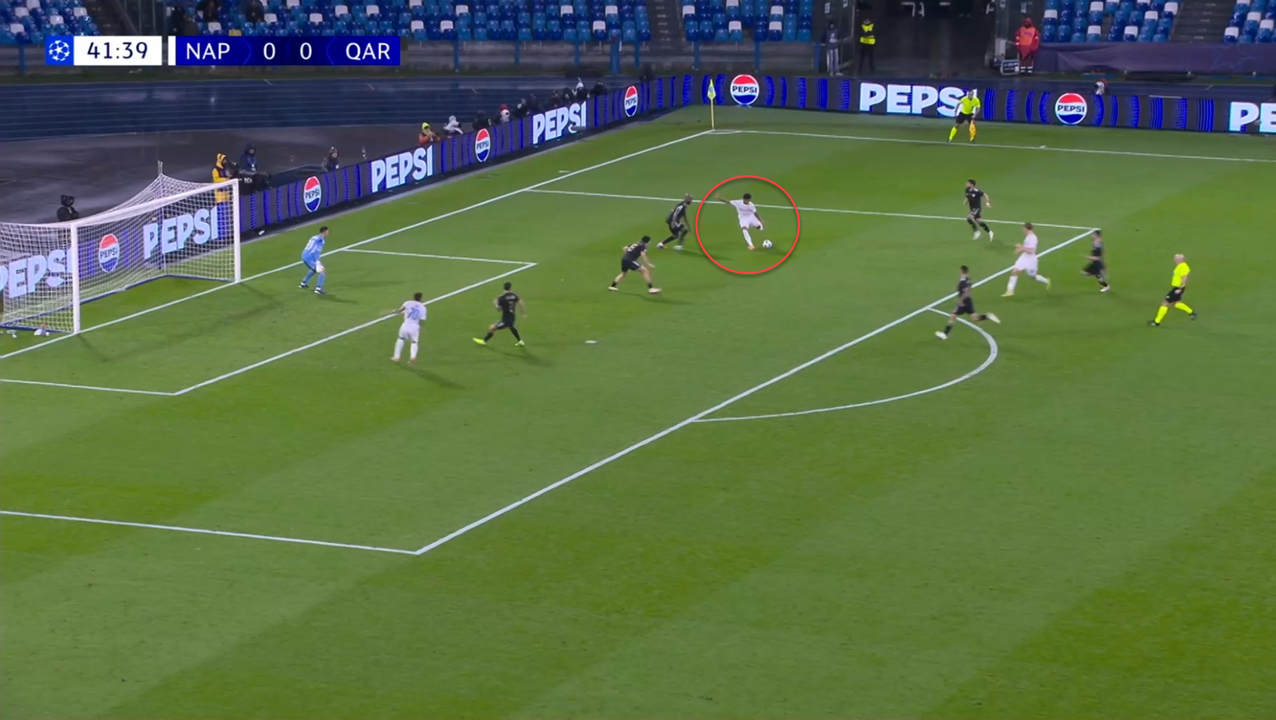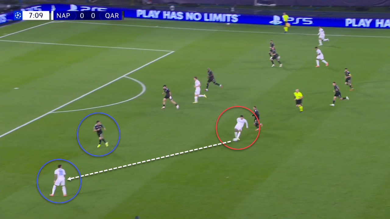 During this match, the reliance on Lang and the belief in his outstanding abilities in one-on-one duels were obvious, as Napoli made the tactical tweaks needed to put him in those situations and avoid putting him in numerical inferiority against Qarabağ defenders.