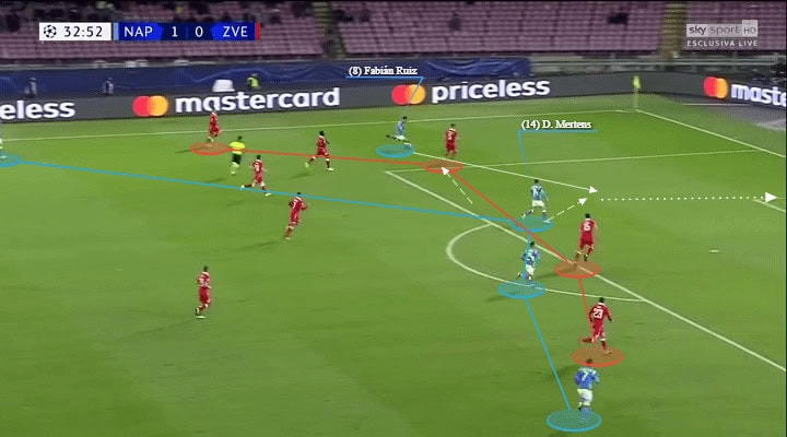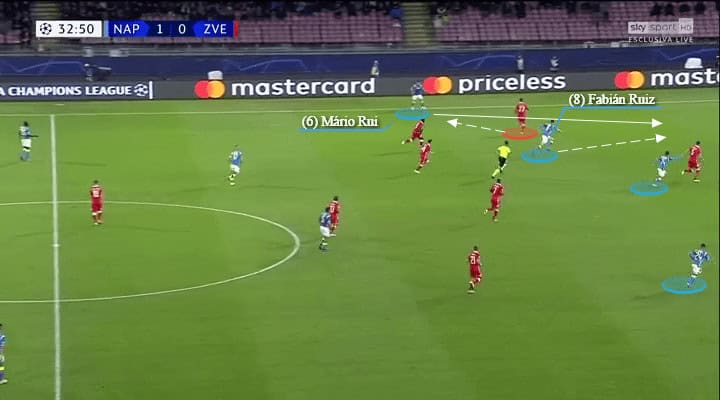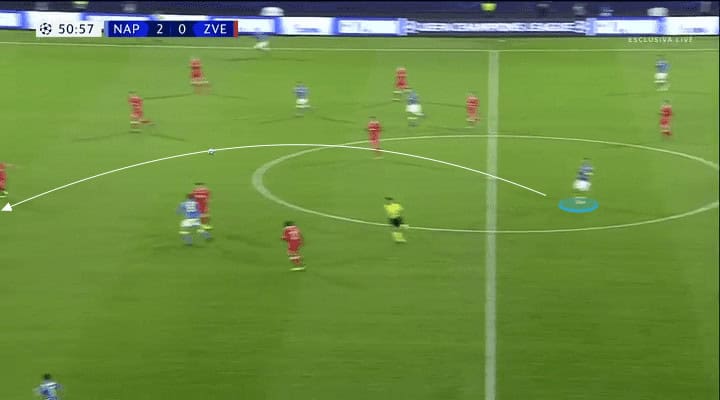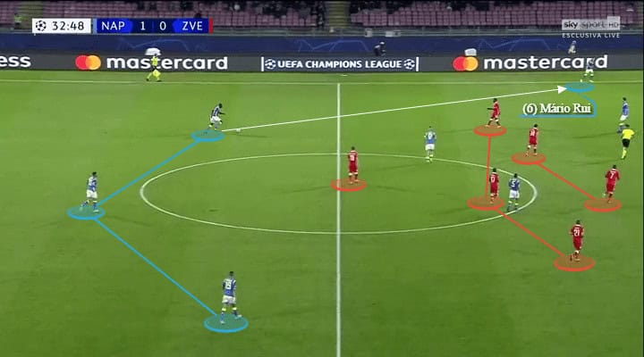 Just after the half-hour mark, a simple pass out wide from Koulibaly to Mário Rui caused the Red Star defence to shift suddenly to one side and gaps appeared.