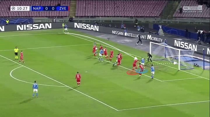 Perhaps they don’t have Sky in Serbia but judging by his actions during the corner kick, Red Star right-back Marko Gobeljic has either never heard of this guideline or doesn’t much care for it, preferring to stare only at Hamsík while the ball was swung in and helplessly watching the Slovakian pull away into space to meet the cross, 1-0 Napoli.