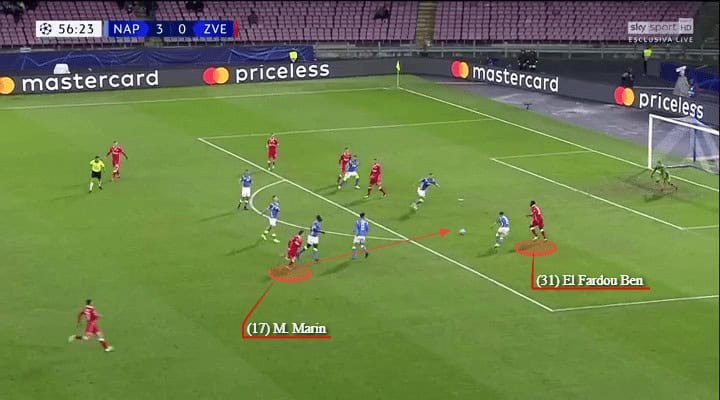 As Napoli’s intensity dropped, Red Star had a little more joy in playing out from the back and attacking midfielders Marko Marin and Ben Nabouhane finding more time on the ball.