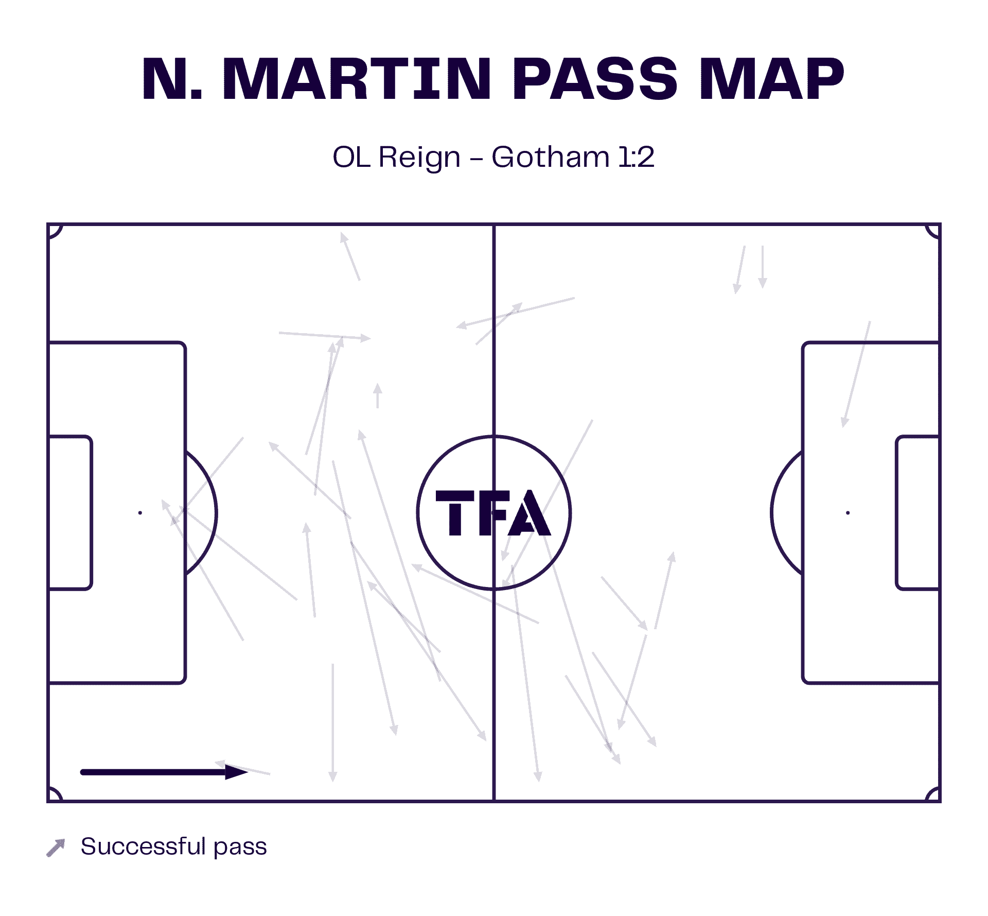 When looking at her pass map for this match, it is clear to see just how important she was in that regard, with her constantly drifting around the pitch and covering a large portion of the central third during the encounter.