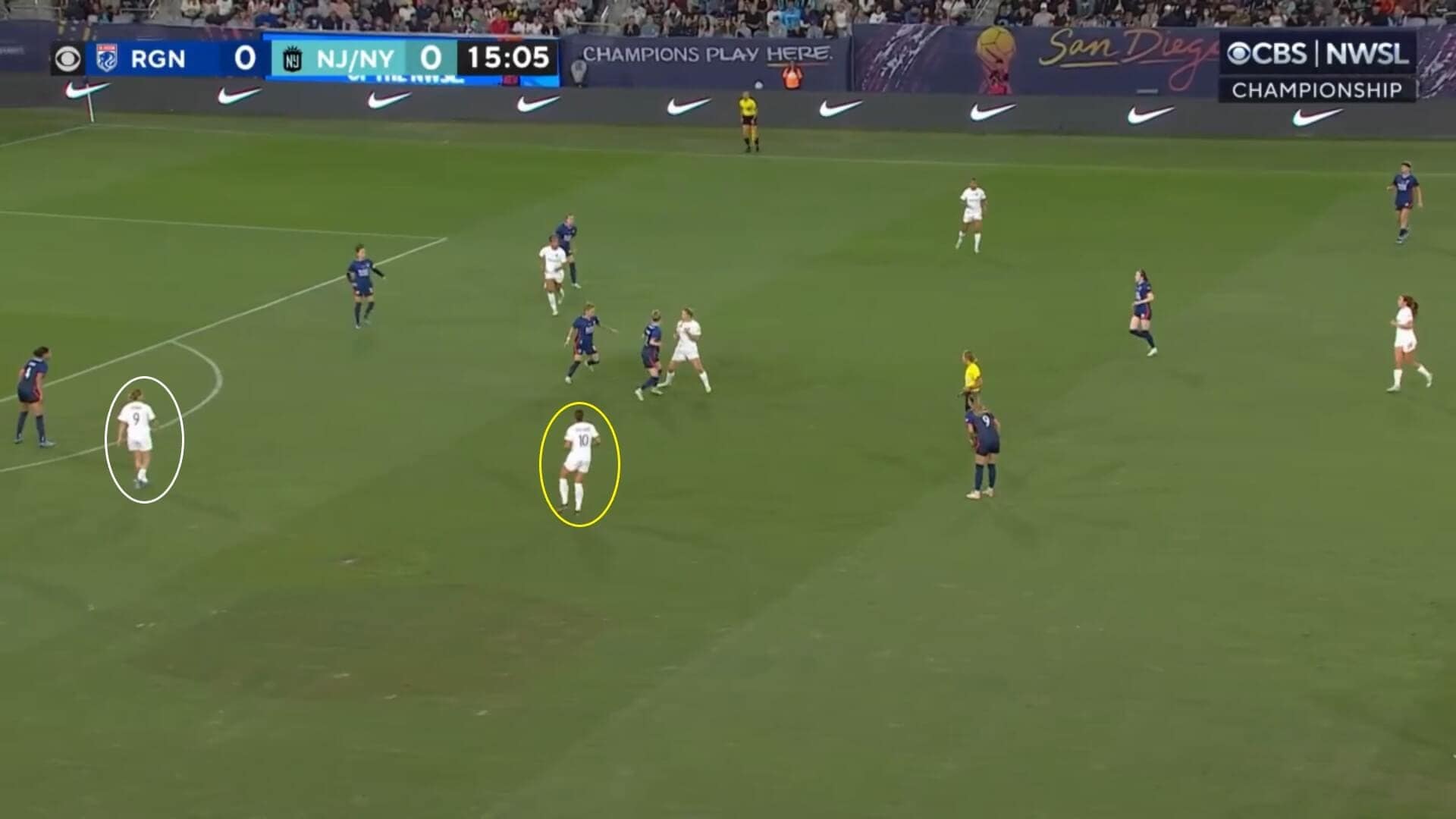 NJ/NY Gotham also decided not to make any changes as Amorós went with the same XI that featured against Portland Thorns in their semi-final, although he did make a few tweaks to where some players started. Former Real Madrid Femenino striker Esther González switched from the deeper role that she had occupied at Providence Park to leading the line, whilst Yazmeen Ryan shifted inside the pitch and Lynn Williams moved to the wing, giving the team a more orthodox appearance in that players were featuring predominantly in their main positions.