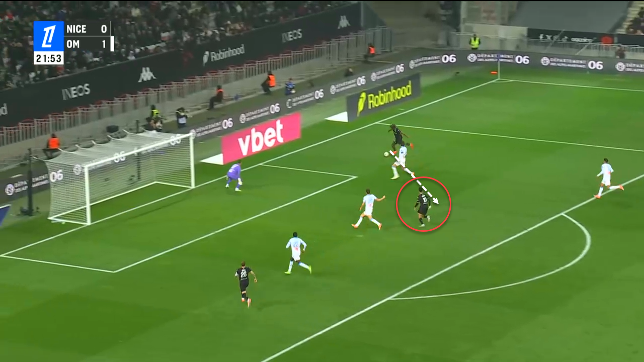 Their ability to threaten OGC Nice’s defence, especially with their quick attacking transitions, which relied on Greenwood, Paixão, and Aubameyang’s pace, paid off, as OGC Nice’s players were unable to keep up with those quick counter-attacks.