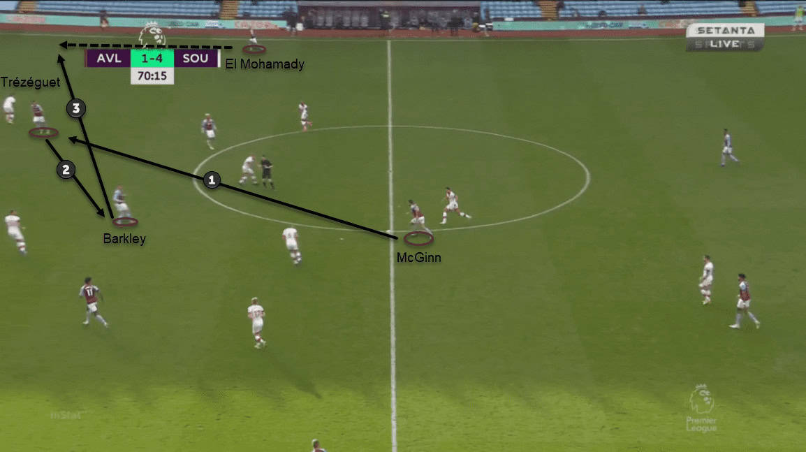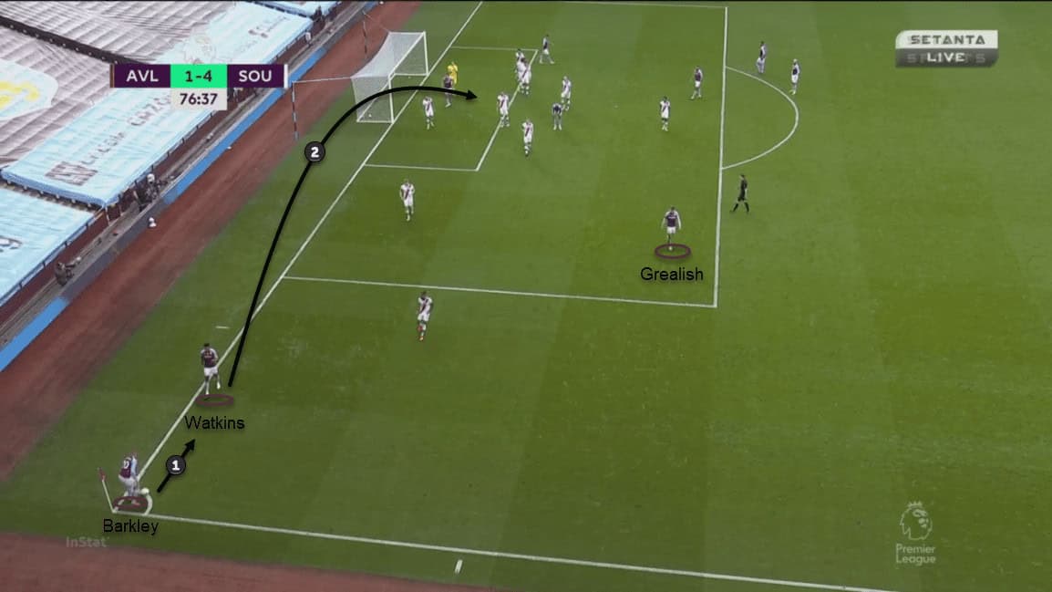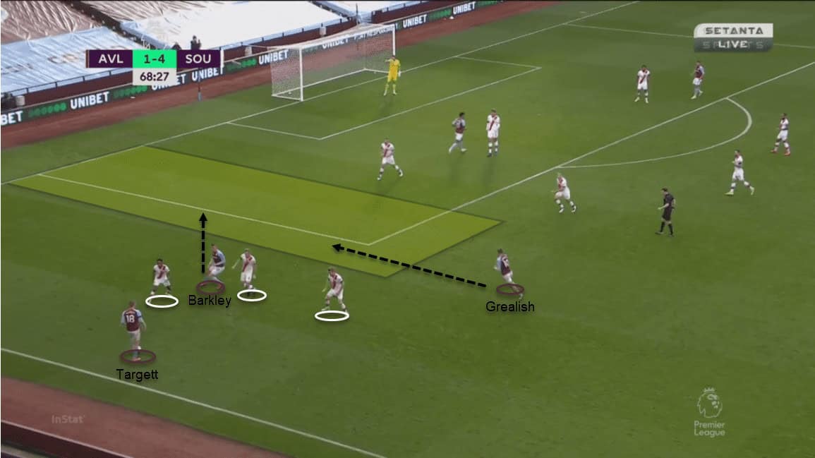 The Lions put 22 of their 25 crosses in the second half by understanding and tactically breaking Southampton’s defensive strategy. Targett and Grealish supplied 12 crosses collectively and most of them aimed at the far post. Trézéguet was on the receiving end of those balls and he was extremely unfortunate to not see his name on the scoresheet. He had three shots on target from those crosses but they were twice saved by McCarthy’s brilliant reflexes and a brave block by Vestergaard in the six-yard-box.