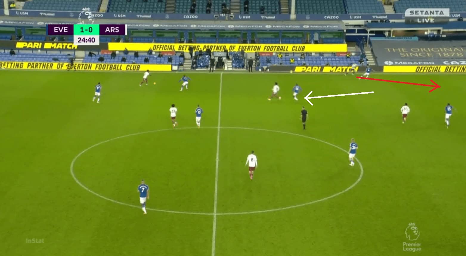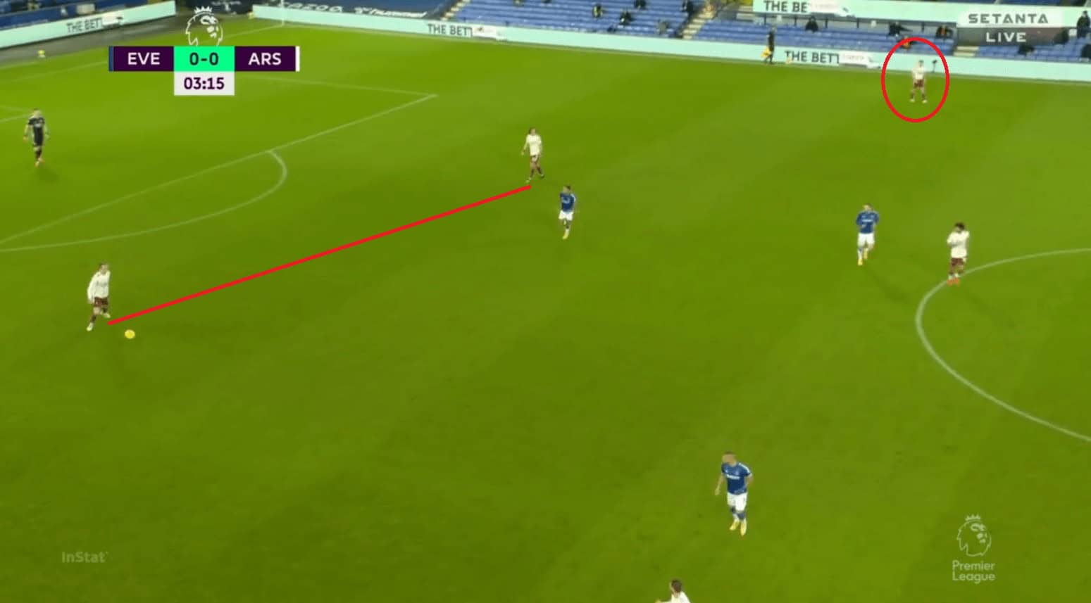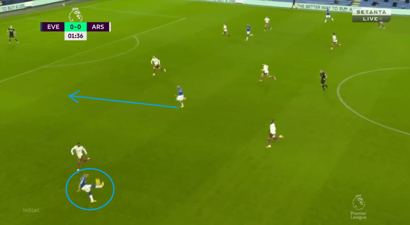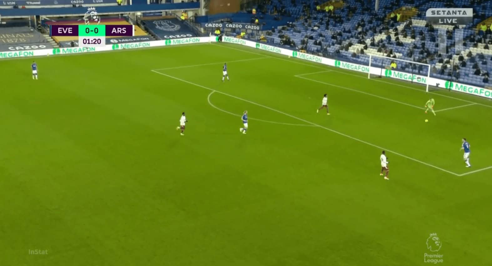 Like in their previous games Everton heavily relied on directness and were very successful against a very weak Arsenal defence in the air. They had a total of 5 shot attempts from set-pieces. Their talisman, Calvert-Lewin, won a game-high of 4 aerial duels. He was pretty unchallenged by the likes of Holding and Luiz in the air and even when Pickford had to send in a panic long ball due to pressure. Calvert-Lewin ensured that Everton regained their advantage by winning the first ball.
