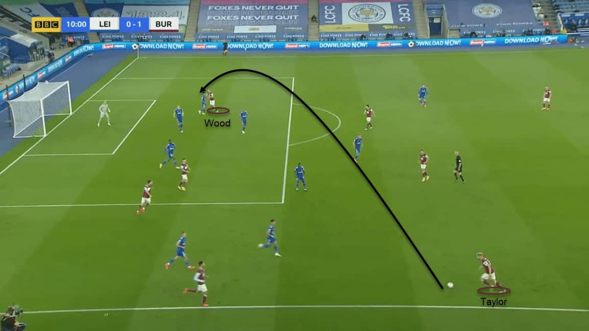 The Clarets offered a maximum threat from crosses as their aerial dominance is second to none. The forwards targeted the opposite end/far-post in particular. The deliveries from the left were menacing and caused a lot of issue for Leicester.