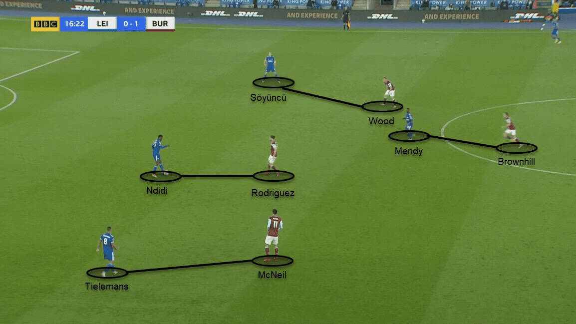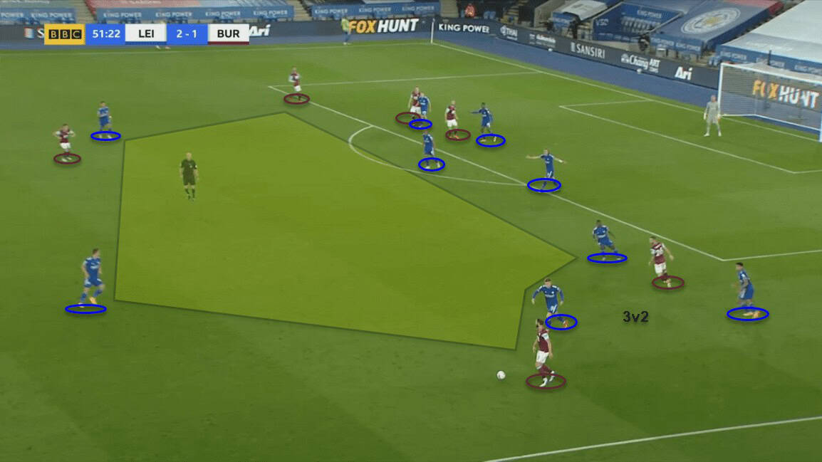 Burnley’s press against Leicester’s build-up