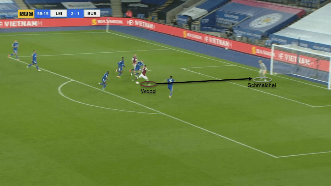 It was evident from Clarets’ performance that they tried to exploit the spaces behind the advanced Leicester full-backs in transitions. However, they failed to take their chances due to their deficient finishing from promising situations.