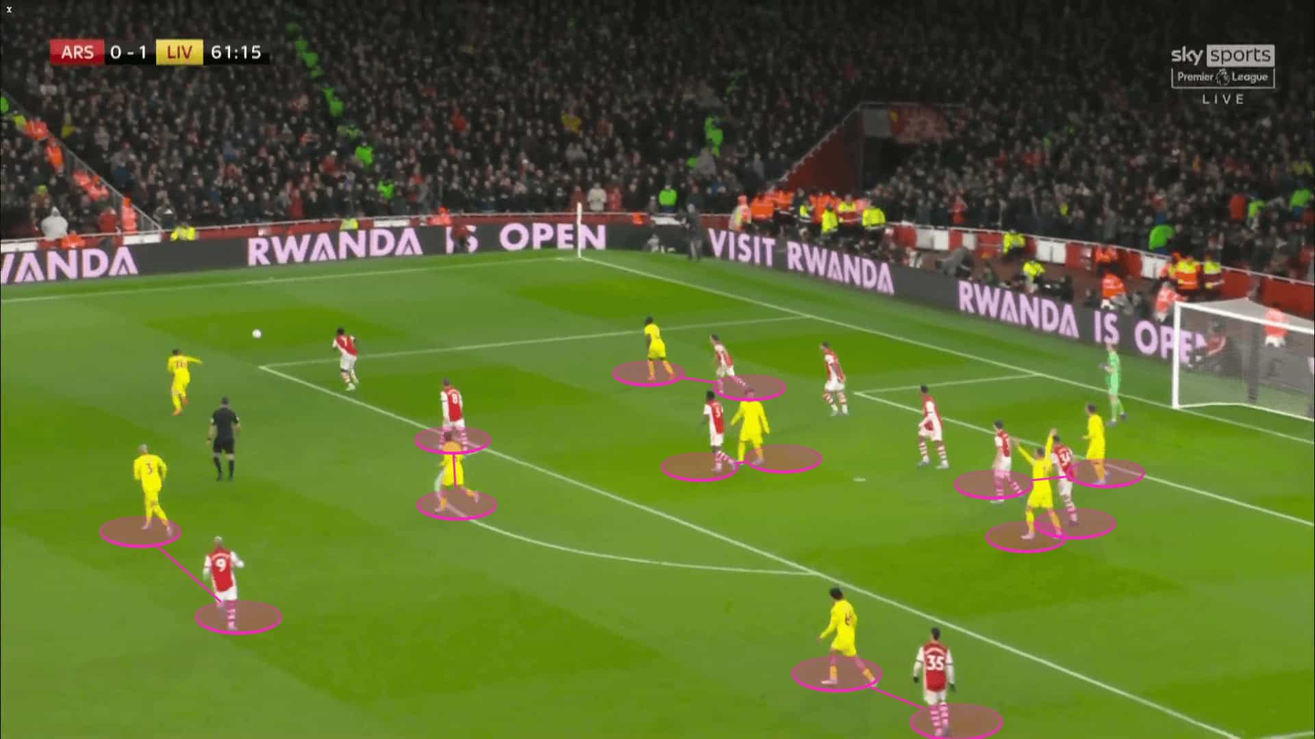 Arteta’s players relied on their marking strategy and intelligent positioning to pressurize the opposition and block the passing lanes, troubling their build up from the back and forcing them into sending the ball back. Arsenal’s behaviour affected Liverpool’s efficiency on the ball and resulted in an unusual inaccuracy in their back passes and difficulties in ball progression.