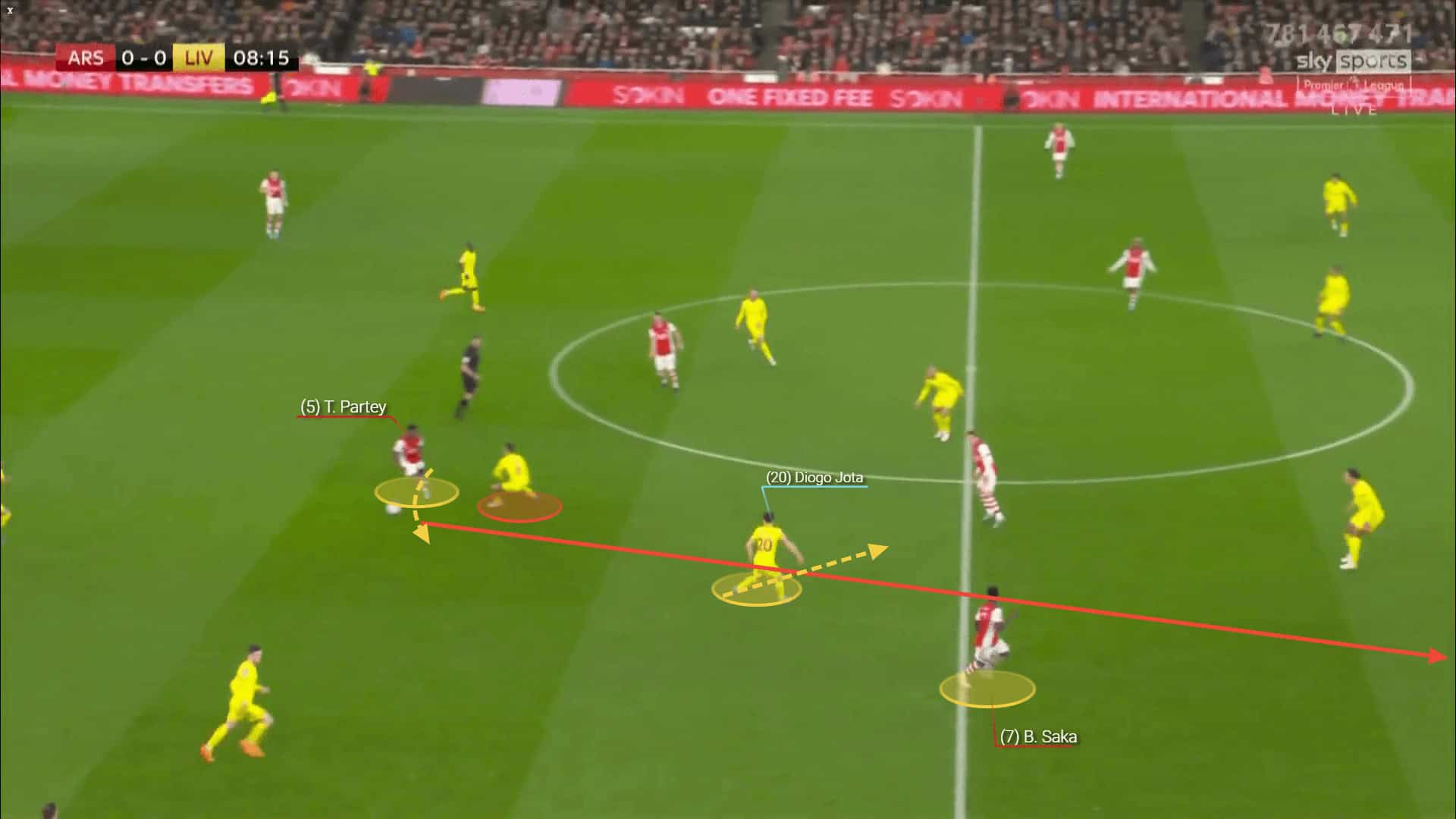 Arsenal used the opportunity to press high and force the opposition to send the ball back.The biggest pressing battle was in midfield, where Xhaka and Partey were toe-to-toe with Fabinho and Thiago. The Arsenal players were very efficient in their pressing efforts and demonstrated their improved positional sense and ability to recover the ball (11 and 13 times respectively).