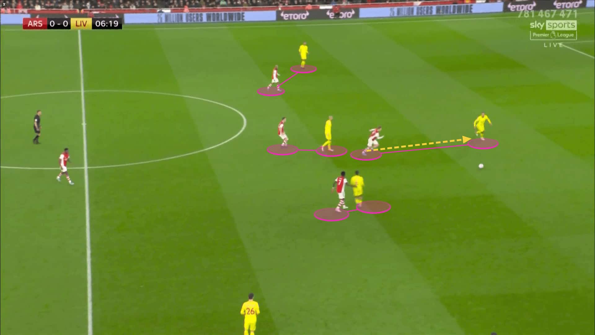 Arteta’s side displayed an improved counter-pressing strategy too, especially in the first half. Their reactions in transitions have improved and they managed to block Liverpool’s opportunities to expose them on a counter on multiple occasions. Their positional sense and organisation have affected their ability to counter-press. They were able to resist Liverpool’s attacking actions as a result of their improved work under pressure.