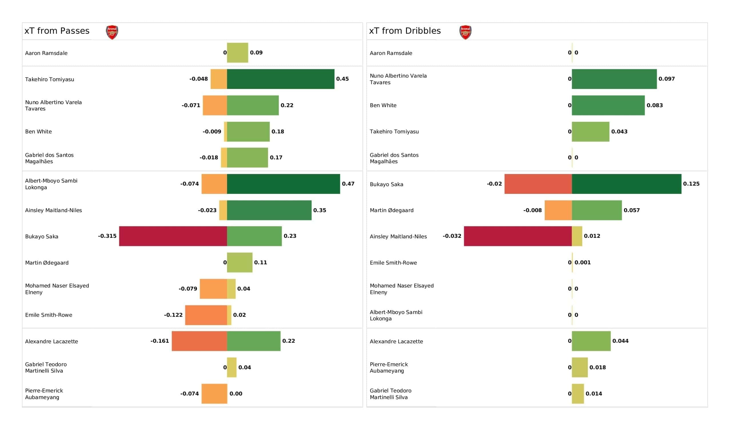Sunday saw <a href="https://totalfootballanalysis.com/match-analysis/premier-league-2021-22-leicester-vs-arsenal-post-match-data-viz-and-stats">Arsenal</a> continue their unbeaten run, beating <a href="https://totalfootballanalysis.com/match-analysis/premier-league-2021-22-watford-vs-southampton-post-match-data-viz-and-stats">Watford</a> 1-0 in the <a href="https://totalfootballanalysis.com/match-analysis/free-download-premier-league-gw8-analytics-reports-data-viz-and-stats">Premier League</a>. We've broken down all the key <a href="https://totalfootballanalysis.com/match-analysis/free-download-premier-league-gw8-analytics-reports-data-viz-and-stats">stats</a> for you to digest in this tactical analysis, including; * shot maps * xT (expected threat) * pass networks * xG timelines * defensive duels * average positions and much more! We also try to answer some questions for you with the visuals; Who was Arsenal's biggest threat? Who made the most recoveries in the opposition half? Who had the highest xG in the match? To navigate the stats gallery simply click on the numbers to move through the pages. <em><strong>Don't forget, if you take out a free <a href="https://totalfootballanalysis.com/subscribe">membership</a> to Total Football Analysis, you can receive our weekly Premier League Analytics Pack free of charge which includes all the analytics from every match, team benchmarking tables and player benchmarking tables - well over 150 pages of information after every matchweek is complete!</strong></em> <a href="https://totalfootballanalysis.com/wp-content/uploads/2021/11/Arsenal-vs-Watford_page-0001-scaled.jpg"><img class="aligncenter size-large wp-image-185994" src="https://totalfootballanalysis.com/wp-content/uploads/2021/11/Arsenal-vs-Watford_page-0001-1024x602.jpg" alt="Premier League 2021/22: Arsenal vs Watford - post-match data viz and stats" width="640" height="376" /></a><!--nextpage--> <a href="https://totalfootballanalysis.com/wp-content/uploads/2021/11/Arsenal-vs-Watford_page-0002-scaled.jpg"><img class="aligncenter size-large wp-image-185995" src="https://totalfootballanalysis.com/wp-content/uploads/2021/11/Arsenal-vs-Watford_page-0002-1024x602.jpg" alt="Premier League 2021/22: Arsenal vs Watford - post-match data viz and stats" width="640" height="376" /></a> <a href="https://totalfootballanalysis.com/wp-content/uploads/2021/11/Arsenal-vs-Watford_page-0003-scaled.jpg"><img class="aligncenter size-large wp-image-185996" src="https://totalfootballanalysis.com/wp-content/uploads/2021/11/Arsenal-vs-Watford_page-0003-1024x602.jpg" alt="Premier League 2021/22: Arsenal vs Watford - post-match data viz and stats" width="640" height="376" /></a> <a href="https://totalfootballanalysis.com/wp-content/uploads/2021/11/Arsenal-vs-Watford_page-0004-scaled.jpg"><img class="aligncenter size-large wp-image-185997" src="https://totalfootballanalysis.com/wp-content/uploads/2021/11/Arsenal-vs-Watford_page-0004-1024x602.jpg" alt="Premier League 2021/22: Arsenal vs Watford - post-match data viz and stats" width="640" height="376" /></a> <a href="https://totalfootballanalysis.com/wp-content/uploads/2021/11/Arsenal-vs-Watford_page-0005-scaled.jpg"><img class="aligncenter size-large wp-image-185998" src="https://totalfootballanalysis.com/wp-content/uploads/2021/11/Arsenal-vs-Watford_page-0005-1024x602.jpg" alt="Premier League 2021/22: Arsenal vs Watford - post-match data viz and stats" width="640" height="376" /></a><!--nextpage--> <a href="https://totalfootballanalysis.com/wp-content/uploads/2021/11/Arsenal-vs-Watford_page-0006-scaled.jpg"><img class="aligncenter size-large wp-image-185999" src="https://totalfootballanalysis.com/wp-content/uploads/2021/11/Arsenal-vs-Watford_page-0006-1024x602.jpg" alt="Premier League 2021/22: Arsenal vs Watford - post-match data viz and stats" width="640" height="376" /></a> <a href="https://totalfootballanalysis.com/wp-content/uploads/2021/11/Arsenal-vs-Watford_page-0007-scaled.jpg"><img class="aligncenter size-large wp-image-186000" src="https://totalfootballanalysis.com/wp-content/uploads/2021/11/Arsenal-vs-Watford_page-0007-1024x602.jpg" alt="Premier League 2021/22: Arsenal vs Watford - post-match data viz and stats" width="640" height="376" /></a> <a href="https://totalfootballanalysis.com/wp-content/uploads/2021/11/Arsenal-vs-Watford_page-0008-scaled.jpg"><img class="aligncenter size-large wp-image-186001" src="https://totalfootballanalysis.com/wp-content/uploads/2021/11/Arsenal-vs-Watford_page-0008-1024x602.jpg" alt="Premier League 2021/22: Arsenal vs Watford - post-match data viz and stats" width="640" height="376" /></a> <a href="https://totalfootballanalysis.com/wp-content/uploads/2021/11/Arsenal-vs-Watford_page-0009-scaled.jpg"><img class="aligncenter size-large wp-image-186002" src="https://totalfootballanalysis.com/wp-content/uploads/2021/11/Arsenal-vs-Watford_page-0009-1024x602.jpg" alt="Premier League 2021/22: Arsenal vs Watford - post-match data viz and stats" width="640" height="376" /></a><!--nextpage--> <a href="https://totalfootballanalysis.com/wp-content/uploads/2021/11/Arsenal-vs-Watford_page-0010-scaled.jpg"><img class="aligncenter size-large wp-image-186003" src="https://totalfootballanalysis.com/wp-content/uploads/2021/11/Arsenal-vs-Watford_page-0010-1024x602.jpg" alt="Premier League 2021/22: Arsenal vs Watford - post-match data viz and stats" width="640" height="376" /></a> <a href="https://totalfootballanalysis.com/wp-content/uploads/2021/11/Arsenal-vs-Watford_page-0011-scaled.jpg"><img class="aligncenter size-large wp-image-186004" src="https://totalfootballanalysis.com/wp-content/uploads/2021/11/Arsenal-vs-Watford_page-0011-1024x602.jpg" alt="Premier League 2021/22: Arsenal vs Watford - post-match data viz and stats" width="640" height="376" /></a> <a href="https://totalfootballanalysis.com/wp-content/uploads/2021/11/Arsenal-vs-Watford_page-0012-scaled.jpg"><img class="aligncenter size-large wp-image-186005" src="https://totalfootballanal