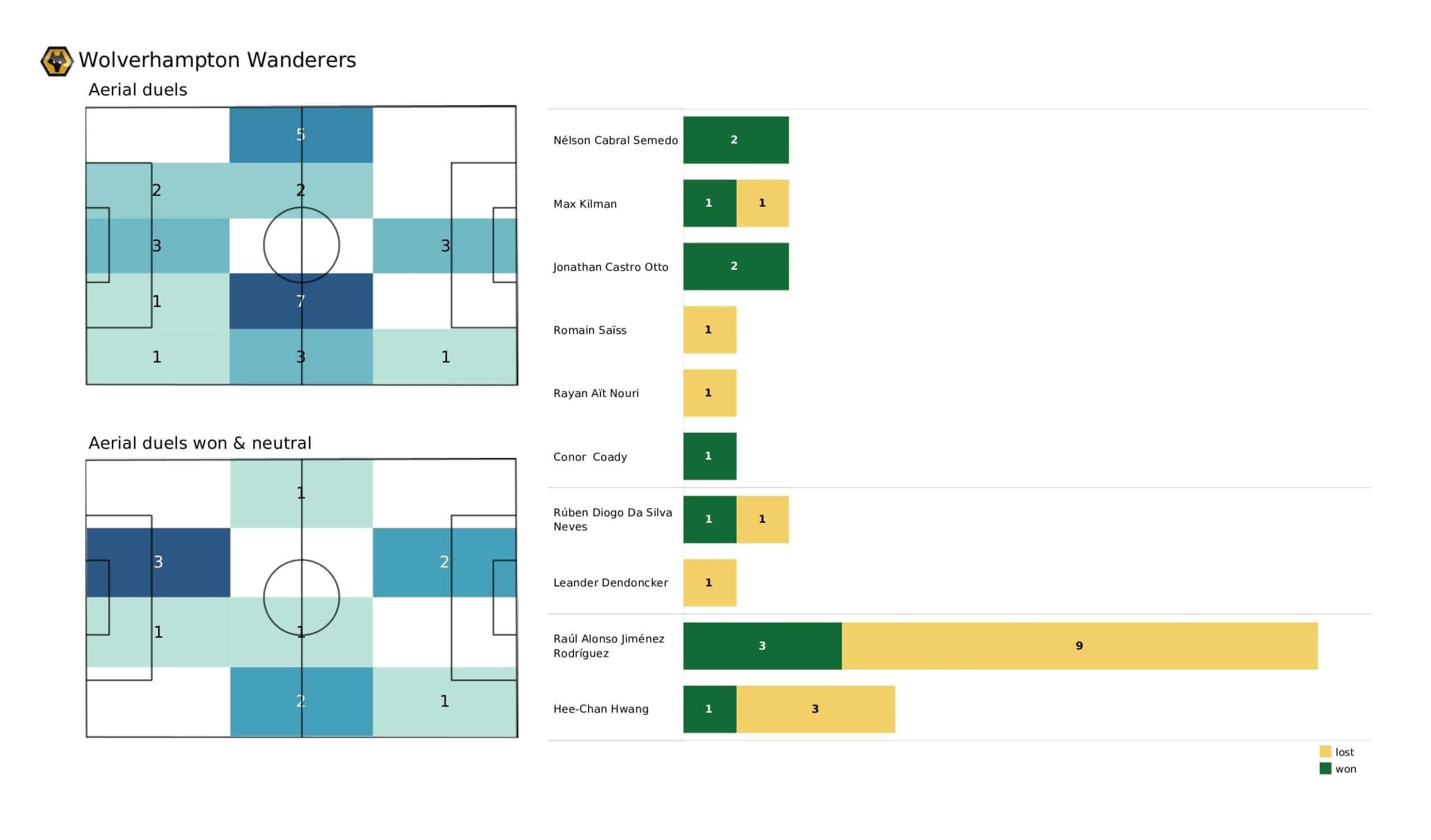 Thursday evening saw <a href="https://totalfootballanalysis.com/match-analysis/premier-league-2021-22-arsenal-vs-brentford-post-match-data-viz-and-stats">Arsenal</a> move nearer to the top four beating <a href="https://totalfootballanalysis.com/match-analysis/premier-league-2021-22-wolves-vs-leicester-post-match-data-viz-and-stats">Wolves</a> in the <a href="https://totalfootballanalysis.com/match-analysis/free-download-premier-league-gw8-analytics-reports-data-viz-and-stats">Premier League</a>. We've broken down all the key <a href="https://totalfootballanalysis.com/match-analysis/free-download-premier-league-gw8-analytics-reports-data-viz-and-stats">stats</a> for you to digest in this tactical analysis, including; <strong>New in February - set pieces!</strong> Plus... * shot maps * xT (expected threat) * pass networks * xG timelines * defensive duels * average positions and much more! We also try to answer some questions for you with the visuals; Who was Arsenal's biggest threat? Who made the most recoveries in the opposition half? Who had the highest xG in the match? To navigate the stats gallery simply click on the numbers to move through the pages. <em><strong>Don't forget, if you take out a free <a href="https://totalfootballanalysis.com/subscribe">membership</a> to Total Football Analysis, you can receive our weekly Premier League Analytics Pack free of charge which includes all the analytics from every match, team benchmarking tables and player benchmarking tables - well over 150 pages of information after every matchweek is complete!</strong></em> <a href="https://totalfootballanalysis.com/wp-content/uploads/2022/02/Arsenal-vs-Wolves_page-0002-scaled.jpg"><img class="aligncenter size-large wp-image-298084" src="https://totalfootballanalysis.com/wp-content/uploads/2022/02/Arsenal-vs-Wolves_page-0002-1024x602.jpg" alt="Premier League 2021/22: Arsenal vs Wolves - post-match data viz and stats" width="640" height="376" /></a> <a href="https://totalfootballanalysis.com/wp-content/uploads/2022/02/Arsenal-vs-Wolves_page-0003-scaled.jpg"><img class="aligncenter size-large wp-image-298085" src="https://totalfootballanalysis.com/wp-content/uploads/2022/02/Arsenal-vs-Wolves_page-0003-1024x602.jpg" alt="Premier League 2021/22: Arsenal vs Wolves - post-match data viz and stats" width="640" height="376" /></a> <a href="https://totalfootballanalysis.com/wp-content/uploads/2022/02/Arsenal-vs-Wolves_page-0004-scaled.jpg"><img class="aligncenter size-large wp-image-298086" src="https://totalfootballanalysis.com/wp-content/uploads/2022/02/Arsenal-vs-Wolves_page-0004-1024x602.jpg" alt="Premier League 2021/22: Arsenal vs Wolves - post-match data viz and stats" width="640" height="376" /></a> <a href="https://totalfootballanalysis.com/wp-content/uploads/2022/02/Arsenal-vs-Wolves_page-0005-scaled.jpg"><img class="aligncenter size-large wp-image-298087" src="https://totalfootballanalysis.com/wp-content/uploads/2022/02/Arsenal-vs-Wolves_page-0005-1024x602.jpg" alt="Premier League 2021/22: Arsenal vs Wolves - post-match data viz and stats" width="640" height="376" /></a><!--nextpage--> <a href="https://totalfootballanalysis.com/wp-content/uploads/2022/02/Arsenal-vs-Wolves_page-0006-scaled.jpg"><img class="aligncenter size-large wp-image-298088" src="https://totalfootballanalysis.com/wp-content/uploads/2022/02/Arsenal-vs-Wolves_page-0006-1024x602.jpg" alt="Premier League 2021/22: Arsenal vs Wolves - post-match data viz and stats" width="640" height="376" /></a> <a href="https://totalfootballanalysis.com/wp-content/uploads/2022/02/Arsenal-vs-Wolves_page-0007-scaled.jpg"><img class="aligncenter size-large wp-image-298089" src="https://totalfootballanalysis.com/wp-content/uploads/2022/02/Arsenal-vs-Wolves_page-0007-1024x602.jpg" alt="Premier League 2021/22: Arsenal vs Wolves - post-match data viz and stats" width="640" height="376" /></a> <a href="https://totalfootballanalysis.com/wp-content/uploads/2022/02/Arsenal-vs-Wolves_page-0008-scaled.jpg"><img class="aligncenter size-large wp-image-298090" src="https://totalfootballanalysis.com/wp-content/uploads/2022/02/Arsenal-vs-Wolves_page-0008-1024x602.jpg" alt="Premier League 2021/22: Arsenal vs Wolves - post-match data viz and stats" width="640" height="376" /></a> <a href="https://totalfootballanalysis.com/wp-content/uploads/2022/02/Arsenal-vs-Wolves_page-0009-scaled.jpg"><img class="aligncenter size-large wp-image-298091" src="https://totalfootballanalysis.com/wp-content/uploads/2022/02/Arsenal-vs-Wolves_page-0009-1024x602.jpg" alt="Premier League 2021/22: Arsenal vs Wolves - post-match data viz and stats" width="640" height="376" /></a><!--nextpage--> <a href="https://totalfootballanalysis.com/wp-content/uploads/2022/02/Arsenal-vs-Wolves_page-0010-scaled.jpg"><img class="aligncenter size-large wp-image-298092" src="https://totalfootballanalysis.com/wp-content/uploads/2022/02/Arsenal-vs-Wolves_page-0010-1024x602.jpg" alt="Premier League 2021/22: Arsenal vs Wolves - post-match data viz and stats" width="640" height="376" /></a> <a href="https://totalfootballanalysis.com/wp-content/uploads/2022/02/Arsenal-vs-Wolves_page-0011-scaled.jpg"><img class="aligncenter size-large wp-image-298093" src="https://totalfootballanalysis.com/wp-content/uploads/2022/02/Arsenal-vs-Wolves_page-0011-1024x602.jpg" alt="Premier League 2021/22: Arsenal vs Wolves - post-match data viz and stats" width="640" height="376" /></a> <a href="https://totalfootballanalysis.com/wp-content/uploads/2022/02/Arsenal-vs-Wolves_page-0012-scaled.jpg"><img class="aligncenter size-large wp-image-298094" src="https://totalfootballanalysis.com/wp-content/uploads/2022/02/Arsenal-vs-Wolves_page-0012-1024x602.jpg" alt="Premier League 2021/22: Arsenal vs Wolves - post-match data viz and stats" width="640" height="376" /></a><!--nextpage--> <a href="https://totalfootballanalysis.com/wp-content/uploads/2022/02/Arsenal-vs-Wolves_page-0013-scaled.jpg"><img class="aligncenter size-large wp-image-298095" src="htt