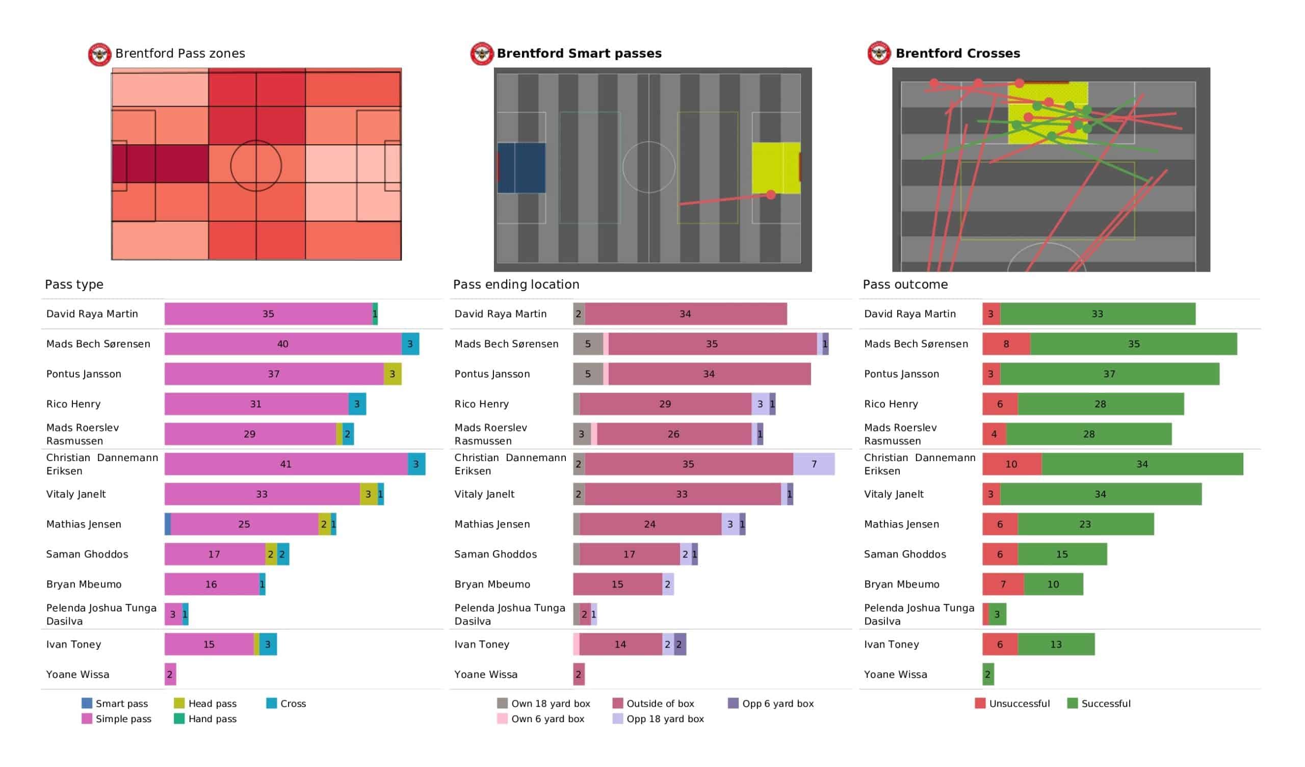 Saturday evening saw <a href="https://totalfootballanalysis.com/match-analysis/premier-league-2021-22-watford-vs-brentford-data-viz-stats-and-insights">Brentford</a> welcome <a href="https://totalfootballanalysis.com/match-analysis/premier-league-2021-22-tottenham-vs-brighton-data-viz-stats-and-insights">Tottenham</a> in the <a href="https://totalfootballanalysis.com/match-analysis/free-download-premier-league-gw8-analytics-reports-data-viz-and-stats">Premier League</a>. We've broken down all the key <a href="https://totalfootballanalysis.com/match-analysis/free-download-premier-league-gw8-analytics-reports-data-viz-and-stats">stats</a> for you to digest in this tactical analysis and provide <a href="https://totalfootballanalysis.com/player-analysis/but-what-does-that-visual-actually-tell-us">insights</a> around; * shot maps and set-pieces * xT (expected threat) * pass networks * xG timelines * defensive duels * average positions and much more! We also try to answer some questions for you with the visuals; Who was Tottenham's biggest threat? Who made the most recoveries in the opposition half? Who had the highest xG in the match? To navigate the stats gallery simply click on the numbers to move through the pages. <em><strong>Don't forget, if you take out a free <a href="https://totalfootballanalysis.com/subscribe">membership</a> to Total Football Analysis, you can receive our weekly Premier League Analytics Pack free of charge which includes all the analytics from every match, team benchmarking tables and player benchmarking tables - well over 150 pages of information after every matchweek is complete!</strong></em> <h2><em>Lineups and average positions</em></h2> <a href="https://totalfootballanalysis.com/wp-content/uploads/2022/04/Brentford-vs-Tottenham_page-0002-scaled.jpg"><img class="alignnone size-full wp-image-311957" src="https://totalfootballanalysis.com/wp-content/uploads/2022/04/Brentford-vs-Tottenham_page-0002-scaled.jpg" alt="Premier League 2021/22: Brentford vs Tottenham - data viz, stats and insights" width="2560" height="1504" /></a> <a href="https://totalfootballanalysis.com/wp-content/uploads/2022/04/Brentford-vs-Tottenham_page-0003-scaled.jpg"><img class="alignnone size-full wp-image-311958" src="https://totalfootballanalysis.com/wp-content/uploads/2022/04/Brentford-vs-Tottenham_page-0003-scaled.jpg" alt="Premier League 2021/22: Brentford vs Tottenham - data viz, stats and insights" width="2560" height="1504" /></a> <a href="https://totalfootballanalysis.com/wp-content/uploads/2022/04/Brentford-vs-Tottenham_page-0004-scaled.jpg"><img class="alignnone size-full wp-image-311959" src="https://totalfootballanalysis.com/wp-content/uploads/2022/04/Brentford-vs-Tottenham_page-0004-scaled.jpg" alt="Premier League 2021/22: Brentford vs Tottenham - data viz, stats and insights" width="2560" height="1504" /></a> <a href="https://totalfootballanalysis.com/wp-content/uploads/2022/04/Brentford-vs-Tottenham_page-0005-scaled.jpg"><img class="alignnone size-full wp-image-311960" src="https://totalfootballanalysis.com/wp-content/uploads/2022/04/Brentford-vs-Tottenham_page-0005-scaled.jpg" alt="Premier League 2021/22: Brentford vs Tottenham - data viz, stats and insights" width="2560" height="1504" /></a> <h2><em>Stats and shot maps </em></h2> <a href="https://totalfootballanalysis.com/wp-content/uploads/2022/04/Brentford-vs-Tottenham_page-0006-scaled.jpg"><img class="alignnone size-full wp-image-311961" src="https://totalfootballanalysis.com/wp-content/uploads/2022/04/Brentford-vs-Tottenham_page-0006-scaled.jpg" alt="Premier League 2021/22: Brentford vs Tottenham - data viz, stats and insights" width="2560" height="1504" /></a> <a href="https://totalfootballanalysis.com/wp-content/uploads/2022/04/Brentford-vs-Tottenham_page-0007-scaled.jpg"><img class="alignnone size-full wp-image-311962" src="https://totalfootballanalysis.com/wp-content/uploads/2022/04/Brentford-vs-Tottenham_page-0007-scaled.jpg" alt="Premier League 2021/22: Brentford vs Tottenham - data viz, stats and insights" width="2560" height="1504" /></a> <a href="https://totalfootballanalysis.com/wp-content/uploads/2022/04/Brentford-vs-Tottenham_page-0008-scaled.jpg"><img class="alignnone size-full wp-image-311963" src="https://totalfootballanalysis.com/wp-content/uploads/2022/04/Brentford-vs-Tottenham_page-0008-scaled.jpg" alt="Premier League 2021/22: Brentford vs Tottenham - data viz, stats and insights" width="2560" height="1504" /></a> <a href="https://totalfootballanalysis.com/wp-content/uploads/2022/04/Brentford-vs-Tottenham_page-0009-scaled.jpg"><img class="alignnone size-full wp-image-311964" src="https://totalfootballanalysis.com/wp-content/uploads/2022/04/Brentford-vs-Tottenham_page-0009-scaled.jpg" alt="Premier League 2021/22: Brentford vs Tottenham - data viz, stats and insights" width="2560" height="1504" /></a><!--nextpage--> <h2><em>xT and xG timelines plus pass matrixes</em></h2> <a href="https://totalfootballanalysis.com/wp-content/uploads/2022/04/Brentford-vs-Tottenham_page-0010-scaled.jpg"><img class="alignnone size-full wp-image-311965" src="https://totalfootballanalysis.com/wp-content/uploads/2022/04/Brentford-vs-Tottenham_page-0010-scaled.jpg" alt="Premier League 2021/22: Brentford vs Tottenham - data viz, stats and insights" width="2560" height="1504" /></a> <a href="https://totalfootballanalysis.com/wp-content/uploads/2022/04/Brentford-vs-Tottenham_page-0011-scaled.jpg"><img class="alignnone size-full wp-image-311966" src="https://totalfootballanalysis.com/wp-content/uploads/2022/04/Brentford-vs-Tottenham_page-0011-scaled.jpg" alt="Premier League 2021/22: Brentford vs Tottenham - data viz, stats and insights" width="2560" height="1504" /></a> <a href="https://totalfootballanalysis.com/wp-content/uploads/2022/04/Brentford-vs-Tottenham_page-0012-scaled.jpg"><img class="alignnone size-full wp-image-311967" src="https://totalfootballanalysis.com/wp-content/uploads/2022/04/Brentford-vs-Tottenham_page-0012-scal