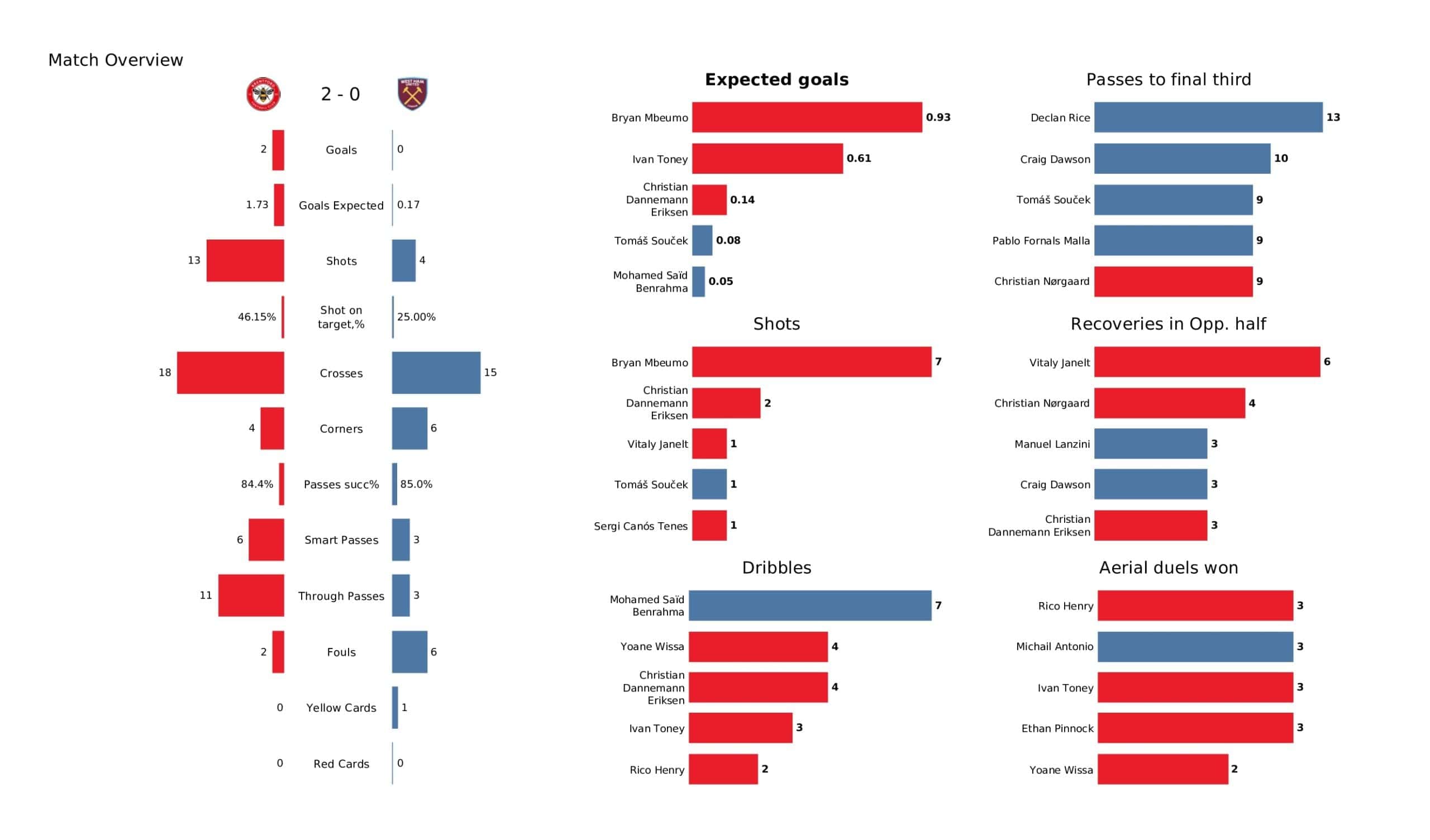 Premier League 2021/22: Brentford vs West Ham United - data viz, stats and insights