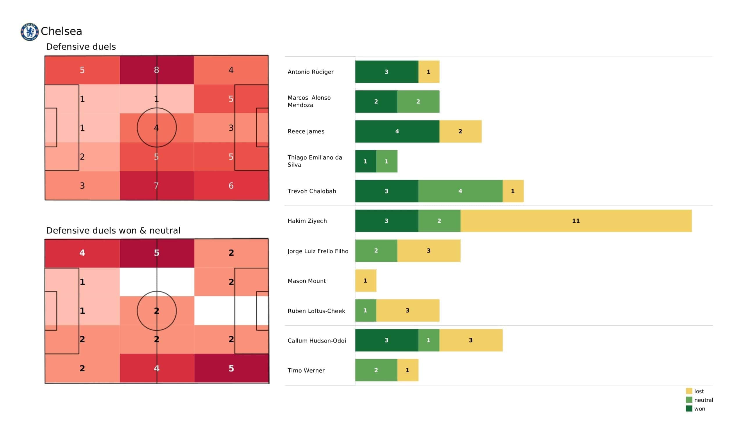 Sunday saw <a href="https://totalfootballanalysis.com/match-analysis/uefa-champions-league-2021-22-chelsea-vs-juventus-post-match-data-viz-and-stats">Chelsea</a> come from a goal down to draw 1-1 with <a href="https://totalfootballanalysis.com/match-analysis/uefa-champions-league-2021-22-villarreal-vs-man-united-post-match-data-viz-and-stats">Man United</a> in the <a href="https://totalfootballanalysis.com/match-analysis/free-download-premier-league-gw8-analytics-reports-data-viz-and-stats">Premier League</a>. We've broken down all the key <a href="https://totalfootballanalysis.com/match-analysis/free-download-premier-league-gw8-analytics-reports-data-viz-and-stats">stats</a> for you to digest in this tactical analysis, including; * shot maps * xT (expected threat) * pass networks * xG timelines * defensive duels * average positions and much more! We also try to answer some questions for you with the visuals; Who was Chelsea's biggest threat? Who made the most recoveries in the opposition half? Who had the highest xG in the match? To navigate the stats gallery simply click on the numbers to move through the pages. <em><strong>Don't forget, if you take out a free <a href="https://totalfootballanalysis.com/subscribe">membership</a> to Total Football Analysis, you can receive our weekly Premier League Analytics Pack free of charge which includes all the analytics from every match, team benchmarking tables and player benchmarking tables - well over 150 pages of information after every matchweek is complete!</strong></em> <a href="https://totalfootballanalysis.com/wp-content/uploads/2021/11/Chelsea-vs-Man-United_page-0001-scaled.jpg"><img class="aligncenter size-large wp-image-190466" src="https://totalfootballanalysis.com/wp-content/uploads/2021/11/Chelsea-vs-Man-United_page-0001-1024x602.jpg" alt="Premier League 2021/22: Chelsea vs Man United - post-match data viz and stats" width="640" height="376" /></a><!--nextpage--> <a href="https://totalfootballanalysis.com/wp-content/uploads/2021/11/Chelsea-vs-Man-United_page-0002-scaled.jpg"><img class="aligncenter size-large wp-image-190467" src="https://totalfootballanalysis.com/wp-content/uploads/2021/11/Chelsea-vs-Man-United_page-0002-1024x602.jpg" alt="Premier League 2021/22: Chelsea vs Man United - post-match data viz and stats" width="640" height="376" /></a> <a href="https://totalfootballanalysis.com/wp-content/uploads/2021/11/Chelsea-vs-Man-United_page-0003-scaled.jpg"><img class="aligncenter size-large wp-image-190468" src="https://totalfootballanalysis.com/wp-content/uploads/2021/11/Chelsea-vs-Man-United_page-0003-1024x602.jpg" alt="Premier League 2021/22: Chelsea vs Man United - post-match data viz and stats" width="640" height="376" /></a> <a href="https://totalfootballanalysis.com/wp-content/uploads/2021/11/Chelsea-vs-Man-United_page-0004-scaled.jpg"><img class="aligncenter size-large wp-image-190469" src="https://totalfootballanalysis.com/wp-content/uploads/2021/11/Chelsea-vs-Man-United_page-0004-1024x602.jpg" alt="Premier League 2021/22: Chelsea vs Man United - post-match data viz and stats" width="640" height="376" /></a> <a href="https://totalfootballanalysis.com/wp-content/uploads/2021/11/Chelsea-vs-Man-United_page-0005-scaled.jpg"><img class="aligncenter size-large wp-image-190470" src="https://totalfootballanalysis.com/wp-content/uploads/2021/11/Chelsea-vs-Man-United_page-0005-1024x602.jpg" alt="Premier League 2021/22: Chelsea vs Man United - post-match data viz and stats" width="640" height="376" /></a><!--nextpage--> <a href="https://totalfootballanalysis.com/wp-content/uploads/2021/11/Chelsea-vs-Man-United_page-0006-scaled.jpg"><img class="aligncenter size-large wp-image-190471" src="https://totalfootballanalysis.com/wp-content/uploads/2021/11/Chelsea-vs-Man-United_page-0006-1024x602.jpg" alt="Premier League 2021/22: Chelsea vs Man United - post-match data viz and stats" width="640" height="376" /></a> <a href="https://totalfootballanalysis.com/wp-content/uploads/2021/11/Chelsea-vs-Man-United_page-0007-scaled.jpg"><img class="aligncenter size-large wp-image-190472" src="https://totalfootballanalysis.com/wp-content/uploads/2021/11/Chelsea-vs-Man-United_page-0007-1024x602.jpg" alt="Premier League 2021/22: Chelsea vs Man United - post-match data viz and stats" width="640" height="376" /></a> <a href="https://totalfootballanalysis.com/wp-content/uploads/2021/11/Chelsea-vs-Man-United_page-0008-scaled.jpg"><img class="aligncenter size-large wp-image-190473" src="https://totalfootballanalysis.com/wp-content/uploads/2021/11/Chelsea-vs-Man-United_page-0008-1024x602.jpg" alt="Premier League 2021/22: Chelsea vs Man United - post-match data viz and stats" width="640" height="376" /></a> <a href="https://totalfootballanalysis.com/wp-content/uploads/2021/11/Chelsea-vs-Man-United_page-0009-scaled.jpg"><img class="aligncenter size-large wp-image-190474" src="https://totalfootballanalysis.com/wp-content/uploads/2021/11/Chelsea-vs-Man-United_page-0009-1024x602.jpg" alt="Premier League 2021/22: Chelsea vs Man United - post-match data viz and stats" width="640" height="376" /></a><!--nextpage--> <a href="https://totalfootballanalysis.com/wp-content/uploads/2021/11/Chelsea-vs-Man-United_page-0010-scaled.jpg"><img class="aligncenter size-large wp-image-190475" src="https://totalfootballanalysis.com/wp-content/uploads/2021/11/Chelsea-vs-Man-United_page-0010-1024x602.jpg" alt="Premier League 2021/22: Chelsea vs Man United - post-match data viz and stats" width="640" height="376" /></a> <a href="https://totalfootballanalysis.com/wp-content/uploads/2021/11/Chelsea-vs-Man-United_page-0011-scaled.jpg"><img class="aligncenter size-large wp-image-190476" src="https://totalfootballanalysis.com/wp-content/uploads/2021/11/Chelsea-vs-Man-United_page-0011-1024x602.jpg" alt="Premier League 2021/22: Chelsea vs Man United - post-match data viz and stats" width="640" height="376" /></a> <a href="https://totalfootballanalysis.com/wp-content/uploads/2021/11/Chelsea-