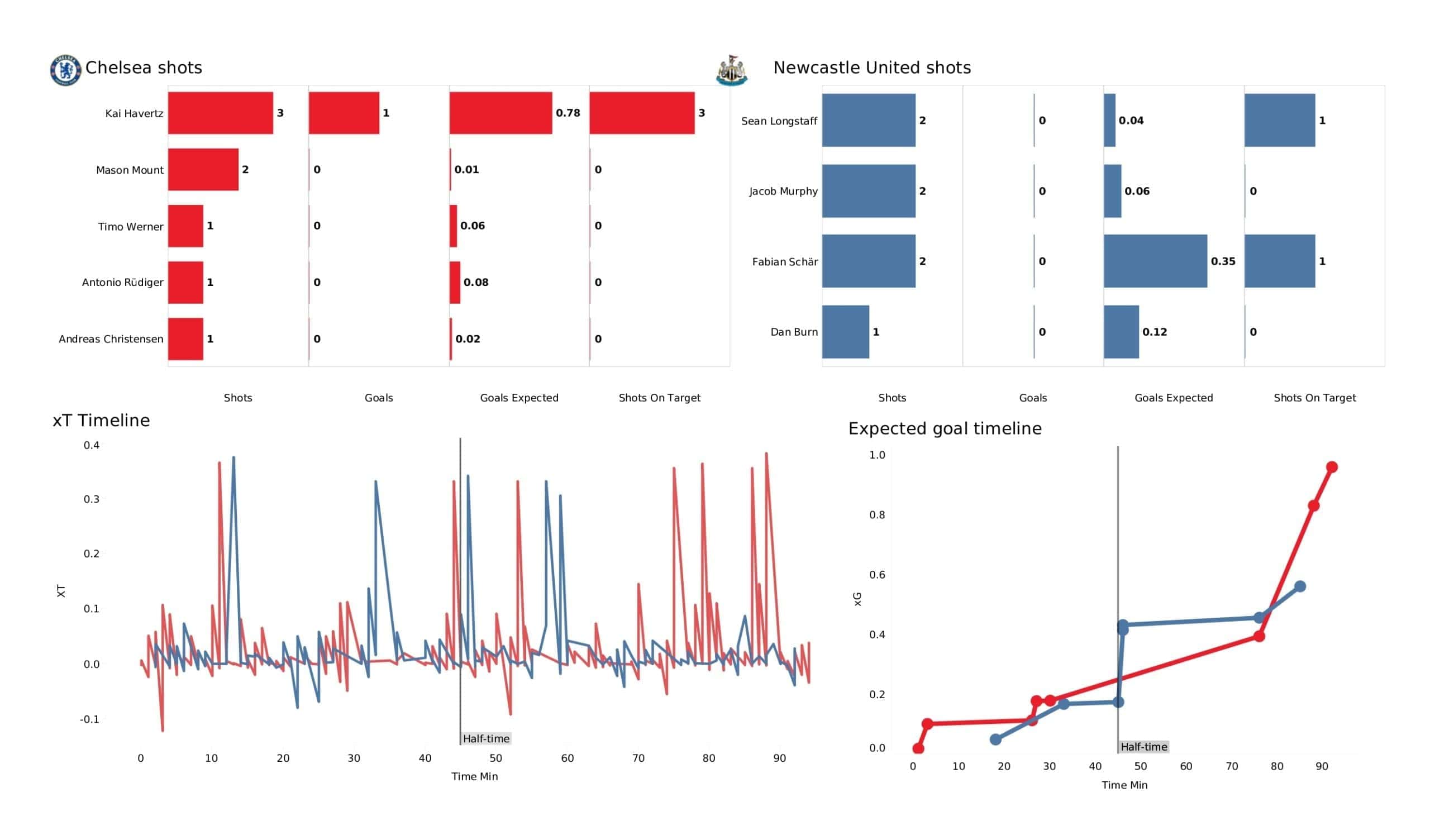Sunday lunchtime saw <a href="https://totalfootballanalysis.com/match-analysis/premier-league-2021-22-norwich-vs-chelsea-data-viz-stats-and-insights">Chelsea</a> welcome <a href="https://totalfootballanalysis.com/article/newcastle-united-analysing-the-magpies-recruitment-strategy">Newcastle United</a> in the <a href="https://totalfootballanalysis.com/match-analysis/free-download-premier-league-gw8-analytics-reports-data-viz-and-stats">Premier League</a>. We've broken down all the key <a href="https://totalfootballanalysis.com/match-analysis/free-download-premier-league-gw8-analytics-reports-data-viz-and-stats">stats</a> for you to digest in this tactical analysis and provide <a href="https://totalfootballanalysis.com/player-analysis/but-what-does-that-visual-actually-tell-us">insights</a> around; * shot maps and set-pieces * xT (expected threat) * pass networks * xG timelines * defensive duels * average positions and much more! We also try to answer some questions for you with the visuals; Who was Chelsea's biggest threat? Who made the most recoveries in the opposition half? Who had the highest xG in the match? To navigate the stats gallery simply click on the numbers to move through the pages. <em><strong>Don't forget, if you take out a free <a href="https://totalfootballanalysis.com/subscribe">membership</a> to Total Football Analysis, you can receive our weekly Premier League Analytics Pack free of charge which includes all the analytics from every match, team benchmarking tables and player benchmarking tables - well over 150 pages of information after every matchweek is complete!</strong></em> <h2><em>Lineups and average positions</em></h2> <a href="https://totalfootballanalysis.com/wp-content/uploads/2022/03/Chelsea-Vs-Newcastle-United_page-0002-1-scaled.jpg"><img class="alignnone size-full wp-image-302494" src="https://totalfootballanalysis.com/wp-content/uploads/2022/03/Chelsea-Vs-Newcastle-United_page-0002-1-scaled.jpg" alt="" width="2560" height="1504" /></a> <a href="https://totalfootballanalysis.com/wp-content/uploads/2022/03/Chelsea-Vs-Newcastle-United_page-0003-1-scaled.jpg"><img class="alignnone size-full wp-image-302495" src="https://totalfootballanalysis.com/wp-content/uploads/2022/03/Chelsea-Vs-Newcastle-United_page-0003-1-scaled.jpg" alt="" width="2560" height="1504" /></a> <a href="https://totalfootballanalysis.com/wp-content/uploads/2022/03/Chelsea-Vs-Newcastle-United_page-0004-1-scaled.jpg"><img class="alignnone size-full wp-image-302496" src="https://totalfootballanalysis.com/wp-content/uploads/2022/03/Chelsea-Vs-Newcastle-United_page-0004-1-scaled.jpg" alt="" width="2560" height="1504" /></a> <a href="https://totalfootballanalysis.com/wp-content/uploads/2022/03/Chelsea-Vs-Newcastle-United_page-0005-1-scaled.jpg"><img class="alignnone size-full wp-image-302497" src="https://totalfootballanalysis.com/wp-content/uploads/2022/03/Chelsea-Vs-Newcastle-United_page-0005-1-scaled.jpg" alt="Premier League 2021/22: Chelsea Vs Newcastle United - data viz, stats and insights" width="2560" height="1504" /></a><!--nextpage--> <h2><em>Stats and shot maps </em></h2> <a href="https://totalfootballanalysis.com/wp-content/uploads/2022/03/Chelsea-Vs-Newcastle-United_page-0006-1-scaled.jpg"><img class="alignnone size-full wp-image-302498" src="https://totalfootballanalysis.com/wp-content/uploads/2022/03/Chelsea-Vs-Newcastle-United_page-0006-1-scaled.jpg" alt="" width="2560" height="1504" /></a> <a href="https://totalfootballanalysis.com/wp-content/uploads/2022/03/Chelsea-Vs-Newcastle-United_page-0007-1-scaled.jpg"><img class="alignnone size-full wp-image-302499" src="https://totalfootballanalysis.com/wp-content/uploads/2022/03/Chelsea-Vs-Newcastle-United_page-0007-1-scaled.jpg" alt="" width="2560" height="1504" /></a> <a href="https://totalfootballanalysis.com/wp-content/uploads/2022/03/Chelsea-Vs-Newcastle-United_page-0008-1-scaled.jpg"><img class="alignnone size-full wp-image-302500" src="https://totalfootballanalysis.com/wp-content/uploads/2022/03/Chelsea-Vs-Newcastle-United_page-0008-1-scaled.jpg" alt="" width="2560" height="1504" /></a> <a href="https://totalfootballanalysis.com/wp-content/uploads/2022/03/Chelsea-Vs-Newcastle-United_page-0009-1-scaled.jpg"><img class="alignnone size-full wp-image-302501" src="https://totalfootballanalysis.com/wp-content/uploads/2022/03/Chelsea-Vs-Newcastle-United_page-0009-1-scaled.jpg" alt="Premier League 2021/22: Chelsea Vs Newcastle United - data viz, stats and insights" width="2560" height="1504" /></a><!--nextpage--> <h2><em>xT and xG timelines plus pass matrixes</em></h2> <a href="https://totalfootballanalysis.com/wp-content/uploads/2022/03/Chelsea-Vs-Newcastle-United_page-0010-1-scaled.jpg"><img class="alignnone size-full wp-image-302502" src="https://totalfootballanalysis.com/wp-content/uploads/2022/03/Chelsea-Vs-Newcastle-United_page-0010-1-scaled.jpg" alt="" width="2560" height="1504" /></a> <a href="https://totalfootballanalysis.com/wp-content/uploads/2022/03/Chelsea-Vs-Newcastle-United_page-0011-1-scaled.jpg"><img class="alignnone size-full wp-image-302503" src="https://totalfootballanalysis.com/wp-content/uploads/2022/03/Chelsea-Vs-Newcastle-United_page-0011-1-scaled.jpg" alt="" width="2560" height="1504" /></a> <a href="https://totalfootballanalysis.com/wp-content/uploads/2022/03/Chelsea-Vs-Newcastle-United_page-0012-1-scaled.jpg"><img class="alignnone size-full wp-image-302504" src="https://totalfootballanalysis.com/wp-content/uploads/2022/03/Chelsea-Vs-Newcastle-United_page-0012-1-scaled.jpg" alt="Premier League 2021/22: Chelsea Vs Newcastle United - data viz, stats and insights" width="2560" height="1504" /></a><!--nextpage--> <h2><em>Smart passes, crosses and xT creation zones</em></h2> <a href="https://totalfootballanalysis.com/wp-content/uploads/2022/03/Chelsea-Vs-Newcastle-United_page-0018-1-scaled.jpg"><img class="alignnone size-full wp-image-302510" src="https://totalfootballanalysis.com/wp-content/uploads/2022/03/Chelsea-Vs-