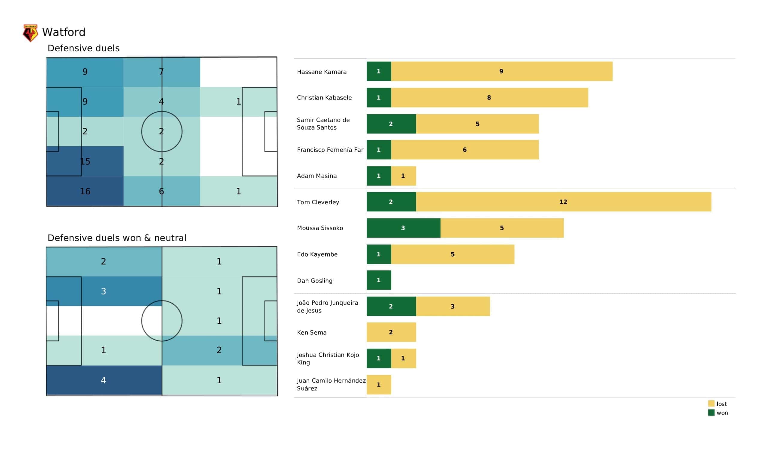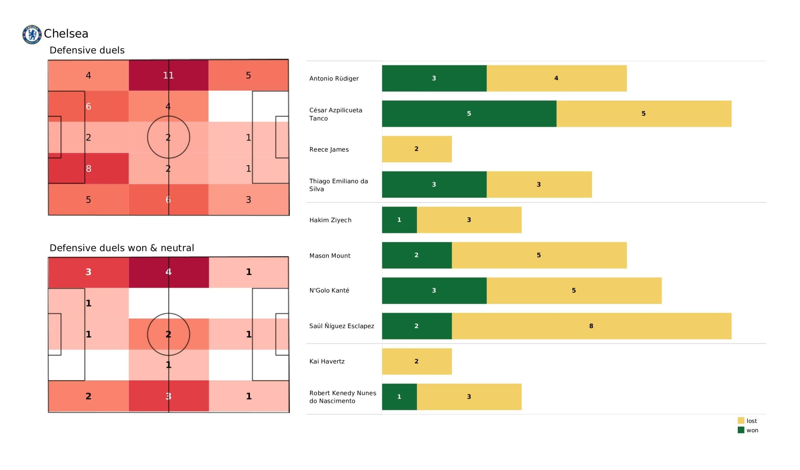 Sunday evening saw <a href="https://totalfootballanalysis.com/match-analysis/premier-league-2021-22-chelsea-vs-leicester-city-data-viz-stats-and-insights">Chelsea </a>beat <a href="https://totalfootballanalysis.com/match-analysis/premier-league-2021-22-watford-vs-leicester-data-viz-stats-and-insights">Watford</a> 2-1 with the help of a late winner by Ross Barkley in the <a href="https://totalfootballanalysis.com/match-analysis/free-download-premier-league-gw8-analytics-reports-data-viz-and-stats">Premier League</a>. We've broken down all the key <a href="https://totalfootballanalysis.com/match-analysis/free-download-premier-league-gw8-analytics-reports-data-viz-and-stats">stats</a> for you to digest in this tactical analysis and provide <a href="https://totalfootballanalysis.com/player-analysis/but-what-does-that-visual-actually-tell-us">insights</a> around; * shot maps and set-pieces * xT (expected threat) * pass networks * xG timelines * defensive duels * average positions and much more! We also try to answer some questions for you with the visuals; Who was Chelsea's biggest threat? Who made the most recoveries in the opposition half? Who had the highest xG in the match? To navigate the stats gallery simply click on the numbers to move through the pages. <em><strong>Don't forget, if you take out a free <a href="https://totalfootballanalysis.com/subscribe">membership</a> to Total Football Analysis, you can receive our weekly Premier League Analytics Pack free of charge which includes all the analytics from every match, team benchmarking tables and player benchmarking tables - well over 150 pages of information after every matchweek is complete!</strong></em> <h2><em>Lineups and average positions</em></h2> <a href="https://totalfootballanalysis.com/wp-content/uploads/2022/05/Chelsea-vs-Watford_page-0002-scaled.jpg"><img class="alignnone size-full wp-image-317933" src="https://totalfootballanalysis.com/wp-content/uploads/2022/05/Chelsea-vs-Watford_page-0002-scaled.jpg" alt="Premier League 2021/22: Chelsea vs Watford - data viz, stats and insights" width="2560" height="1504" /></a> <a href="https://totalfootballanalysis.com/wp-content/uploads/2022/05/Chelsea-vs-Watford_page-0003-scaled.jpg"><img class="alignnone size-full wp-image-317934" src="https://totalfootballanalysis.com/wp-content/uploads/2022/05/Chelsea-vs-Watford_page-0003-scaled.jpg" alt="Premier League 2021/22: Chelsea vs Watford - data viz, stats and insights" width="2560" height="1504" /></a> <a href="https://totalfootballanalysis.com/wp-content/uploads/2022/05/Chelsea-vs-Watford_page-0004-scaled.jpg"><img class="alignnone size-full wp-image-317935" src="https://totalfootballanalysis.com/wp-content/uploads/2022/05/Chelsea-vs-Watford_page-0004-scaled.jpg" alt="Premier League 2021/22: Chelsea vs Watford - data viz, stats and insights" width="2560" height="1504" /></a> <a href="https://totalfootballanalysis.com/wp-content/uploads/2022/05/Chelsea-vs-Watford_page-0005-scaled.jpg"><img class="alignnone size-full wp-image-317936" src="https://totalfootballanalysis.com/wp-content/uploads/2022/05/Chelsea-vs-Watford_page-0005-scaled.jpg" alt="Premier League 2021/22: Chelsea vs Watford - data viz, stats and insights" width="2560" height="1504" /></a><!--nextpage--> <h2><em>Stats and shot maps </em></h2> <a href="https://totalfootballanalysis.com/wp-content/uploads/2022/05/Chelsea-vs-Watford_page-0006-scaled.jpg"><img class="alignnone size-full wp-image-317937" src="https://totalfootballanalysis.com/wp-content/uploads/2022/05/Chelsea-vs-Watford_page-0006-scaled.jpg" alt="Premier League 2021/22: Chelsea vs Watford - data viz, stats and insights" width="2560" height="1504" /></a> <a href="https://totalfootballanalysis.com/wp-content/uploads/2022/05/Chelsea-vs-Watford_page-0007-scaled.jpg"><img class="alignnone size-full wp-image-317938" src="https://totalfootballanalysis.com/wp-content/uploads/2022/05/Chelsea-vs-Watford_page-0007-scaled.jpg" alt="Premier League 2021/22: Chelsea vs Watford - data viz, stats and insights" width="2560" height="1504" /></a> <a href="https://totalfootballanalysis.com/wp-content/uploads/2022/05/Chelsea-vs-Watford_page-0008-scaled.jpg"><img class="alignnone size-full wp-image-317939" src="https://totalfootballanalysis.com/wp-content/uploads/2022/05/Chelsea-vs-Watford_page-0008-scaled.jpg" alt="Premier League 2021/22: Chelsea vs Watford - data viz, stats and insights" width="2560" height="1504" /></a> <a href="https://totalfootballanalysis.com/wp-content/uploads/2022/05/Chelsea-vs-Watford_page-0009-scaled.jpg"><img class="alignnone size-full wp-image-317940" src="https://totalfootballanalysis.com/wp-content/uploads/2022/05/Chelsea-vs-Watford_page-0009-scaled.jpg" alt="Premier League 2021/22: Chelsea vs Watford - data viz, stats and insights" width="2560" height="1504" /></a><!--nextpage--> <h2><em>xT and xG timelines plus pass matrixes</em></h2> <a href="https://totalfootballanalysis.com/wp-content/uploads/2022/05/Chelsea-vs-Watford_page-0010-scaled.jpg"><img class="alignnone size-full wp-image-317941" src="https://totalfootballanalysis.com/wp-content/uploads/2022/05/Chelsea-vs-Watford_page-0010-scaled.jpg" alt="Premier League 2021/22: Chelsea vs Watford - data viz, stats and insights" width="2560" height="1504" /></a> <a href="https://totalfootballanalysis.com/wp-content/uploads/2022/05/Chelsea-vs-Watford_page-0011-scaled.jpg"><img class="alignnone size-full wp-image-317942" src="https://totalfootballanalysis.com/wp-content/uploads/2022/05/Chelsea-vs-Watford_page-0011-scaled.jpg" alt="Premier League 2021/22: Chelsea vs Watford - data viz, stats and insights" width="2560" height="1504" /></a> <a href="https://totalfootballanalysis.com/wp-content/uploads/2022/05/Chelsea-vs-Watford_page-0012-scaled.jpg"><img class="alignnone size-full wp-image-317943" src="https://totalfootballanalysis.com/wp-content/uploads/2022/05/Chelsea-vs-Watford_page-0012-scaled.jpg" alt="Premier League 2021/22: Chelsea vs Watford - data viz, s