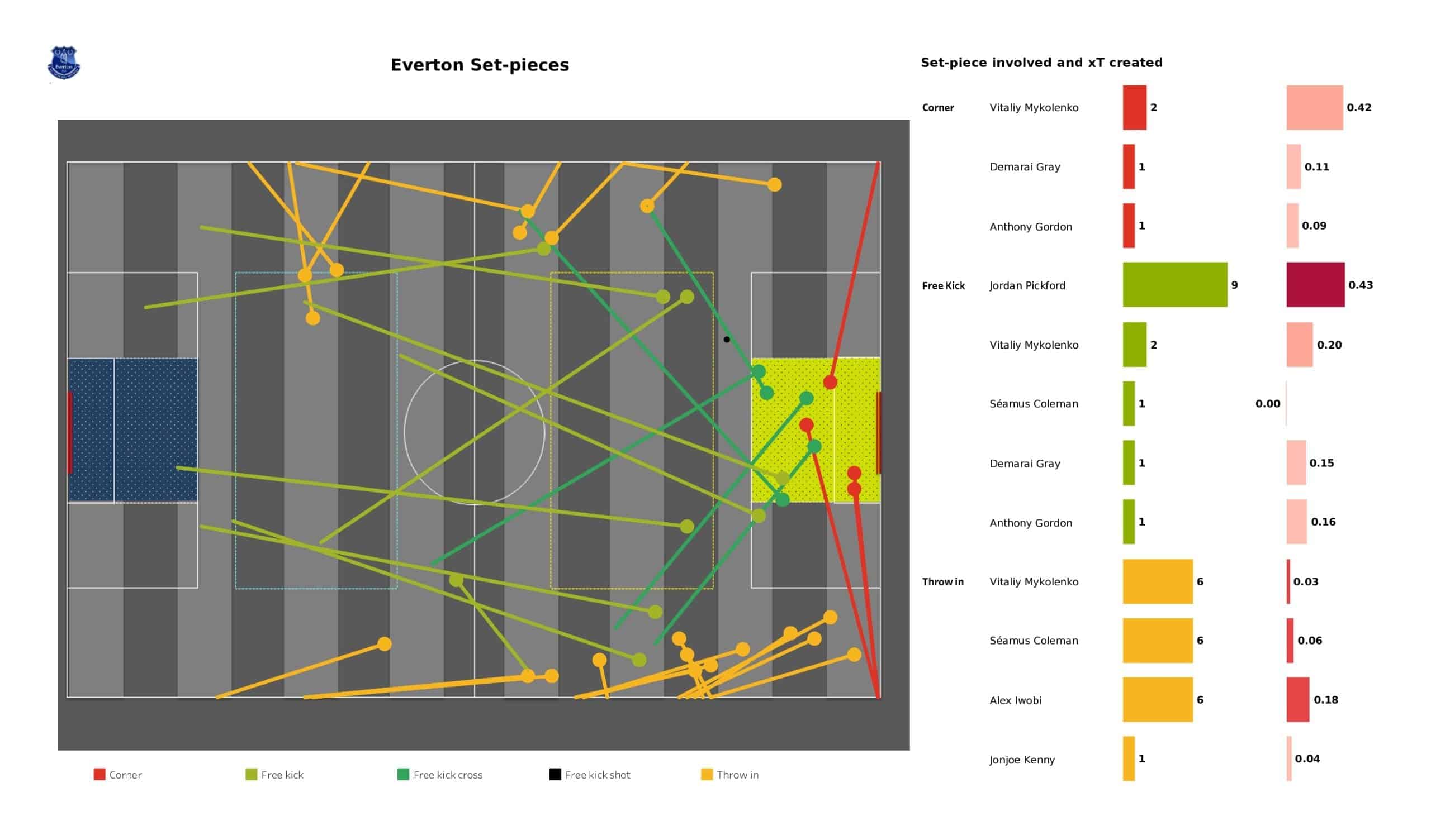 Thursday night saw <a href="https://totalfootballanalysis.com/match-analysis/premier-league-2021-22-leicester-city-vs-everton-data-viz-stats-and-insights">Everton</a> ensure safety from relegation by beating <a href="https://totalfootballanalysis.com/match-analysis/premier-league-2021-22-aston-villa-vs-crystal-palace-data-viz-stats-and-insights">Crystal Palace</a> 3-2 in the <a href="https://totalfootballanalysis.com/match-analysis/free-download-premier-league-gw8-analytics-reports-data-viz-and-stats">Premier League</a>. We've broken down all the key <a href="https://totalfootballanalysis.com/match-analysis/free-download-premier-league-gw8-analytics-reports-data-viz-and-stats">stats</a> for you to digest in this tactical analysis and provide <a href="https://totalfootballanalysis.com/player-analysis/but-what-does-that-visual-actually-tell-us">insights</a> around; * shot maps and set-pieces * xT (expected threat) * pass networks * xG timelines * defensive duels * average positions and much more! We also try to answer some questions for you with the visuals; Who was Everton's biggest threat? Who made the most recoveries in the opposition half? Who had the highest xG in the match? To navigate the stats gallery simply click on the numbers to move through the pages. <em><strong>Don't forget, if you take out a free <a href="https://totalfootballanalysis.com/subscribe">membership</a> to Total Football Analysis, you can receive our weekly Premier League Analytics Pack free of charge which includes all the analytics from every match, team benchmarking tables and player benchmarking tables - well over 150 pages of information after every matchweek is complete!</strong></em> <h2><em>Lineups and average positions</em></h2> <a href="https://totalfootballanalysis.com/wp-content/uploads/2022/05/Everton-vs-Crystal-Palace_page-0002-scaled.jpg"><img class="aligncenter size-large wp-image-317408" src="https://totalfootballanalysis.com/wp-content/uploads/2022/05/Everton-vs-Crystal-Palace_page-0002-1024x602.jpg" alt="Premier League 2021/22: Everton vs Crystal Palace - data viz, stats and insights" width="640" height="376" /></a> <a href="https://totalfootballanalysis.com/wp-content/uploads/2022/05/Everton-vs-Crystal-Palace_page-0003-scaled.jpg"><img class="aligncenter size-large wp-image-317409" src="https://totalfootballanalysis.com/wp-content/uploads/2022/05/Everton-vs-Crystal-Palace_page-0003-1024x602.jpg" alt="Premier League 2021/22: Everton vs Crystal Palace - data viz, stats and insights" width="640" height="376" /></a> <a href="https://totalfootballanalysis.com/wp-content/uploads/2022/05/Everton-vs-Crystal-Palace_page-0004-scaled.jpg"><img class="aligncenter size-large wp-image-317410" src="https://totalfootballanalysis.com/wp-content/uploads/2022/05/Everton-vs-Crystal-Palace_page-0004-1024x602.jpg" alt="Premier League 2021/22: Everton vs Crystal Palace - data viz, stats and insights" width="640" height="376" /></a> <a href="https://totalfootballanalysis.com/wp-content/uploads/2022/05/Everton-vs-Crystal-Palace_page-0005-scaled.jpg"><img class="aligncenter size-large wp-image-317411" src="https://totalfootballanalysis.com/wp-content/uploads/2022/05/Everton-vs-Crystal-Palace_page-0005-1024x602.jpg" alt="Premier League 2021/22: Everton vs Crystal Palace - data viz, stats and insights" width="640" height="376" /></a><!--nextpage--> <h2><em>Stats and shot maps </em></h2> <a href="https://totalfootballanalysis.com/wp-content/uploads/2022/05/Everton-vs-Crystal-Palace_page-0007-scaled.jpg"><img class="aligncenter size-large wp-image-317413" src="https://totalfootballanalysis.com/wp-content/uploads/2022/05/Everton-vs-Crystal-Palace_page-0007-1024x602.jpg" alt="Premier League 2021/22: Everton vs Crystal Palace - data viz, stats and insights" width="640" height="376" /></a> <a href="https://totalfootballanalysis.com/wp-content/uploads/2022/05/Everton-vs-Crystal-Palace_page-0008-scaled.jpg"><img class="aligncenter size-large wp-image-317414" src="https://totalfootballanalysis.com/wp-content/uploads/2022/05/Everton-vs-Crystal-Palace_page-0008-1024x602.jpg" alt="Premier League 2021/22: Everton vs Crystal Palace - data viz, stats and insights" width="640" height="376" /></a> <a href="https://totalfootballanalysis.com/wp-content/uploads/2022/05/Everton-vs-Crystal-Palace_page-0009-scaled.jpg"><img class="aligncenter size-large wp-image-317415" src="https://totalfootballanalysis.com/wp-content/uploads/2022/05/Everton-vs-Crystal-Palace_page-0009-1024x602.jpg" alt="Premier League 2021/22: Everton vs Crystal Palace - data viz, stats and insights" width="640" height="376" /></a> <a href="https://totalfootballanalysis.com/wp-content/uploads/2022/05/Everton-vs-Crystal-Palace_page-0006-scaled.jpg"><img class="aligncenter size-large wp-image-317412" src="https://totalfootballanalysis.com/wp-content/uploads/2022/05/Everton-vs-Crystal-Palace_page-0006-1024x602.jpg" alt="Premier League 2021/22: Everton vs Crystal Palace - data viz, stats and insights" width="640" height="376" /></a><!--nextpage--> <h2><em>xT and xG timelines plus pass matrixes</em></h2> <a href="https://totalfootballanalysis.com/wp-content/uploads/2022/05/Everton-vs-Crystal-Palace_page-0010-scaled.jpg"><img class="aligncenter size-large wp-image-317416" src="https://totalfootballanalysis.com/wp-content/uploads/2022/05/Everton-vs-Crystal-Palace_page-0010-1024x602.jpg" alt="Premier League 2021/22: Everton vs Crystal Palace - data viz, stats and insights" width="640" height="376" /></a> <a href="https://totalfootballanalysis.com/wp-content/uploads/2022/05/Everton-vs-Crystal-Palace_page-0011-scaled.jpg"><img class="aligncenter size-large wp-image-317417" src="https://totalfootballanalysis.com/wp-content/uploads/2022/05/Everton-vs-Crystal-Palace_page-0011-1024x602.jpg" alt="Premier League 2021/22: Everton vs Crystal Palace - data viz, stats and insights" width="640" height="376" /></a> <a href="https://totalfootballanalysis.com/wp-content/uploads/2022/05/Everton-vs-Cr