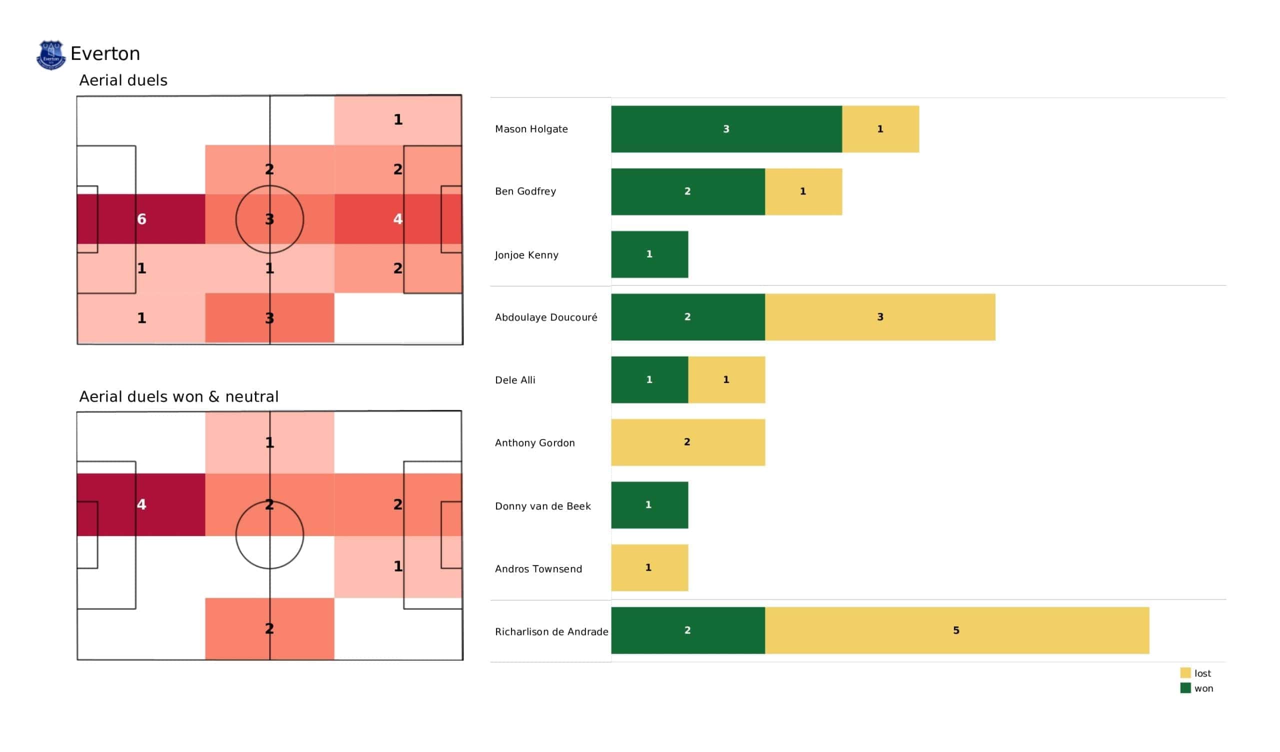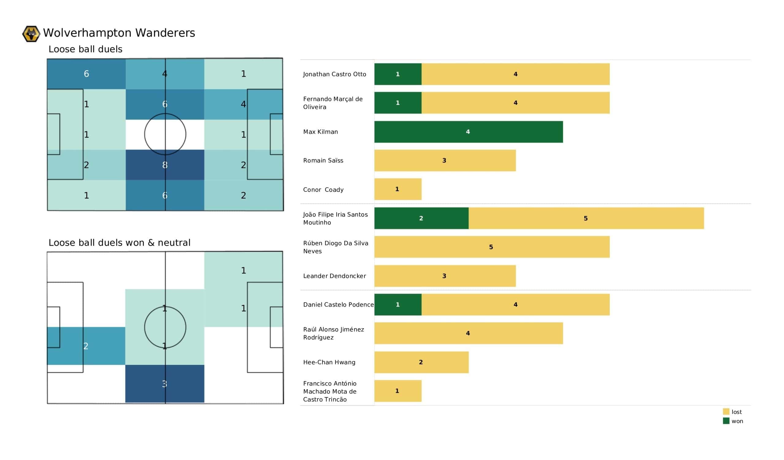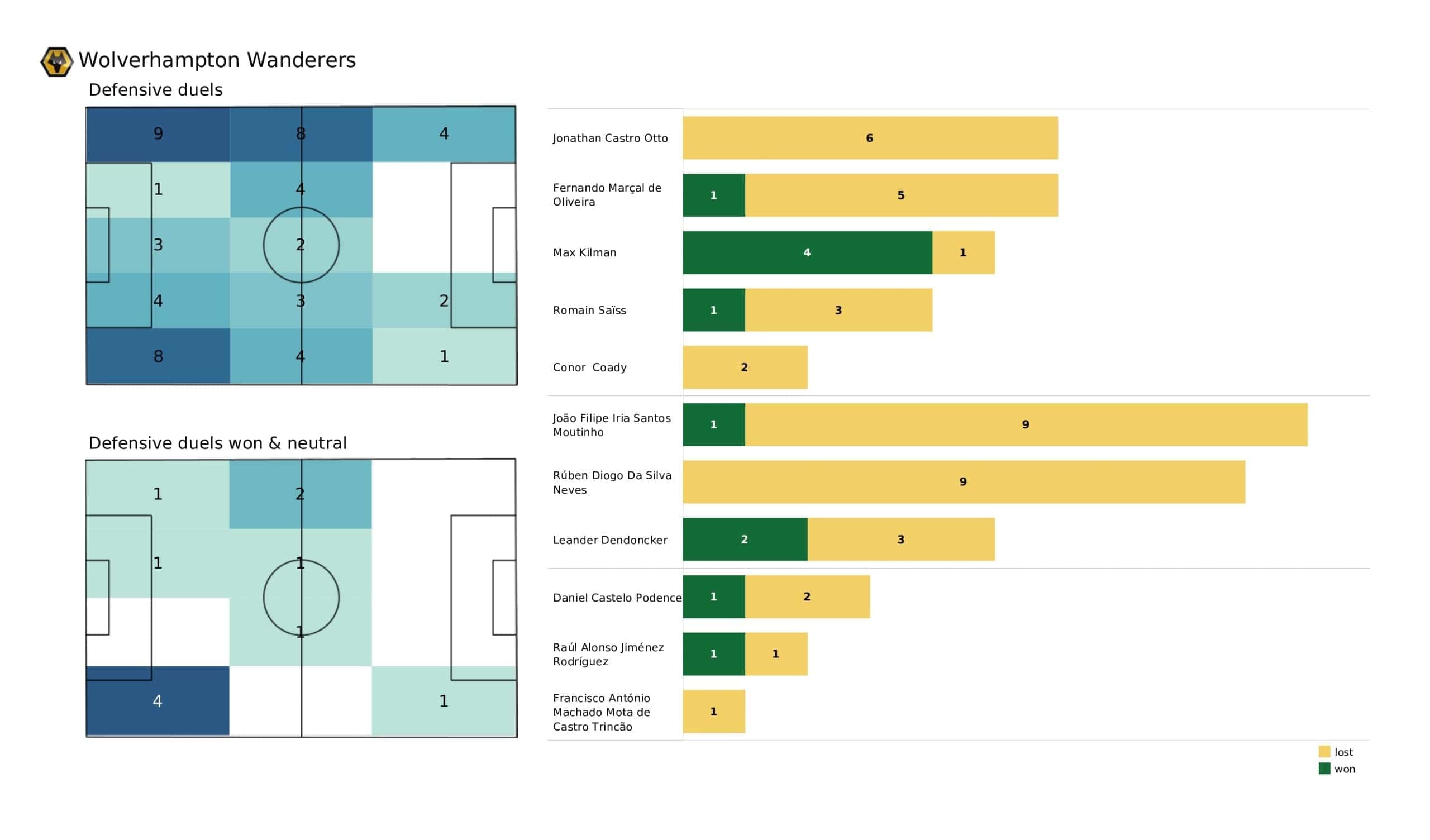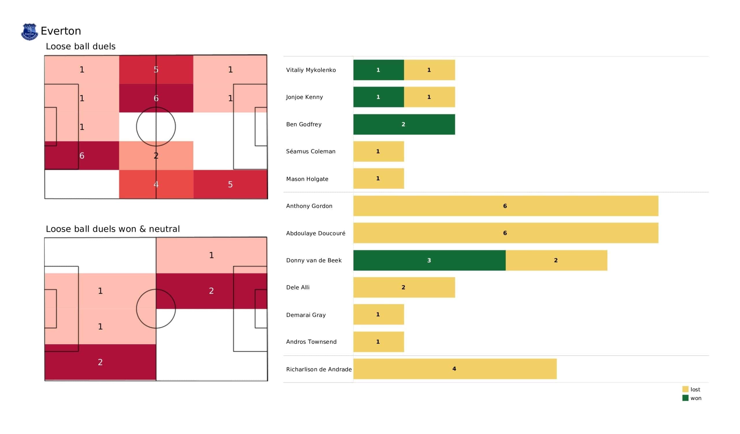 Sunday lunchtime saw <a href="https://totalfootballanalysis.com/match-analysis/premier-league-2021-22-tottenham-vs-everton-data-viz-stats-and-insights">Everton</a> welcome <a href="https://totalfootballanalysis.com/match-analysis/premier-league-2021-22-wolves-vs-watford-data-viz-stats-and-insights">Wolves </a>in the <a href="https://totalfootballanalysis.com/match-analysis/free-download-premier-league-gw8-analytics-reports-data-viz-and-stats">Premier League</a>. We've broken down all the key <a href="https://totalfootballanalysis.com/match-analysis/free-download-premier-league-gw8-analytics-reports-data-viz-and-stats">stats</a> for you to digest in this tactical analysis and provide <a href="https://totalfootballanalysis.com/player-analysis/but-what-does-that-visual-actually-tell-us">insights</a> around; * shot maps and set-pieces * xT (expected threat) * pass networks * xG timelines * defensive duels * average positions and much more! We also try to answer some questions for you with the visuals; Who was Wolves' biggest threat? Who made the most recoveries in the opposition half? Who had the highest xG in the match? To navigate the stats gallery simply click on the numbers to move through the pages. <em><strong>Don't forget, if you take out a free <a href="https://totalfootballanalysis.com/subscribe">membership</a> to Total Football Analysis, you can receive our weekly Premier League Analytics Pack free of charge which includes all the analytics from every match, team benchmarking tables and player benchmarking tables - well over 150 pages of information after every matchweek is complete!</strong></em> <h2><em>Lineups and average positions</em></h2> <a href="https://totalfootballanalysis.com/wp-content/uploads/2022/03/Everton-Vs-Wolverhampton-Wanderers_page-0002-scaled.jpg"><img class="alignnone size-full wp-image-302523" src="https://totalfootballanalysis.com/wp-content/uploads/2022/03/Everton-Vs-Wolverhampton-Wanderers_page-0002-scaled.jpg" alt="" width="2560" height="1504" /></a> <a href="https://totalfootballanalysis.com/wp-content/uploads/2022/03/Everton-Vs-Wolverhampton-Wanderers_page-0003-scaled.jpg"><img class="alignnone size-full wp-image-302524" src="https://totalfootballanalysis.com/wp-content/uploads/2022/03/Everton-Vs-Wolverhampton-Wanderers_page-0003-scaled.jpg" alt="" width="2560" height="1504" /></a> <a href="https://totalfootballanalysis.com/wp-content/uploads/2022/03/Everton-Vs-Wolverhampton-Wanderers_page-0004-scaled.jpg"><img class="alignnone size-full wp-image-302525" src="https://totalfootballanalysis.com/wp-content/uploads/2022/03/Everton-Vs-Wolverhampton-Wanderers_page-0004-scaled.jpg" alt="" width="2560" height="1504" /></a> <a href="https://totalfootballanalysis.com/wp-content/uploads/2022/03/Everton-Vs-Wolverhampton-Wanderers_page-0005-scaled.jpg"><img class="alignnone size-full wp-image-302526" src="https://totalfootballanalysis.com/wp-content/uploads/2022/03/Everton-Vs-Wolverhampton-Wanderers_page-0005-scaled.jpg" alt="Premier League 2021/22: Everton Vs Wolverhampton Wanderers - data viz, stats and insights" width="2560" height="1504" /></a><!--nextpage--> <h2><em>Stats and shot maps </em></h2> <a href="https://totalfootballanalysis.com/wp-content/uploads/2022/03/Everton-Vs-Wolverhampton-Wanderers_page-0006-scaled.jpg"><img class="alignnone size-full wp-image-302527" src="https://totalfootballanalysis.com/wp-content/uploads/2022/03/Everton-Vs-Wolverhampton-Wanderers_page-0006-scaled.jpg" alt="" width="2560" height="1504" /></a> <a href="https://totalfootballanalysis.com/wp-content/uploads/2022/03/Everton-Vs-Wolverhampton-Wanderers_page-0007-scaled.jpg"><img class="alignnone size-full wp-image-302528" src="https://totalfootballanalysis.com/wp-content/uploads/2022/03/Everton-Vs-Wolverhampton-Wanderers_page-0007-scaled.jpg" alt="" width="2560" height="1504" /></a> <a href="https://totalfootballanalysis.com/wp-content/uploads/2022/03/Everton-Vs-Wolverhampton-Wanderers_page-0008-scaled.jpg"><img class="alignnone size-full wp-image-302529" src="https://totalfootballanalysis.com/wp-content/uploads/2022/03/Everton-Vs-Wolverhampton-Wanderers_page-0008-scaled.jpg" alt="" width="2560" height="1504" /></a> <a href="https://totalfootballanalysis.com/wp-content/uploads/2022/03/Everton-Vs-Wolverhampton-Wanderers_page-0009-scaled.jpg"><img class="alignnone size-full wp-image-302530" src="https://totalfootballanalysis.com/wp-content/uploads/2022/03/Everton-Vs-Wolverhampton-Wanderers_page-0009-scaled.jpg" alt="Premier League 2021/22: Everton Vs Wolverhampton Wanderers - data viz, stats and insights" width="2560" height="1504" /></a><!--nextpage--> <h2><em>xT and xG timelines plus pass matrixes</em></h2> <a href="https://totalfootballanalysis.com/wp-content/uploads/2022/03/Everton-Vs-Wolverhampton-Wanderers_page-0010-scaled.jpg"><img class="alignnone size-full wp-image-302531" src="https://totalfootballanalysis.com/wp-content/uploads/2022/03/Everton-Vs-Wolverhampton-Wanderers_page-0010-scaled.jpg" alt="" width="2560" height="1504" /></a> <a href="https://totalfootballanalysis.com/wp-content/uploads/2022/03/Everton-Vs-Wolverhampton-Wanderers_page-0011-scaled.jpg"><img class="alignnone size-full wp-image-302532" src="https://totalfootballanalysis.com/wp-content/uploads/2022/03/Everton-Vs-Wolverhampton-Wanderers_page-0011-scaled.jpg" alt="" width="2560" height="1504" /></a> <a href="https://totalfootballanalysis.com/wp-content/uploads/2022/03/Everton-Vs-Wolverhampton-Wanderers_page-0012-scaled.jpg"><img class="alignnone size-full wp-image-302533" src="https://totalfootballanalysis.com/wp-content/uploads/2022/03/Everton-Vs-Wolverhampton-Wanderers_page-0012-scaled.jpg" alt="Premier League 2021/22: Everton Vs Wolverhampton Wanderers - data viz, stats and insights" width="2560" height="1504" /></a><!--nextpage--> <h2><em>Smart passes, crosses and xT creation zones</em></h2> <a href="https://totalfootballanalysis.com/wp-content/uploads/2022/03/Everton-Vs-Wolverhampton-Wanderers_page-0