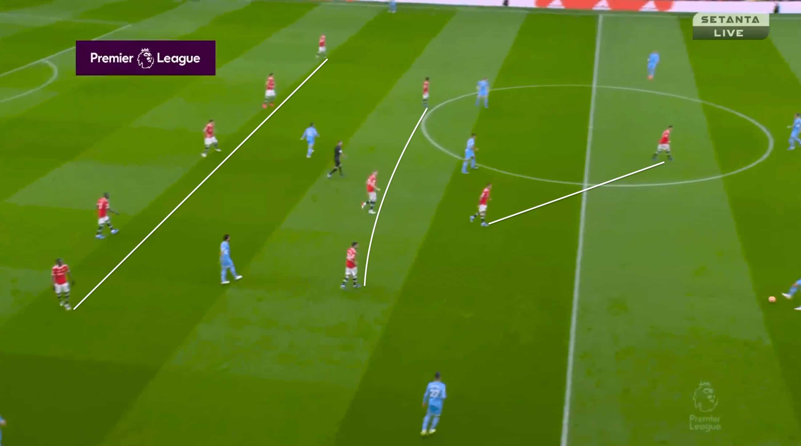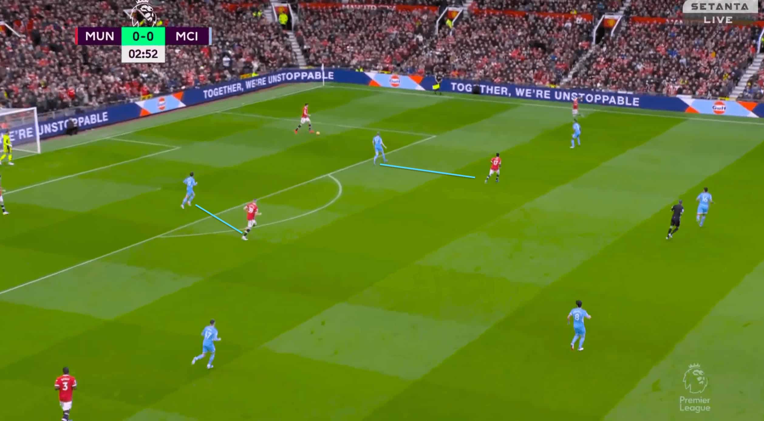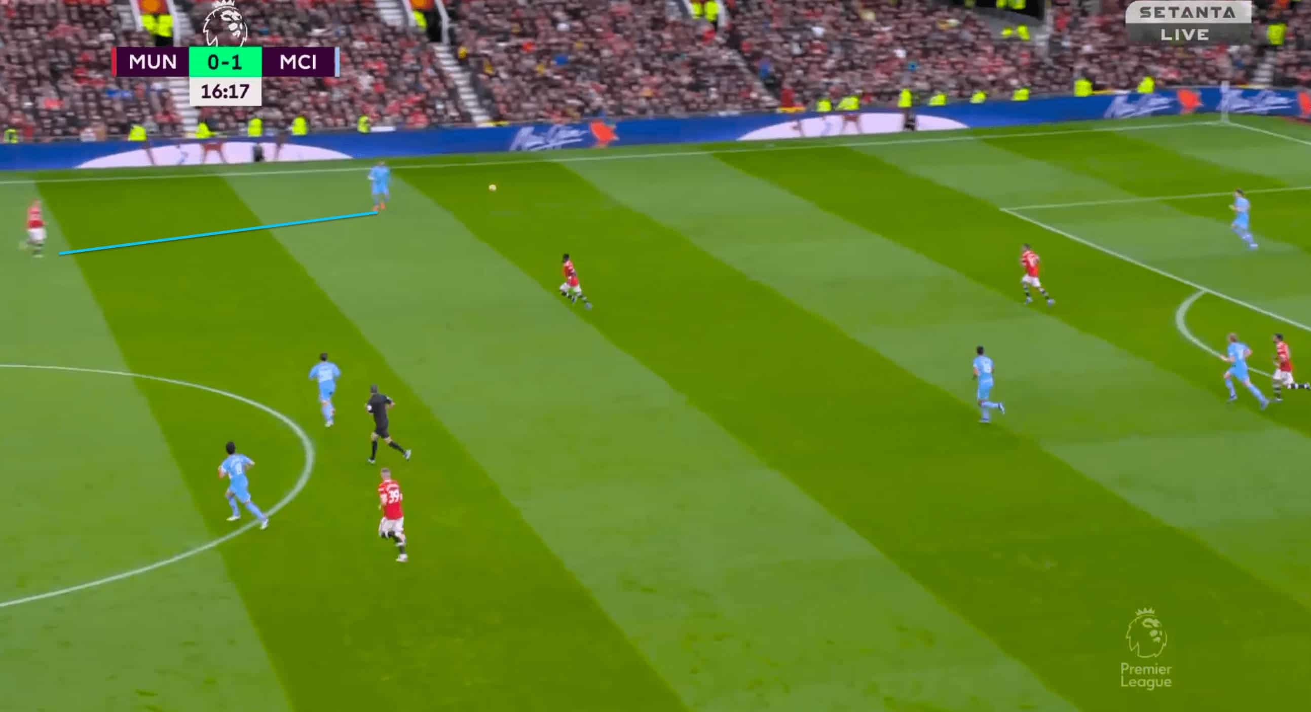 Having to chase from behind, the United players resorted to intense press and now the wing-backs pressed the City full-backs.
