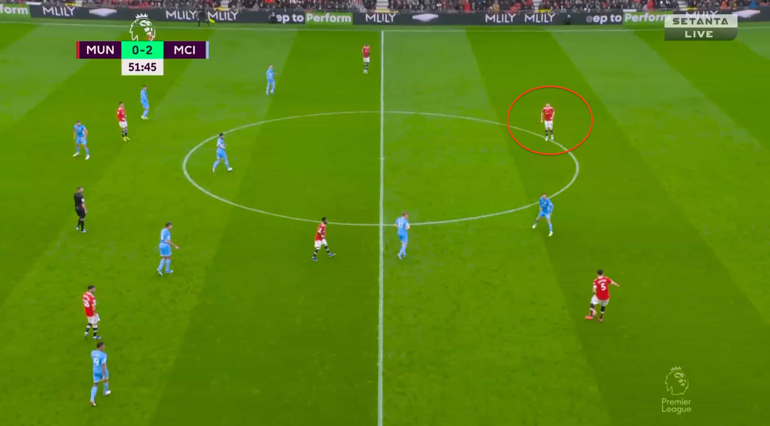 This means that United have to shift wide with their midfielders and Mctominay is now dragged towards the wide regions as a result.