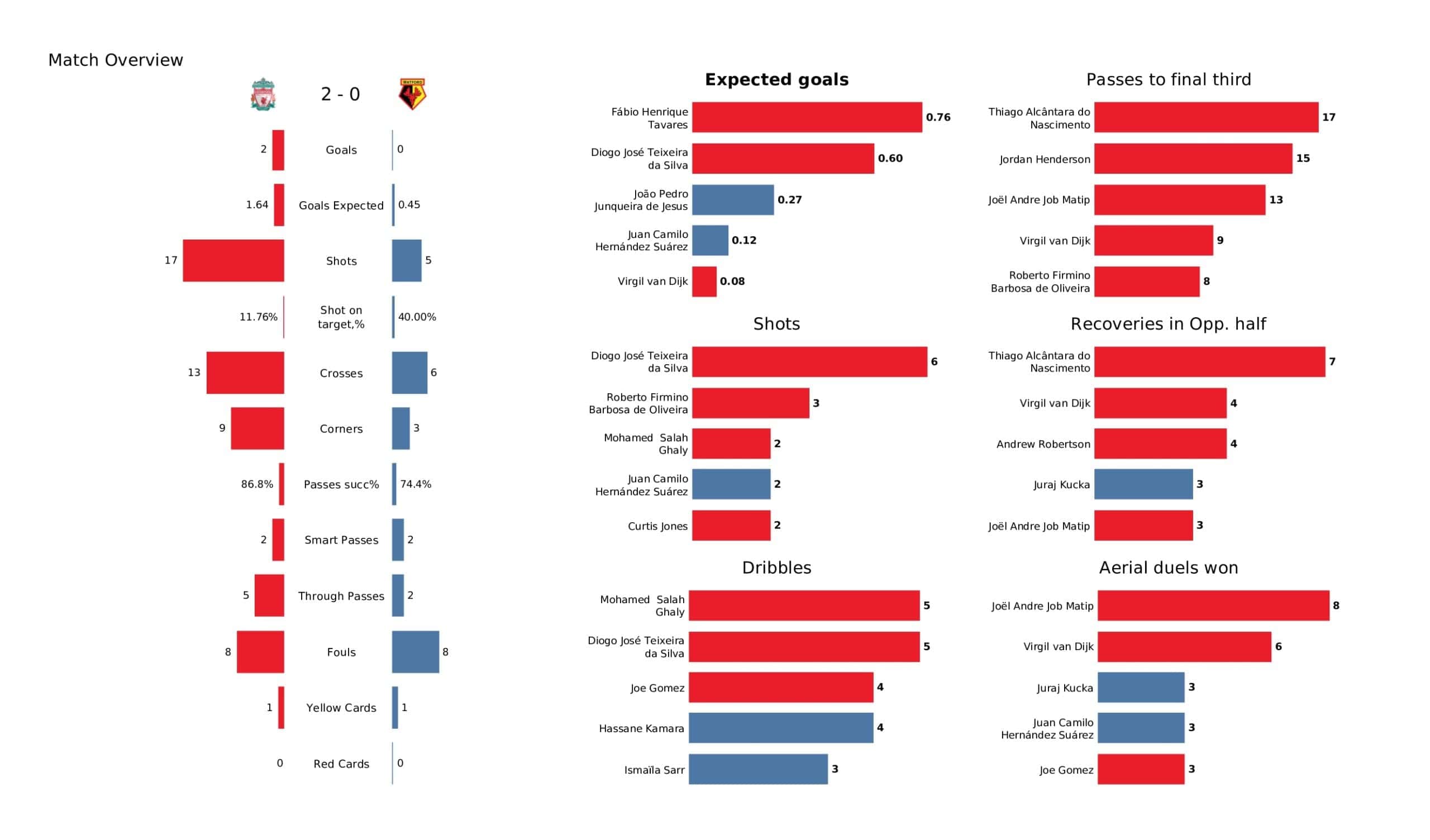 Saturday lunchtime saw <a href="https://totalfootballanalysis.com/match-analysis/premier-league-2021-22-arsenal-vs-liverpool-tactical-analysis-tactics">Liverpool</a> welcome <a href="https://totalfootballanalysis.com/match-analysis/premier-league-2021-22-southampton-vs-watford-data-viz-stats-and-insights">Watford</a> in the <a href="https://totalfootballanalysis.com/match-analysis/free-download-premier-league-gw8-analytics-reports-data-viz-and-stats">Premier League</a>. We've broken down all the key <a href="https://totalfootballanalysis.com/match-analysis/free-download-premier-league-gw8-analytics-reports-data-viz-and-stats">stats</a> for you to digest in this tactical analysis and provide <a href="https://totalfootballanalysis.com/player-analysis/but-what-does-that-visual-actually-tell-us">insights</a> around; * shot maps and set-pieces * xT (expected threat) * pass networks * xG timelines * defensive duels * average positions and much more! We also try to answer some questions for you with the visuals; Who was Liverpool's biggest threat? Who made the most recoveries in the opposition half? Who had the highest xG in the match? To navigate the stats gallery simply click on the numbers to move through the pages. <em><strong>Don't forget, if you take out a free <a href="https://totalfootballanalysis.com/subscribe">membership</a> to Total Football Analysis, you can receive our weekly Premier League Analytics Pack free of charge which includes all the analytics from every match, team benchmarking tables and player benchmarking tables - well over 150 pages of information after every matchweek is complete!</strong></em> <h2><em>Lineups and average positions</em></h2> <a href="https://totalfootballanalysis.com/wp-content/uploads/2022/04/Liverpool-vs-Watford_page-0002-scaled.jpg"><img class="alignnone size-full wp-image-306519" src="https://totalfootballanalysis.com/wp-content/uploads/2022/04/Liverpool-vs-Watford_page-0002-scaled.jpg" alt="Premier League 2021/22: Liverpool vs Watford - data viz, stats and insights" width="2560" height="1504" /></a> <a href="https://totalfootballanalysis.com/wp-content/uploads/2022/04/Liverpool-vs-Watford_page-0003-scaled.jpg"><img class="alignnone size-full wp-image-306520" src="https://totalfootballanalysis.com/wp-content/uploads/2022/04/Liverpool-vs-Watford_page-0003-scaled.jpg" alt="Premier League 2021/22: Liverpool vs Watford - data viz, stats and insights" width="2560" height="1504" /></a> <a href="https://totalfootballanalysis.com/wp-content/uploads/2022/04/Liverpool-vs-Watford_page-0004-scaled.jpg"><img class="alignnone size-full wp-image-306521" src="https://totalfootballanalysis.com/wp-content/uploads/2022/04/Liverpool-vs-Watford_page-0004-scaled.jpg" alt="Premier League 2021/22: Liverpool vs Watford - data viz, stats and insights" width="2560" height="1504" /></a> <a href="https://totalfootballanalysis.com/wp-content/uploads/2022/04/Liverpool-vs-Watford_page-0005-scaled.jpg"><img class="alignnone size-full wp-image-306522" src="https://totalfootballanalysis.com/wp-content/uploads/2022/04/Liverpool-vs-Watford_page-0005-scaled.jpg" alt="Premier League 2021/22: Liverpool vs Watford - data viz, stats and insights" width="2560" height="1504" /></a><!--nextpage--> <h2><em>Stats and shot maps </em></h2> <a href="https://totalfootballanalysis.com/wp-content/uploads/2022/04/Liverpool-vs-Watford_page-0006-scaled.jpg"><img class="alignnone size-full wp-image-306523" src="https://totalfootballanalysis.com/wp-content/uploads/2022/04/Liverpool-vs-Watford_page-0006-scaled.jpg" alt="Premier League 2021/22: Liverpool vs Watford - data viz, stats and insights" width="2560" height="1504" /></a> <a href="https://totalfootballanalysis.com/wp-content/uploads/2022/04/Liverpool-vs-Watford_page-0007-scaled.jpg"><img class="alignnone size-full wp-image-306524" src="https://totalfootballanalysis.com/wp-content/uploads/2022/04/Liverpool-vs-Watford_page-0007-scaled.jpg" alt="Premier League 2021/22: Liverpool vs Watford - data viz, stats and insights" width="2560" height="1504" /></a> <a href="https://totalfootballanalysis.com/wp-content/uploads/2022/04/Liverpool-vs-Watford_page-0008-scaled.jpg"><img class="alignnone size-full wp-image-306525" src="https://totalfootballanalysis.com/wp-content/uploads/2022/04/Liverpool-vs-Watford_page-0008-scaled.jpg" alt="Premier League 2021/22: Liverpool vs Watford - data viz, stats and insights" width="2560" height="1504" /></a> <a href="https://totalfootballanalysis.com/wp-content/uploads/2022/04/Liverpool-vs-Watford_page-0009-scaled.jpg"><img class="alignnone size-full wp-image-306526" src="https://totalfootballanalysis.com/wp-content/uploads/2022/04/Liverpool-vs-Watford_page-0009-scaled.jpg" alt="Premier League 2021/22: Liverpool vs Watford - data viz, stats and insights" width="2560" height="1504" /></a><!--nextpage--> <h2><em>xT and xG timelines plus pass matrixes</em></h2> <a href="https://totalfootballanalysis.com/wp-content/uploads/2022/04/Liverpool-vs-Watford_page-0010-scaled.jpg"><img class="alignnone size-full wp-image-306527" src="https://totalfootballanalysis.com/wp-content/uploads/2022/04/Liverpool-vs-Watford_page-0010-scaled.jpg" alt="Premier League 2021/22: Liverpool vs Watford - data viz, stats and insights" width="2560" height="1504" /></a> <a href="https://totalfootballanalysis.com/wp-content/uploads/2022/04/Liverpool-vs-Watford_page-0011-scaled.jpg"><img class="alignnone size-full wp-image-306528" src="https://totalfootballanalysis.com/wp-content/uploads/2022/04/Liverpool-vs-Watford_page-0011-scaled.jpg" alt="Premier League 2021/22: Liverpool vs Watford - data viz, stats and insights" width="2560" height="1504" /></a> <a href="https://totalfootballanalysis.com/wp-content/uploads/2022/04/Liverpool-vs-Watford_page-0012-scaled.jpg"><img class="alignnone size-full wp-image-306529" src="https://totalfootballanalysis.com/wp-content/uploads/2022/04/Liverpool-vs-Watford_page-0012-scaled.jpg" alt="Premier League 2021/22: Liverpool vs 