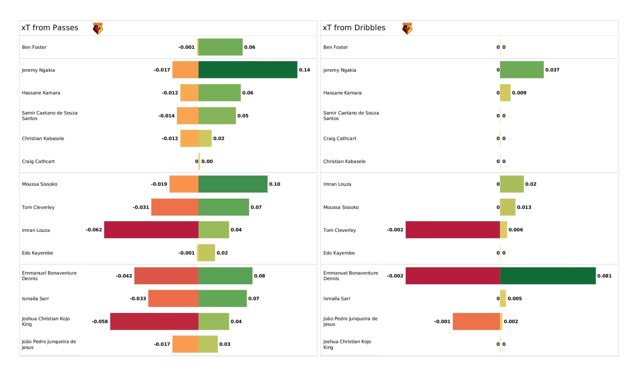 Saturday afternoon saw <a href="https://totalfootballanalysis.com/match-analysis/premier-league-2021-22-manchester-city-vs-brighton-data-viz-stats-and-insights">Manchester City</a> welcome <a href="https://totalfootballanalysis.com/match-analysis/premier-league-2021-22-watford-vs-brentford-data-viz-stats-and-insights">Watford</a> in the <a href="https://totalfootballanalysis.com/match-analysis/free-download-premier-league-gw8-analytics-reports-data-viz-and-stats">Premier League</a>. We've broken down all the key <a href="https://totalfootballanalysis.com/match-analysis/free-download-premier-league-gw8-analytics-reports-data-viz-and-stats">stats</a> for you to digest in this tactical analysis and provide <a href="https://totalfootballanalysis.com/player-analysis/but-what-does-that-visual-actually-tell-us">insights</a> around; * shot maps and set-pieces * xT (expected threat) * pass networks * xG timelines * defensive duels * average positions and much more! We also try to answer some questions for you with the visuals; Who was Manchester City's biggest threat? Who made the most recoveries in the opposition half? Who had the highest xG in the match? To navigate the stats gallery simply click on the numbers to move through the pages. <em><strong>Don't forget, if you take out a free <a href="https://totalfootballanalysis.com/subscribe">membership</a> to Total Football Analysis, you can receive our weekly Premier League Analytics Pack free of charge which includes all the analytics from every match, team benchmarking tables and player benchmarking tables - well over 150 pages of information after every matchweek is complete!</strong></em> <h2><em>Lineups and average positions</em></h2> <a href="https://totalfootballanalysis.com/wp-content/uploads/2022/04/Manchester-City-vs-Watford_page-0002-scaled.jpg"><img class="alignnone size-full wp-image-312041" src="https://totalfootballanalysis.com/wp-content/uploads/2022/04/Manchester-City-vs-Watford_page-0002-scaled.jpg" alt="Premier League 2021/22: Manchester City vs Watford - data viz, stats and insights" width="2560" height="1504" /></a> <a href="https://totalfootballanalysis.com/wp-content/uploads/2022/04/Manchester-City-vs-Watford_page-0003-scaled.jpg"><img class="alignnone size-full wp-image-312042" src="https://totalfootballanalysis.com/wp-content/uploads/2022/04/Manchester-City-vs-Watford_page-0003-scaled.jpg" alt="Premier League 2021/22: Manchester City vs Watford - data viz, stats and insights" width="2560" height="1504" /></a> <a href="https://totalfootballanalysis.com/wp-content/uploads/2022/04/Manchester-City-vs-Watford_page-0004-scaled.jpg"><img class="alignnone size-full wp-image-312043" src="https://totalfootballanalysis.com/wp-content/uploads/2022/04/Manchester-City-vs-Watford_page-0004-scaled.jpg" alt="Premier League 2021/22: Manchester City vs Watford - data viz, stats and insights" width="2560" height="1504" /></a> <a href="https://totalfootballanalysis.com/wp-content/uploads/2022/04/Manchester-City-vs-Watford_page-0005-scaled.jpg"><img class="alignnone size-full wp-image-312044" src="https://totalfootballanalysis.com/wp-content/uploads/2022/04/Manchester-City-vs-Watford_page-0005-scaled.jpg" alt="Premier League 2021/22: Manchester City vs Watford - data viz, stats and insights" width="2560" height="1504" /></a><!--nextpage--> <h2><em>Stats and shot maps </em></h2> <a href="https://totalfootballanalysis.com/wp-content/uploads/2022/04/Manchester-City-vs-Watford_page-0006-scaled.jpg"><img class="alignnone size-full wp-image-312045" src="https://totalfootballanalysis.com/wp-content/uploads/2022/04/Manchester-City-vs-Watford_page-0006-scaled.jpg" alt="Premier League 2021/22: Manchester City vs Watford - data viz, stats and insights" width="2560" height="1504" /></a> <a href="https://totalfootballanalysis.com/wp-content/uploads/2022/04/Manchester-City-vs-Watford_page-0007-scaled.jpg"><img class="alignnone size-full wp-image-312046" src="https://totalfootballanalysis.com/wp-content/uploads/2022/04/Manchester-City-vs-Watford_page-0007-scaled.jpg" alt="Premier League 2021/22: Manchester City vs Watford - data viz, stats and insights" width="2560" height="1504" /></a> <a href="https://totalfootballanalysis.com/wp-content/uploads/2022/04/Manchester-City-vs-Watford_page-0008-scaled.jpg"><img class="alignnone size-full wp-image-312047" src="https://totalfootballanalysis.com/wp-content/uploads/2022/04/Manchester-City-vs-Watford_page-0008-scaled.jpg" alt="Premier League 2021/22: Manchester City vs Watford - data viz, stats and insights" width="2560" height="1504" /></a> <a href="https://totalfootballanalysis.com/wp-content/uploads/2022/04/Manchester-City-vs-Watford_page-0009-scaled.jpg"><img class="alignnone size-full wp-image-312048" src="https://totalfootballanalysis.com/wp-content/uploads/2022/04/Manchester-City-vs-Watford_page-0009-scaled.jpg" alt="Premier League 2021/22: Manchester City vs Watford - data viz, stats and insights" width="2560" height="1504" /></a><!--nextpage--> <h2><em>xT and xG timelines plus pass matrixes</em></h2> <a href="https://totalfootballanalysis.com/wp-content/uploads/2022/04/Manchester-City-vs-Watford_page-0010-scaled.jpg"><img class="alignnone size-full wp-image-312049" src="https://totalfootballanalysis.com/wp-content/uploads/2022/04/Manchester-City-vs-Watford_page-0010-scaled.jpg" alt="Premier League 2021/22: Manchester City vs Watford - data viz, stats and insights" width="2560" height="1504" /></a> <a href="https://totalfootballanalysis.com/wp-content/uploads/2022/04/Manchester-City-vs-Watford_page-0011-scaled.jpg"><img class="alignnone size-full wp-image-312051" src="https://totalfootballanalysis.com/wp-content/uploads/2022/04/Manchester-City-vs-Watford_page-0011-scaled.jpg" alt="Premier League 2021/22: Manchester City vs Watford - data viz, stats and insights" width="2560" height="1504" /></a> <a href="https://totalfootballanalysis.com/wp-content/uploads/2022/04/Manchester-City-vs-Watford_page-0012-scaled.