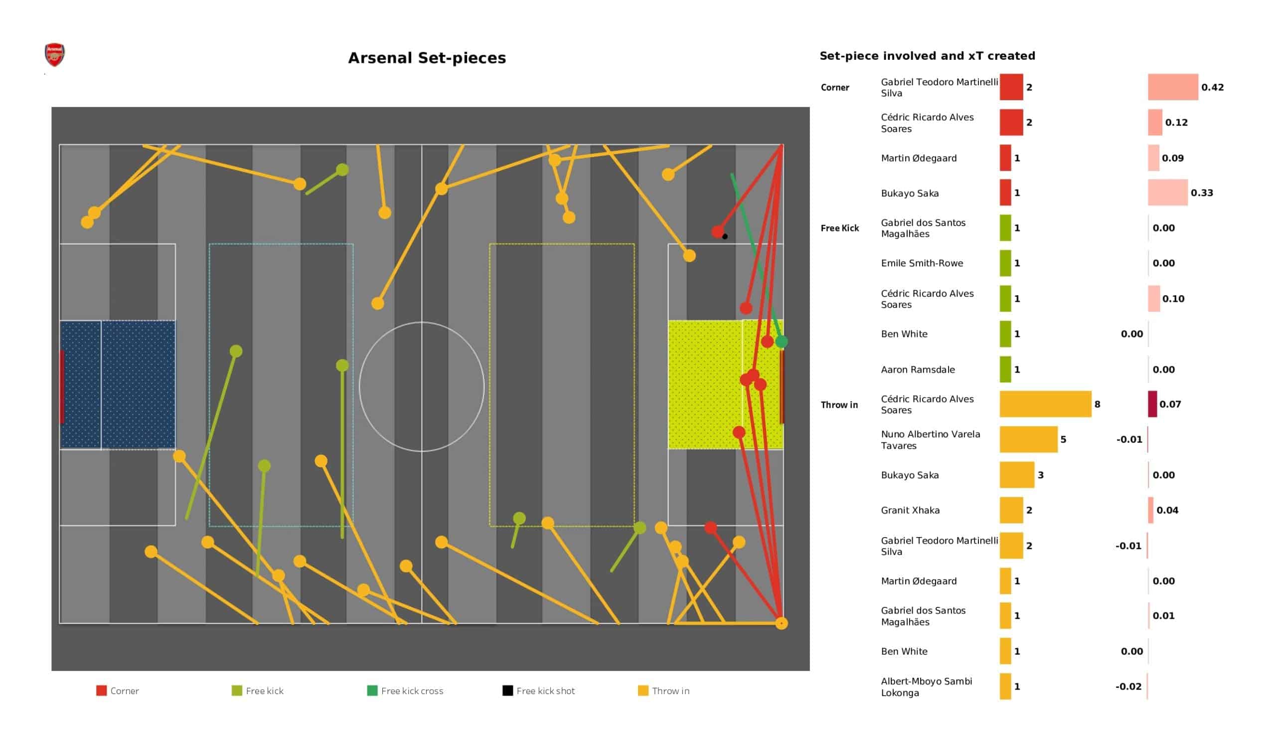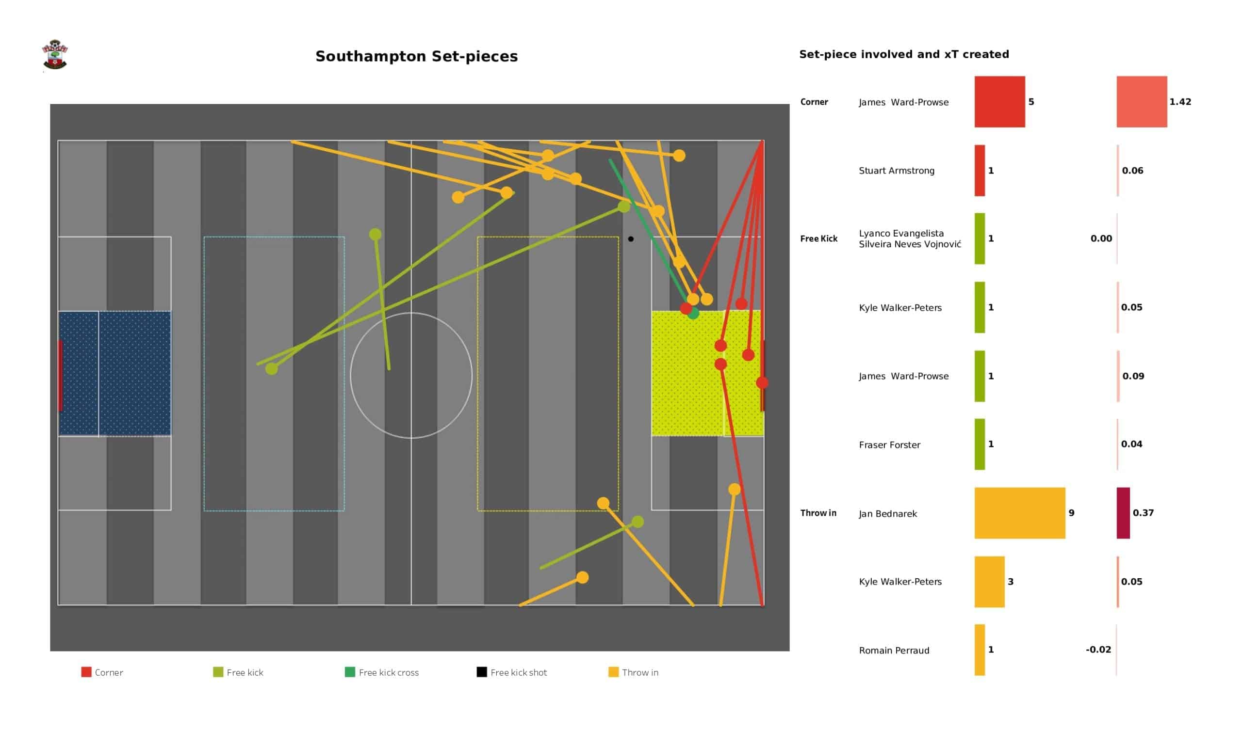 Saturday lunchtime saw <a href="https://totalfootballanalysis.com/match-analysis/premier-league-2021-22-southampton-vs-chelsea-data-viz-stats-and-insights">Southampton</a> welcome <a href="https://totalfootballanalysis.com/match-analysis/premier-league-2021-22-arsenal-vs-brighton-data-viz-stats-and-insights">Arsenal </a>in the <a href="https://totalfootballanalysis.com/match-analysis/free-download-premier-league-gw8-analytics-reports-data-viz-and-stats">Premier League</a>. We've broken down all the key <a href="https://totalfootballanalysis.com/match-analysis/free-download-premier-league-gw8-analytics-reports-data-viz-and-stats">stats</a> for you to digest in this tactical analysis and provide <a href="https://totalfootballanalysis.com/player-analysis/but-what-does-that-visual-actually-tell-us">insights</a> around; * shot maps and set-pieces * xT (expected threat) * pass networks * xG timelines * defensive duels * average positions and much more! We also try to answer some questions for you with the visuals; Who was Southampton's biggest threat? Who made the most recoveries in the opposition half? Who had the highest xG in the match? To navigate the stats gallery simply click on the numbers to move through the pages. <em><strong>Don't forget, if you take out a free <a href="https://totalfootballanalysis.com/subscribe">membership</a> to Total Football Analysis, you can receive our weekly Premier League Analytics Pack free of charge which includes all the analytics from every match, team benchmarking tables and player benchmarking tables - well over 150 pages of information after every matchweek is complete!</strong></em> <h2><em>Lineups and average positions</em></h2> <a href="https://totalfootballanalysis.com/wp-content/uploads/2022/04/Southampton-vs-Arsenal_page-0002-scaled.jpg"><img class="alignnone size-full wp-image-310106" src="https://totalfootballanalysis.com/wp-content/uploads/2022/04/Southampton-vs-Arsenal_page-0002-scaled.jpg" alt="Premier League 2021/22: Southampton vs Arsenal - data viz, stats and insights" width="2560" height="1504" /></a> <a href="https://totalfootballanalysis.com/wp-content/uploads/2022/04/Southampton-vs-Arsenal_page-0003-scaled.jpg"><img class="alignnone size-full wp-image-310107" src="https://totalfootballanalysis.com/wp-content/uploads/2022/04/Southampton-vs-Arsenal_page-0003-scaled.jpg" alt="Premier League 2021/22: Southampton vs Arsenal - data viz, stats and insights" width="2560" height="1504" /></a> <a href="https://totalfootballanalysis.com/wp-content/uploads/2022/04/Southampton-vs-Arsenal_page-0004-scaled.jpg"><img class="alignnone size-full wp-image-310108" src="https://totalfootballanalysis.com/wp-content/uploads/2022/04/Southampton-vs-Arsenal_page-0004-scaled.jpg" alt="Premier League 2021/22: Southampton vs Arsenal - data viz, stats and insights" width="2560" height="1504" /></a> <a href="https://totalfootballanalysis.com/wp-content/uploads/2022/04/Southampton-vs-Arsenal_page-0005-scaled.jpg"><img class="alignnone size-full wp-image-310109" src="https://totalfootballanalysis.com/wp-content/uploads/2022/04/Southampton-vs-Arsenal_page-0005-scaled.jpg" alt="Premier League 2021/22: Southampton vs Arsenal - data viz, stats and insights" width="2560" height="1504" /></a><!--nextpage--> <h2><em>Stats and shot maps </em></h2> <a href="https://totalfootballanalysis.com/wp-content/uploads/2022/04/Southampton-vs-Arsenal_page-0006-scaled.jpg"><img class="alignnone size-full wp-image-310110" src="https://totalfootballanalysis.com/wp-content/uploads/2022/04/Southampton-vs-Arsenal_page-0006-scaled.jpg" alt="Premier League 2021/22: Southampton vs Arsenal - data viz, stats and insights" width="2560" height="1504" /></a> <a href="https://totalfootballanalysis.com/wp-content/uploads/2022/04/Southampton-vs-Arsenal_page-0007-scaled.jpg"><img class="alignnone size-full wp-image-310111" src="https://totalfootballanalysis.com/wp-content/uploads/2022/04/Southampton-vs-Arsenal_page-0007-scaled.jpg" alt="Premier League 2021/22: Southampton vs Arsenal - data viz, stats and insights" width="2560" height="1504" /></a> <a href="https://totalfootballanalysis.com/wp-content/uploads/2022/04/Southampton-vs-Arsenal_page-0008-scaled.jpg"><img class="alignnone size-full wp-image-310112" src="https://totalfootballanalysis.com/wp-content/uploads/2022/04/Southampton-vs-Arsenal_page-0008-scaled.jpg" alt="Premier League 2021/22: Southampton vs Arsenal - data viz, stats and insights" width="2560" height="1504" /></a> <a href="https://totalfootballanalysis.com/wp-content/uploads/2022/04/Southampton-vs-Arsenal_page-0009-scaled.jpg"><img class="alignnone size-full wp-image-310113" src="https://totalfootballanalysis.com/wp-content/uploads/2022/04/Southampton-vs-Arsenal_page-0009-scaled.jpg" alt="Premier League 2021/22: Southampton vs Arsenal - data viz, stats and insights" width="2560" height="1504" /></a> <h2><em>xT and xG timelines plus pass matrixes</em></h2> <a href="https://totalfootballanalysis.com/wp-content/uploads/2022/04/Southampton-vs-Arsenal_page-0010-scaled.jpg"><img class="alignnone size-full wp-image-310114" src="https://totalfootballanalysis.com/wp-content/uploads/2022/04/Southampton-vs-Arsenal_page-0010-scaled.jpg" alt="Premier League 2021/22: Southampton vs Arsenal - data viz, stats and insights" width="2560" height="1504" /></a> <a href="https://totalfootballanalysis.com/wp-content/uploads/2022/04/Southampton-vs-Arsenal_page-0011-scaled.jpg"><img class="alignnone size-full wp-image-310115" src="https://totalfootballanalysis.com/wp-content/uploads/2022/04/Southampton-vs-Arsenal_page-0011-scaled.jpg" alt="Premier League 2021/22: Southampton vs Arsenal - data viz, stats and insights" width="2560" height="1504" /></a> <a href="https://totalfootballanalysis.com/wp-content/uploads/2022/04/Southampton-vs-Arsenal_page-0012-scaled.jpg"><img class="alignnone size-full wp-image-310116" src="https://totalfootballanalysis.com/wp-content/uploads/2022/04/Southampton-vs-Arsenal_page-0012-