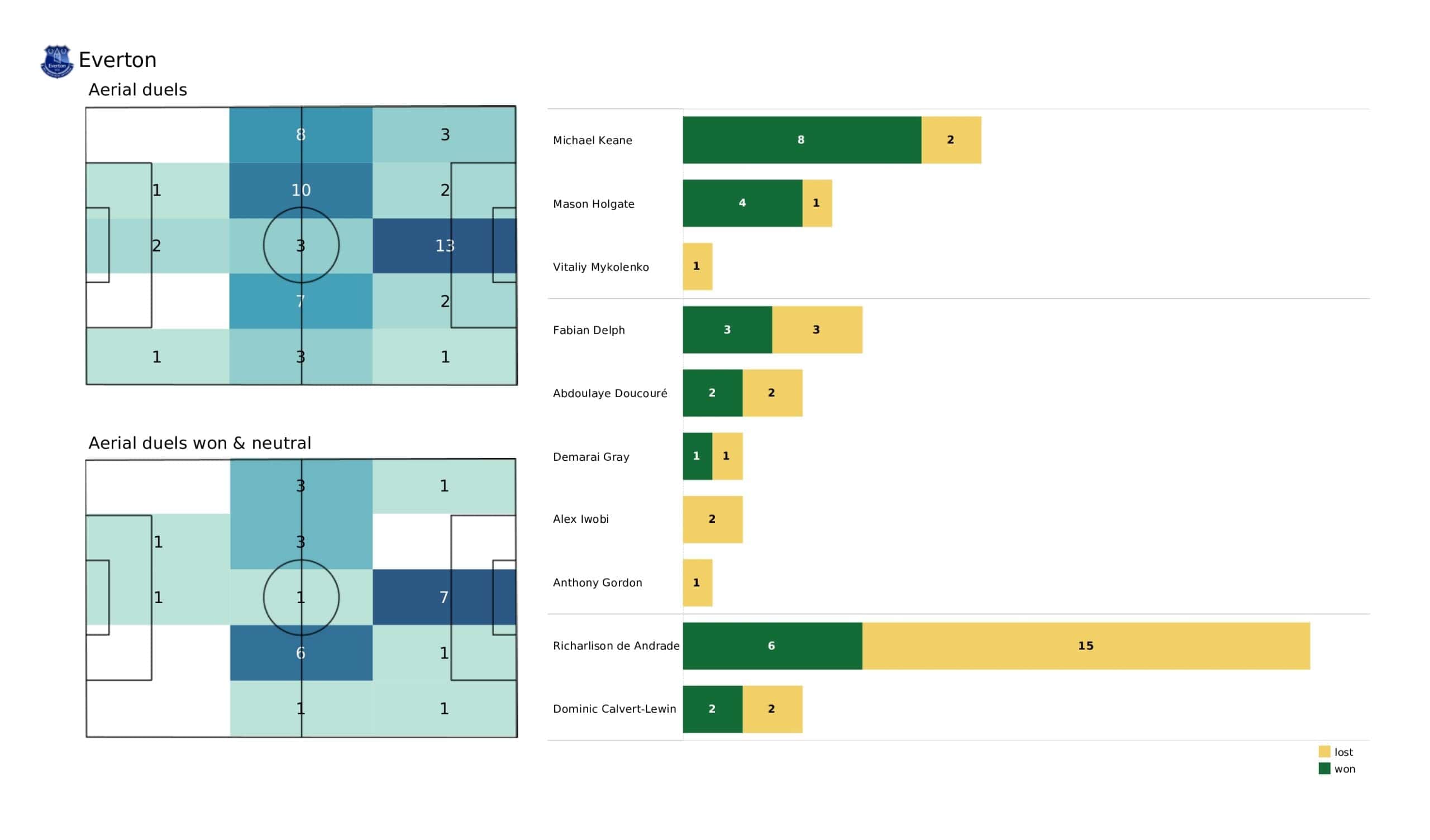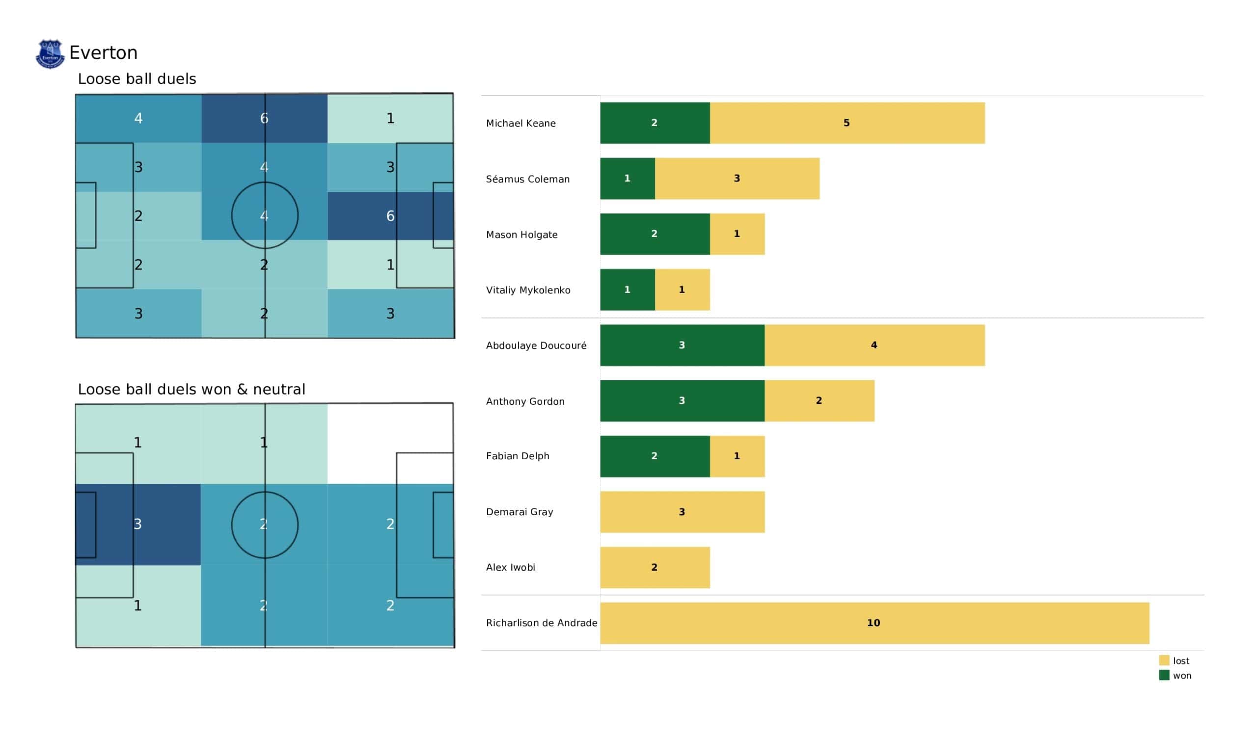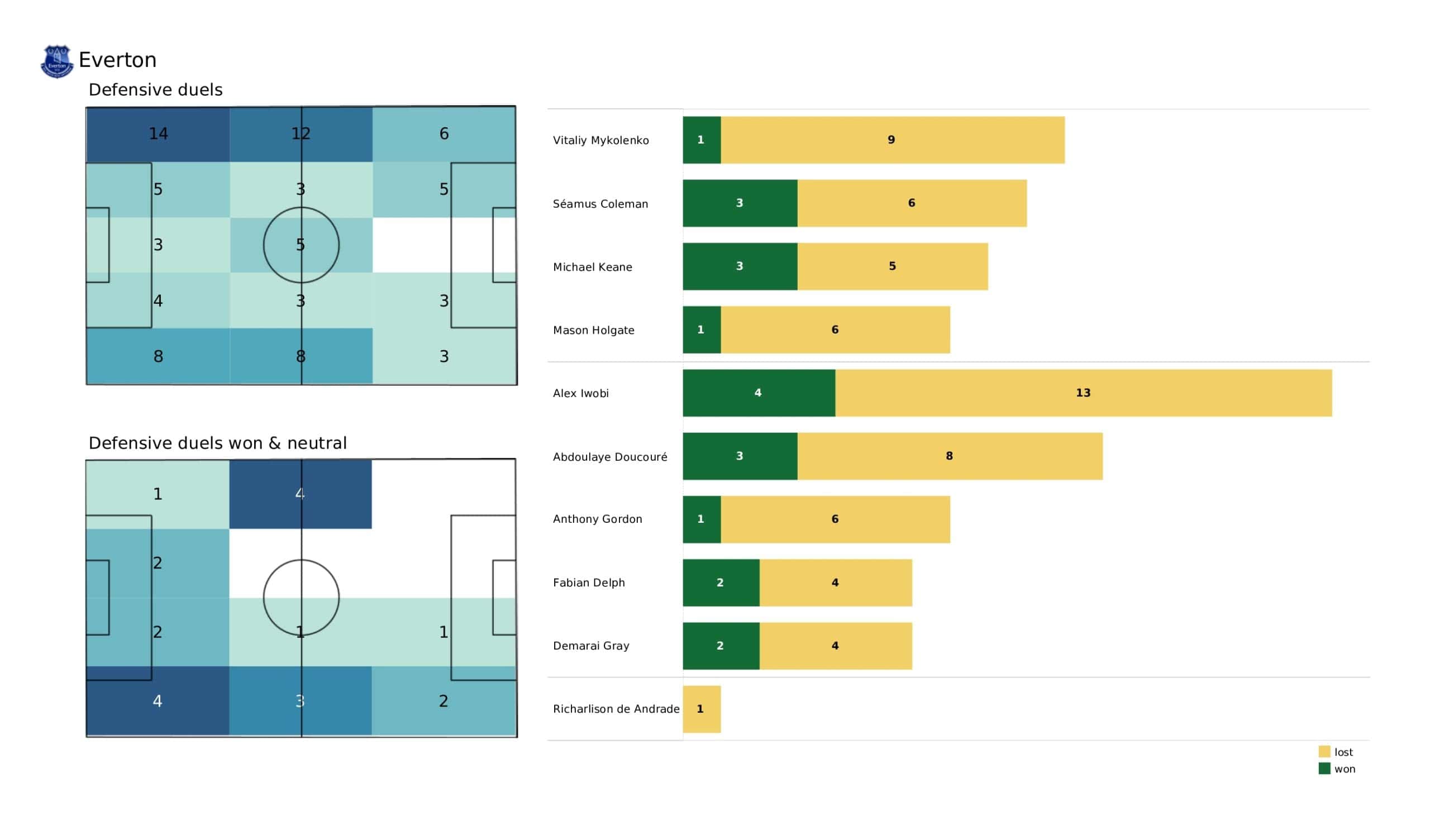 Wednesday evening saw <a href="https://totalfootballanalysis.com/match-analysis/premier-league-2021-22-leicester-city-vs-everton-data-viz-stats-and-insights">Everton</a> move two points above the relegation zone in a draw against <a href="https://totalfootballanalysis.com/match-analysis/premier-league-2021-22-crystal-palace-vs-watford-data-viz-stats-and-insights">Watford </a>in the <a href="https://totalfootballanalysis.com/match-analysis/free-download-premier-league-gw8-analytics-reports-data-viz-and-stats">Premier League</a>. We've broken down all the key <a href="https://totalfootballanalysis.com/match-analysis/free-download-premier-league-gw8-analytics-reports-data-viz-and-stats">stats</a> for you to digest in this tactical analysis and provide <a href="https://totalfootballanalysis.com/player-analysis/but-what-does-that-visual-actually-tell-us">insights</a> around; * shot maps and set-pieces * xT (expected threat) * pass networks * xG timelines * defensive duels * average positions and much more! We also try to answer some questions for you with the visuals; Who was Everton's biggest threat? Who made the most recoveries in the opposition half? Who had the highest xG in the match? To navigate the stats gallery simply click on the numbers to move through the pages. <em><strong>Don't forget, if you take out a free <a href="https://totalfootballanalysis.com/subscribe">membership</a> to Total Football Analysis, you can receive our weekly Premier League Analytics Pack free of charge which includes all the analytics from every match, team benchmarking tables and player benchmarking tables - well over 150 pages of information after every matchweek is complete!</strong></em> <h2><em>Lineups and average positions</em></h2> <a href="https://totalfootballanalysis.com/wp-content/uploads/2022/05/Watford-vs-Everton_page-0002-scaled.jpg"><img class="alignnone size-full wp-image-315842" src="https://totalfootballanalysis.com/wp-content/uploads/2022/05/Watford-vs-Everton_page-0002-scaled.jpg" alt="Premier League 2021/22: Watford vs Everton - data viz, stats and insights" width="2560" height="1504" /></a> <a href="https://totalfootballanalysis.com/wp-content/uploads/2022/05/Watford-vs-Everton_page-0003-scaled.jpg"><img class="alignnone size-full wp-image-315843" src="https://totalfootballanalysis.com/wp-content/uploads/2022/05/Watford-vs-Everton_page-0003-scaled.jpg" alt="Premier League 2021/22: Watford vs Everton - data viz, stats and insights" width="2560" height="1504" /></a> <a href="https://totalfootballanalysis.com/wp-content/uploads/2022/05/Watford-vs-Everton_page-0001-scaled.jpg"><img class="alignnone size-full wp-image-315887" src="https://totalfootballanalysis.com/wp-content/uploads/2022/05/Watford-vs-Everton_page-0001-scaled.jpg" alt="" width="2560" height="1504" /></a> <a href="https://totalfootballanalysis.com/wp-content/uploads/2022/05/Watford-vs-Everton_page-0005-scaled.jpg"><img class="alignnone size-full wp-image-315844" src="https://totalfootballanalysis.com/wp-content/uploads/2022/05/Watford-vs-Everton_page-0005-scaled.jpg" alt="Premier League 2021/22: Watford vs Everton - data viz, stats and insights" width="2560" height="1504" /></a><!--nextpage--> <h2><em>Stats and shot maps </em></h2> <a href="https://totalfootballanalysis.com/wp-content/uploads/2022/05/Watford-vs-Everton_page-0006-scaled.jpg"><img class="alignnone size-full wp-image-315845" src="https://totalfootballanalysis.com/wp-content/uploads/2022/05/Watford-vs-Everton_page-0006-scaled.jpg" alt="Premier League 2021/22: Watford vs Everton - data viz, stats and insights" width="2560" height="1504" /></a> <a href="https://totalfootballanalysis.com/wp-content/uploads/2022/05/Watford-vs-Everton_page-0007-scaled.jpg"><img class="alignnone size-full wp-image-315846" src="https://totalfootballanalysis.com/wp-content/uploads/2022/05/Watford-vs-Everton_page-0007-scaled.jpg" alt="Premier League 2021/22: Watford vs Everton - data viz, stats and insights" width="2560" height="1504" /></a> <a href="https://totalfootballanalysis.com/wp-content/uploads/2022/05/Watford-vs-Everton_page-0008-scaled.jpg"><img class="alignnone size-full wp-image-315847" src="https://totalfootballanalysis.com/wp-content/uploads/2022/05/Watford-vs-Everton_page-0008-scaled.jpg" alt="Premier League 2021/22: Watford vs Everton - data viz, stats and insights" width="2560" height="1504" /></a> <a href="https://totalfootballanalysis.com/wp-content/uploads/2022/05/Watford-vs-Everton_page-0009-scaled.jpg"><img class="alignnone size-full wp-image-315848" src="https://totalfootballanalysis.com/wp-content/uploads/2022/05/Watford-vs-Everton_page-0009-scaled.jpg" alt="Premier League 2021/22: Watford vs Everton - data viz, stats and insights" width="2560" height="1504" /></a><!--nextpage--> <h2><em>xT and xG timelines plus pass matrixes</em></h2> <a href="https://totalfootballanalysis.com/wp-content/uploads/2022/05/Watford-vs-Everton_page-0010-scaled.jpg"><img class="alignnone size-full wp-image-315849" src="https://totalfootballanalysis.com/wp-content/uploads/2022/05/Watford-vs-Everton_page-0010-scaled.jpg" alt="Premier League 2021/22: Watford vs Everton - data viz, stats and insights" width="2560" height="1504" /></a> <a href="https://totalfootballanalysis.com/wp-content/uploads/2022/05/Watford-vs-Everton_page-0011-scaled.jpg"><img class="alignnone size-full wp-image-315850" src="https://totalfootballanalysis.com/wp-content/uploads/2022/05/Watford-vs-Everton_page-0011-scaled.jpg" alt="Premier League 2021/22: Watford vs Everton - data viz, stats and insights" width="2560" height="1504" /></a> <a href="https://totalfootballanalysis.com/wp-content/uploads/2022/05/Watford-vs-Everton_page-0012-scaled.jpg"><img class="alignnone size-full wp-image-315851" src="https://totalfootballanalysis.com/wp-content/uploads/2022/05/Watford-vs-Everton_page-0012-scaled.jpg" alt="Premier League 2021/22: Watford vs Everton - data viz, stats and insights" width="2560" height="1504" /></a><!--nextp
