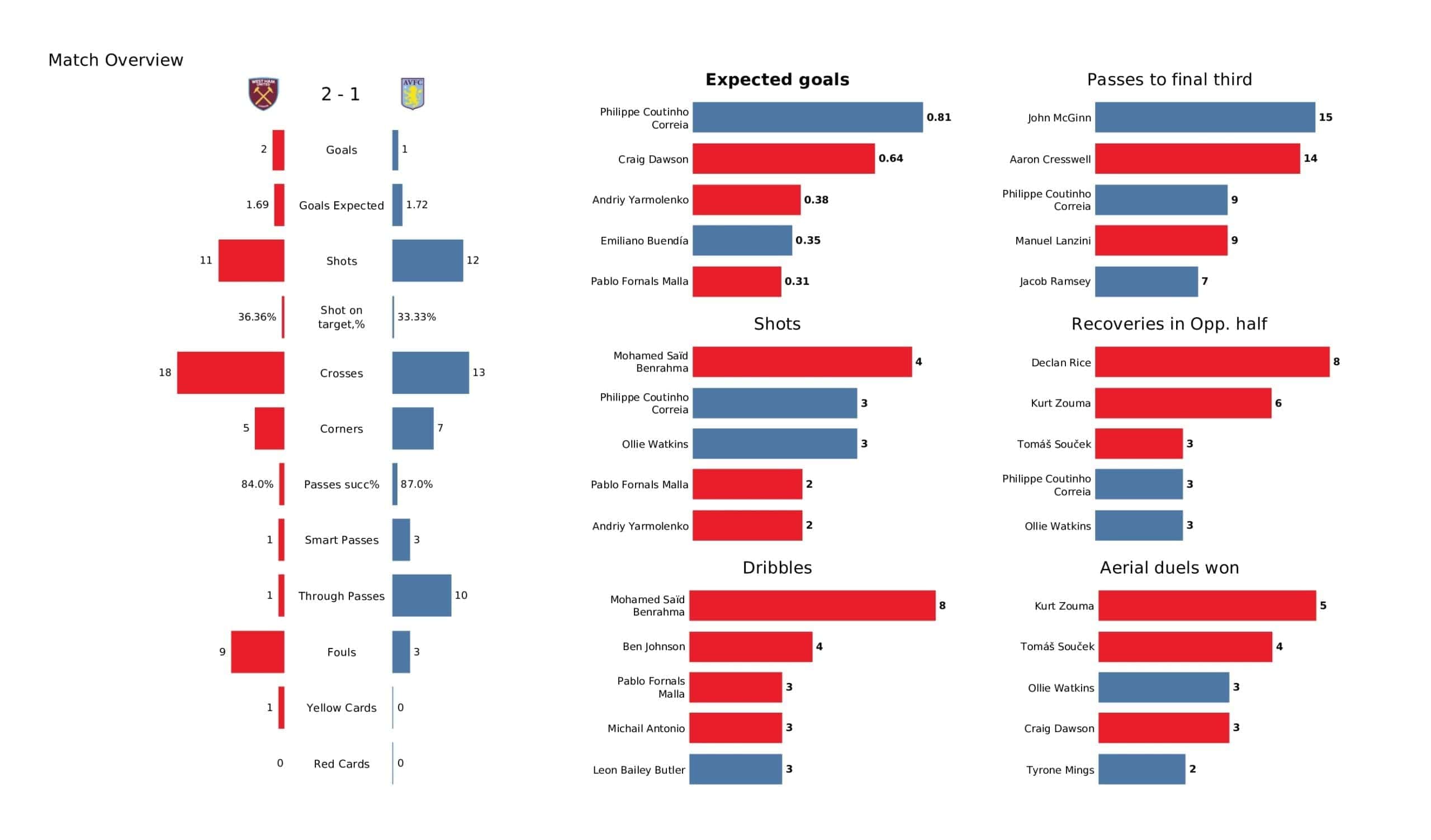 Premier League 2021/22: West Ham United Vs Aston Villa - data viz, stats and insights