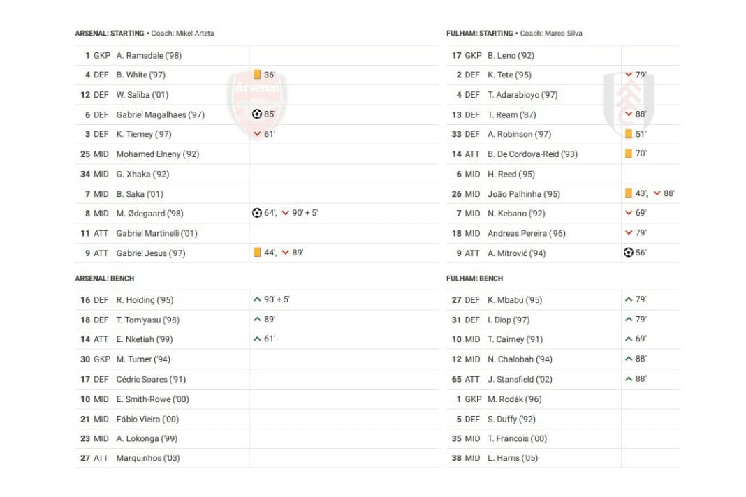 Saturday saw Arsenal vs Fulham in the Premier League.