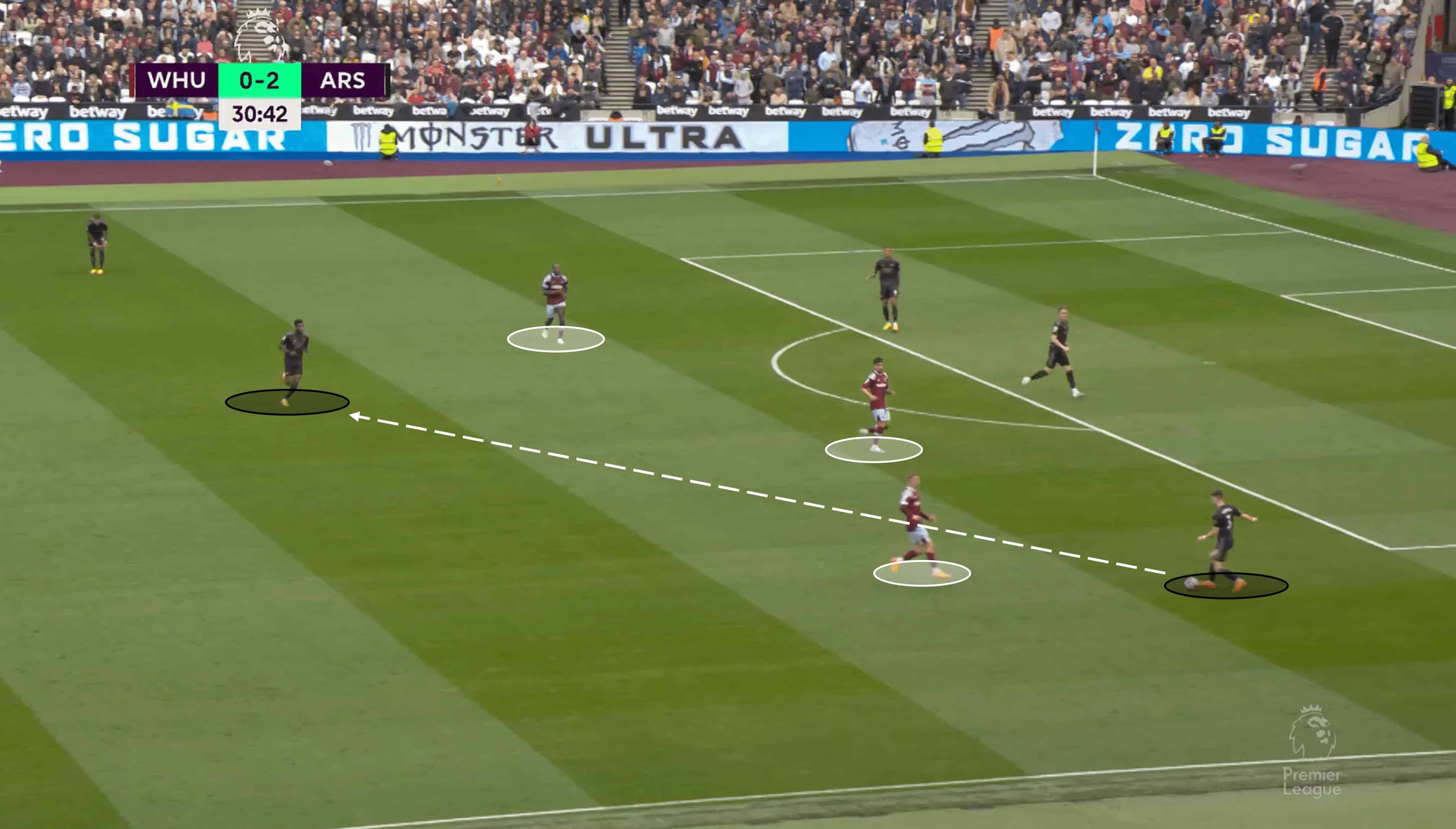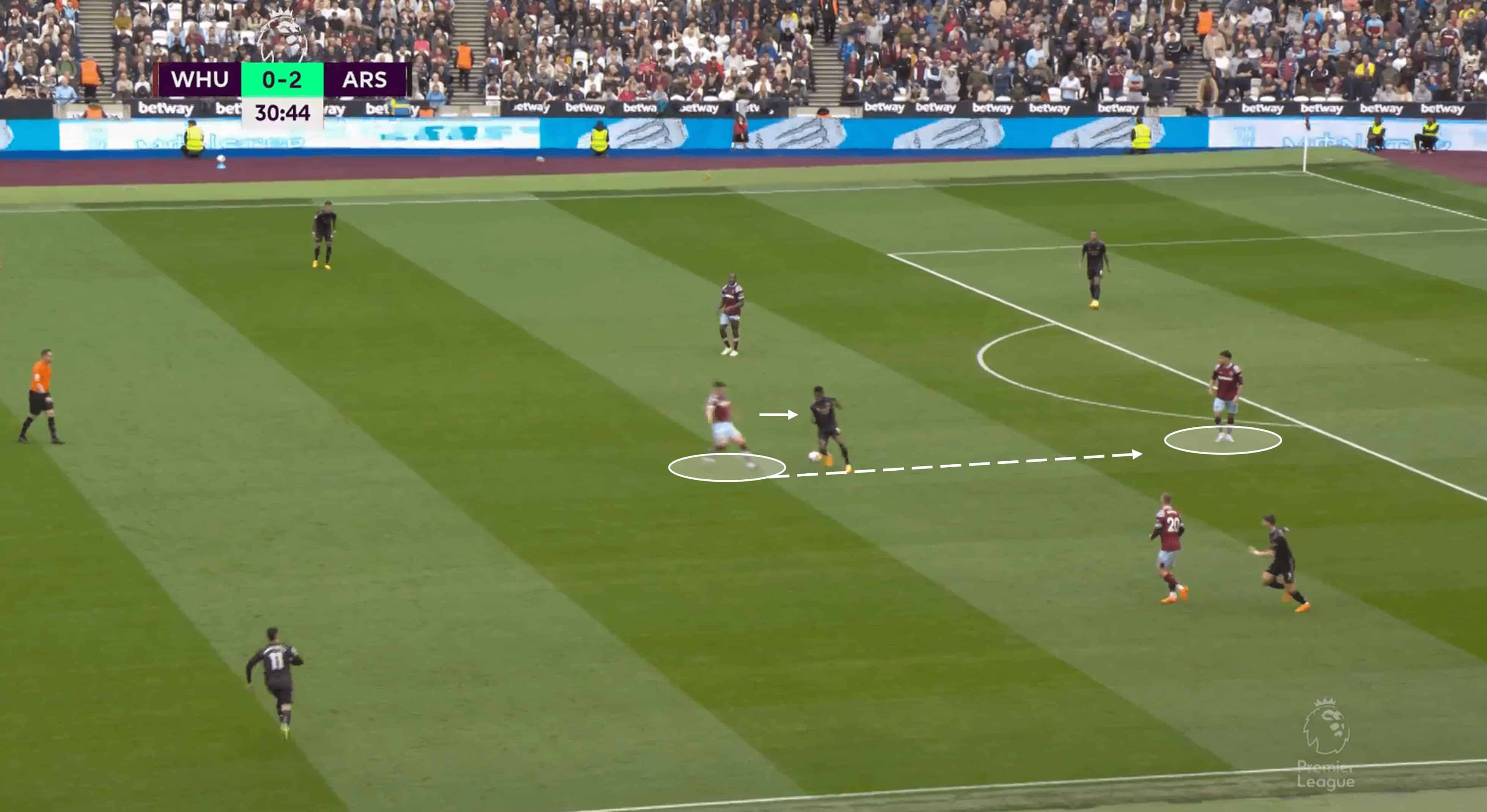 Good recognition of which spaces to play into from Arsenal, despite the Hammers pressing.