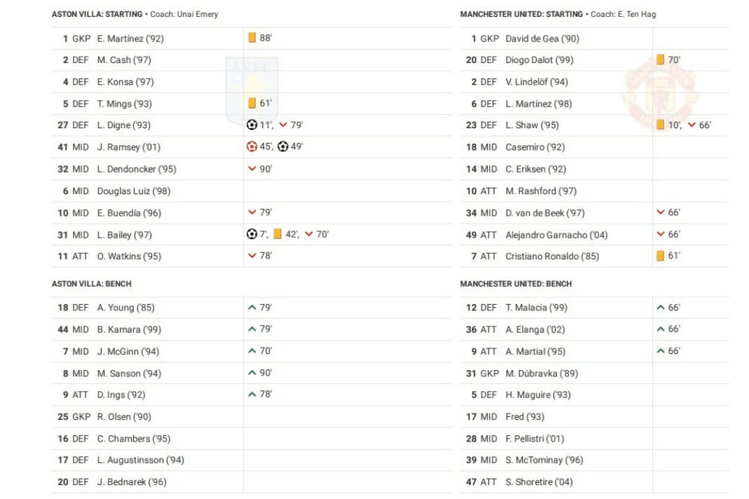 Sunday saw Aston Villa vs Manchester United in the Premier League.