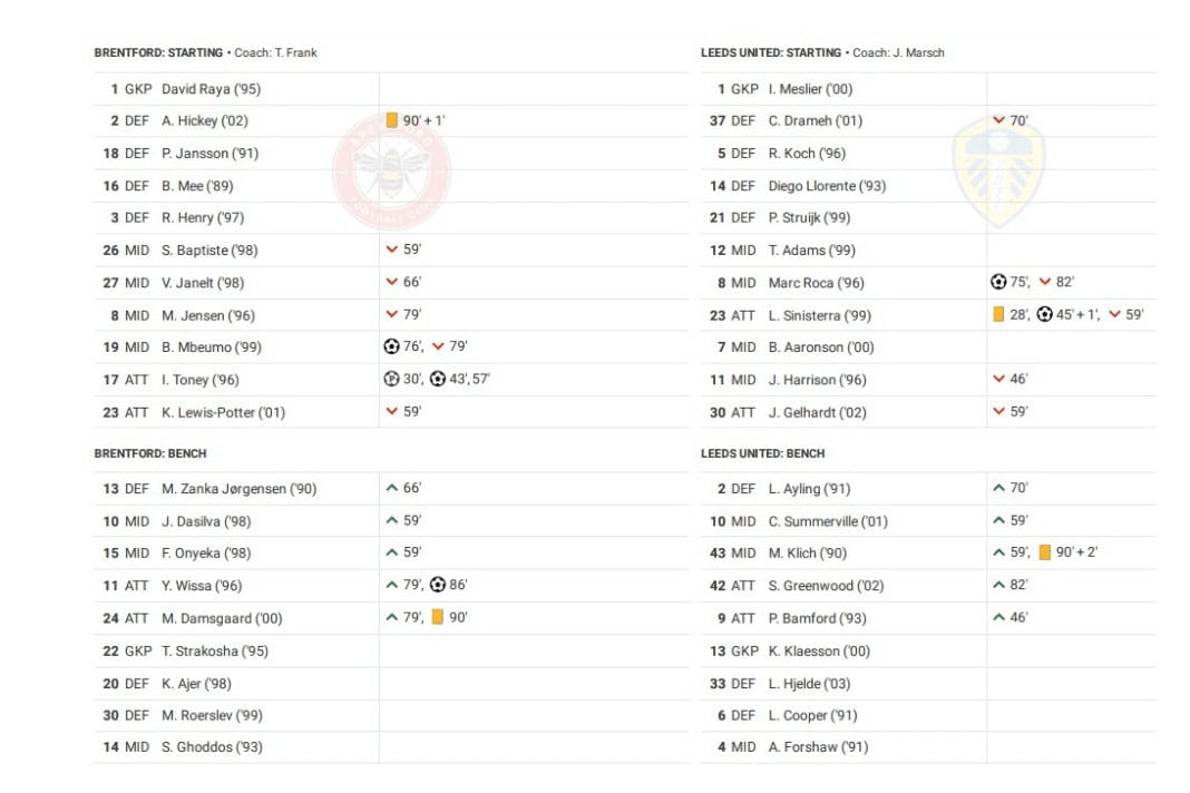 Saturday saw Brentford vs Leeds in the Premier League.