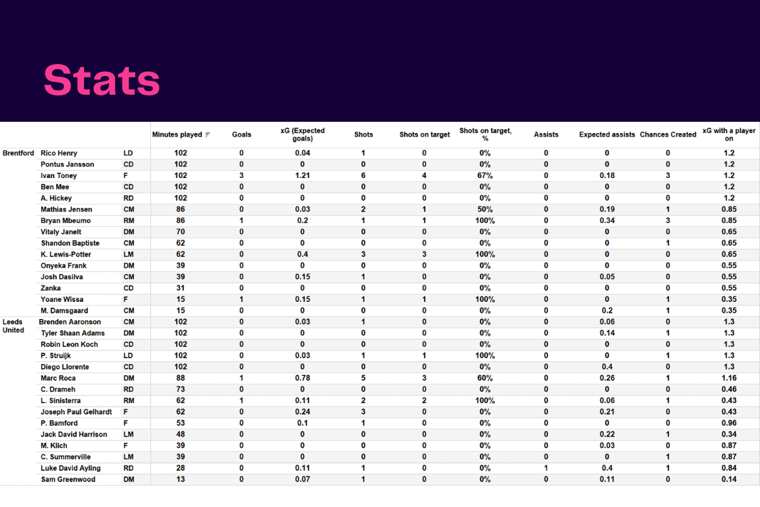 in Brentford FC, Data Analysis, Jesse Marsch, Leeds United F.C., Match Analysis, Premier League, Thomas Frank