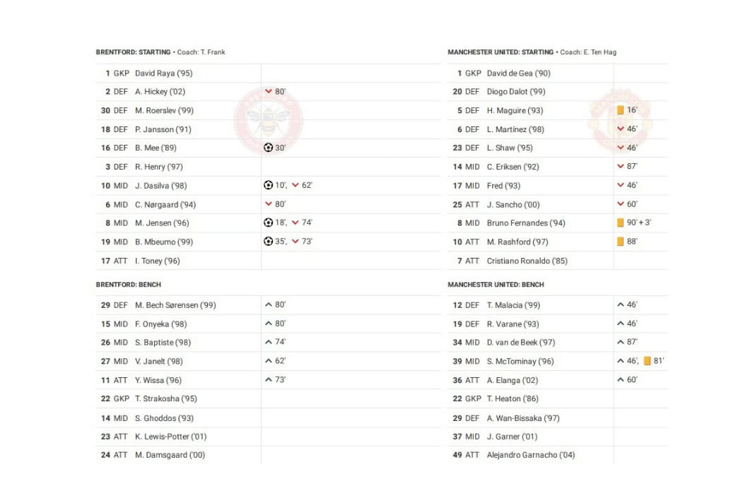 Saturday saw Brentford vs Man United in the Premier League.