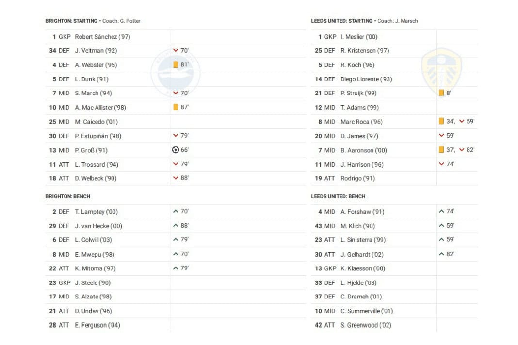 Saturday saw Brighton vs Leeds in the Premier League.
