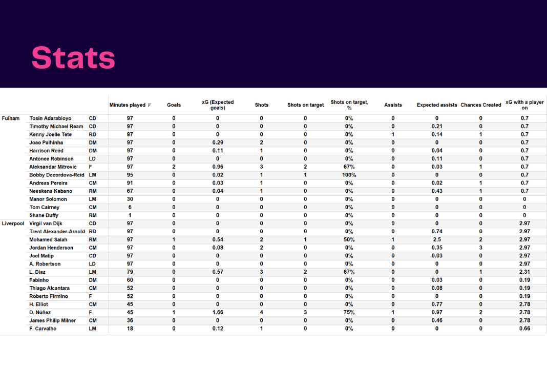 Premier League 2022/23: Fulham vs Liverpool – data viz, stats and insights