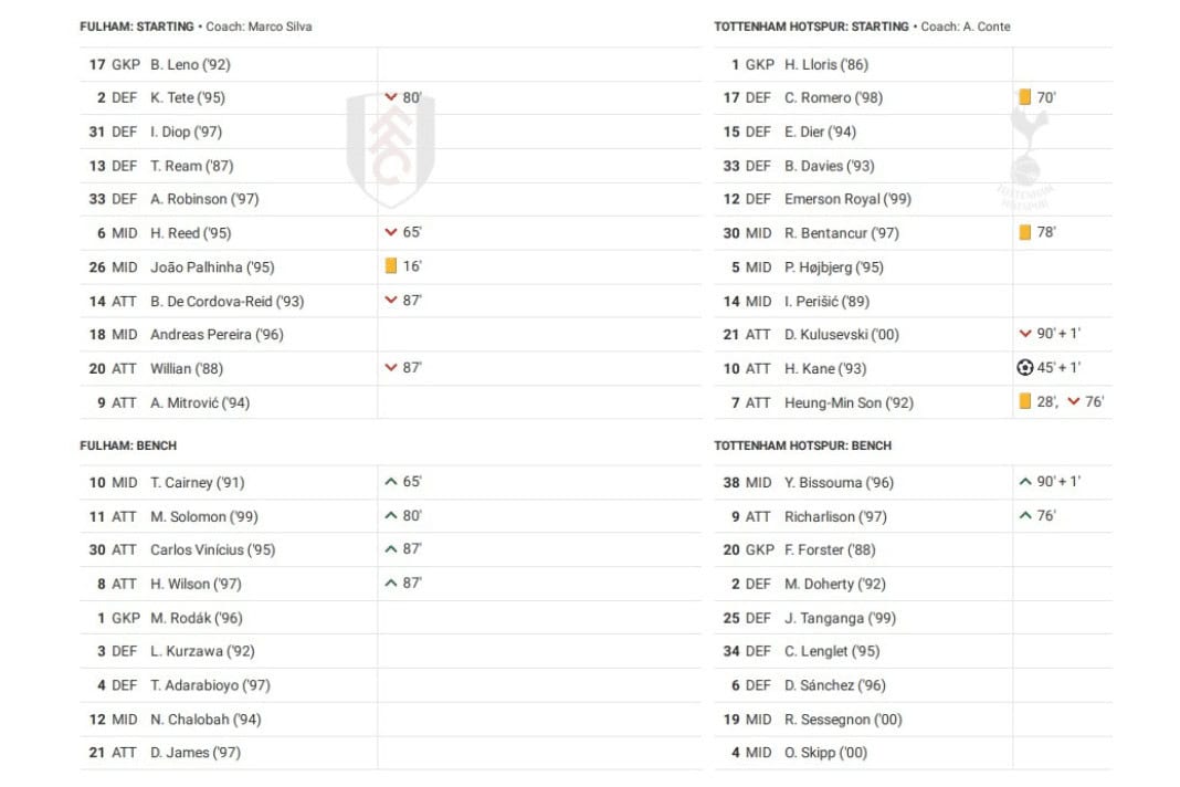 Monday night saw Fulham vs Tottenham in the Premier League.