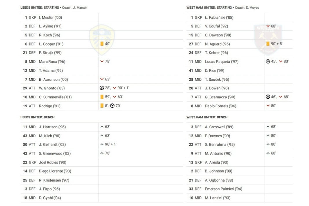 Wednesday night saw Leeds vs West Ham in the Premier League.