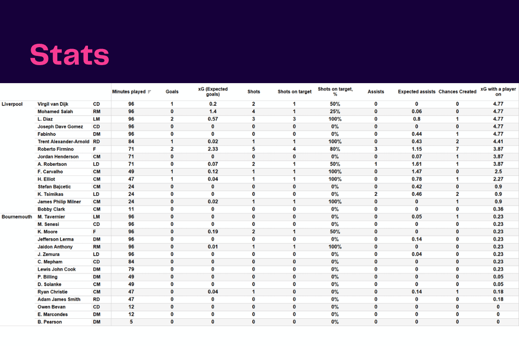 Premier League 2022/23: Liverpool vs Bournemouth – data viz, stats and insights